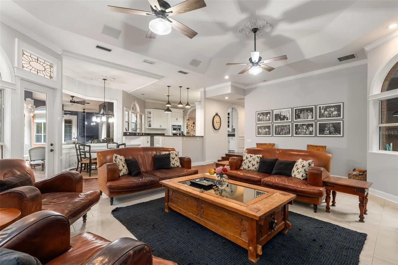 To the left you’ll find a gourmet kitchen with sub zero and kitchenaid appliances, surrounded by living and dining spaces- perfect for entertaining and every day living.