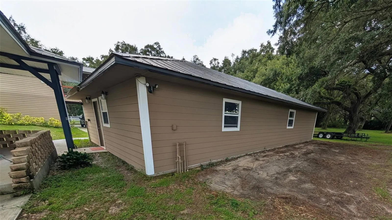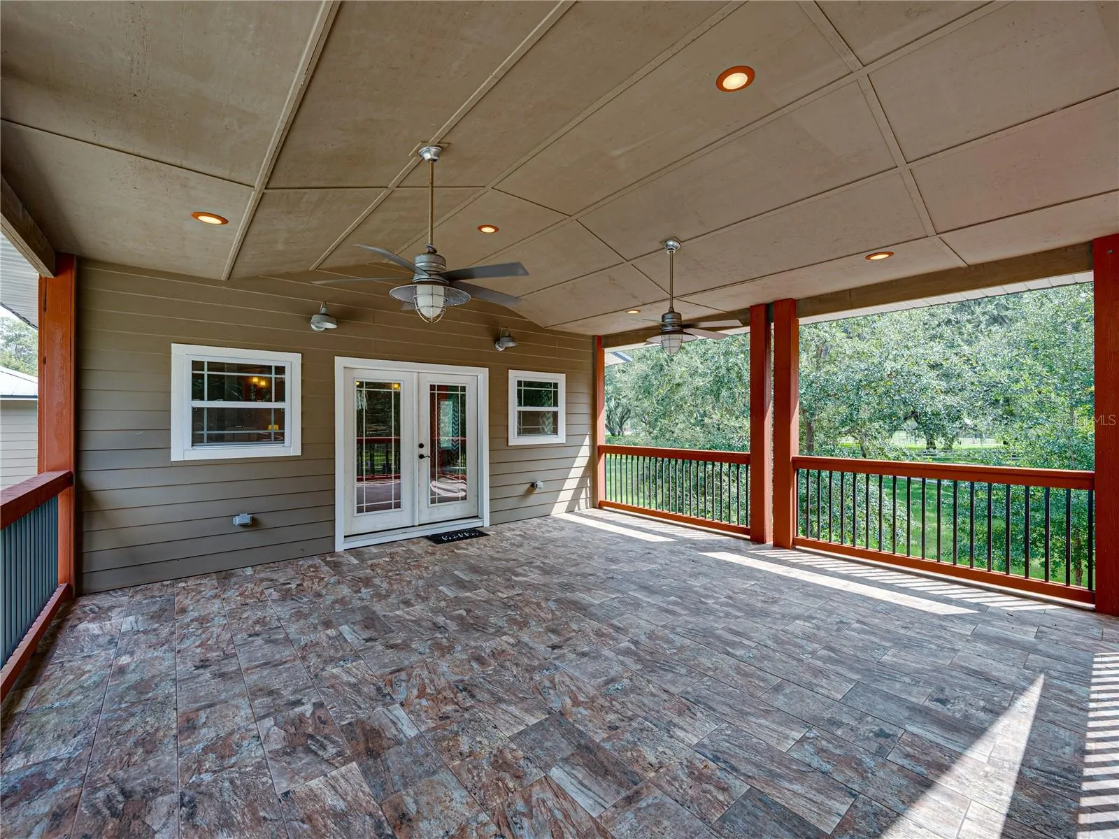This 4-bedroom, 3-bathroom home is on a spacious 2.9-acre lot offering ample room for both comfort and outdoor activities. There is a separate .92 acre parcel that adjoins the property and the seller is listing separately. The home was built with Coastal hurricane standards which can be verified via an inspection. All exterior walls are 2×6 with R19 insulation. This includes a 3/4 wrap-around porch, providing a welcoming and relaxing space to enjoy the outdoors. As you enter the front door you will walk into a spacious open area that leads to a family room, dining room and kitchen combination and is perfect for entertainment. A large pantry for storage is a plus. Available seating at the kitchen counter for eating or just catching up. The kitchen has a new refrigerator and dishwasher. There is a first-floor dry bar/game room to enjoy time with friends and family. Interested in a movie instead, you will find a media room with leather seating, big screen TV and surround sound. There are three updated bathrooms, two upstairs, the master has a jet tub, and a separate shower, the other upstairs bathroom and the downstairs bathroom has shower only. With the bedroom and bathroom downstairs, this would be perfect if you are interested in a multigenerational space or just a private bedroom. There is a first-floor laundry room with a closet that holds a clothing chute from upstairs for convenience. In addition to the 2 bedrooms and master bedroom upstairs you will find a bonus room perfect as a guest room or just added entertainment area. Through the French doors off this bonus area is a large deck for outdoor entertainment and beautiful views of the property. The deck is reinforced and has a subpanel if something else would want to be added. The large master bedroom has two walk-through his and her closets that lead from the bedroom to the updated bathroom which has a jetted tub, two vanities and a walk in shower. The other two bedrooms each have a feature wall. The second bathroom has also been updated. In addition, there is a closet that houses the clothing chute which goes down to the first-floor laundry room for convenience. There is an additional bonus room, craft room/library and large office with plenty of work areas. All rooms of home are hard wired with Ethernet cable. There is closed circuit wiring throughout the home. This home has ample storage space (even under the stairs) inside and outside the home. The metal roof of the original house was painted in 2/2023. Three air conditioners are in the home. One was purchased in 2017 and the other two were purchased in 2020. The water heater was replaced 7/2023. Septic System was checked in 2020 and well components were replaced in 2025. The generous acreage provides opportunities for gardening, recreation and relaxation. You will have plenty of parking with a detached 3½ car garage and covered carport. This property is located close to I-4 and centrally located between Orlando and Tampa. This is a must-see home. NO HOA! Schedule a showing today!!!!