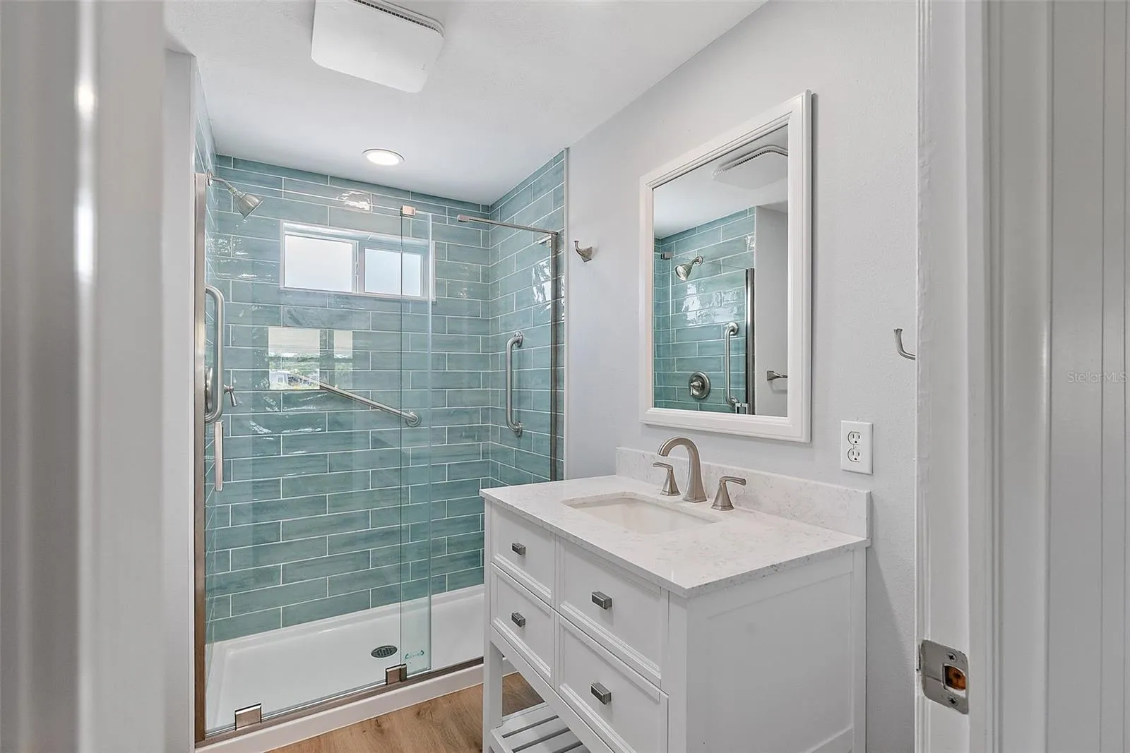 The open-concept floor plan showcases newly installed luxury vinyl plank flooring, and the gorgeously updated bathrooms feature stylish glass tile accents and a spa-inspired walk-in shower. The spacious master suite offers a generous space and a peaceful escape.