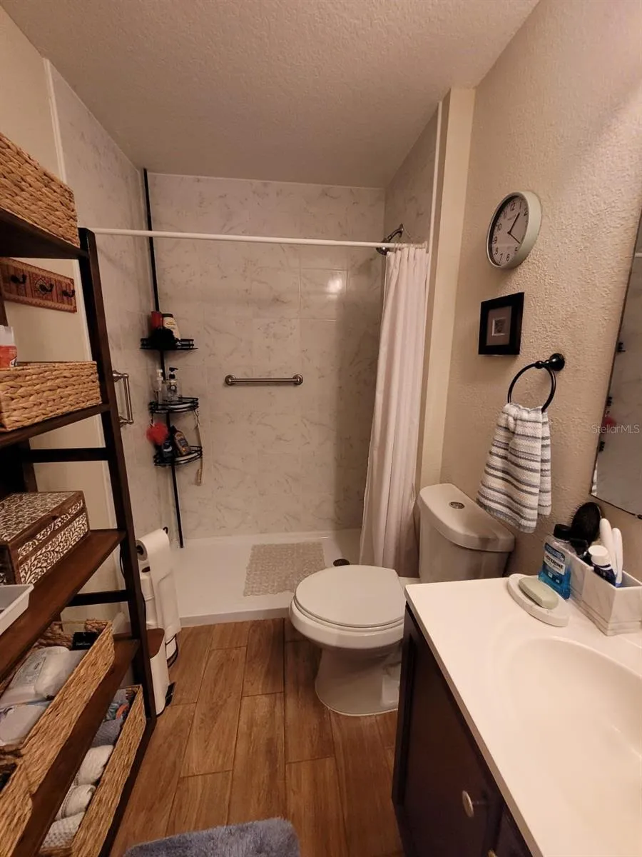 The home features a large master suite with two walk-in closets and a private suite bathroom with shower, tub, and enclosed toilet. The desirable split floor plan places the master suite on one side and guest rooms on the other. An additional office area provides a great space for remote work or study.