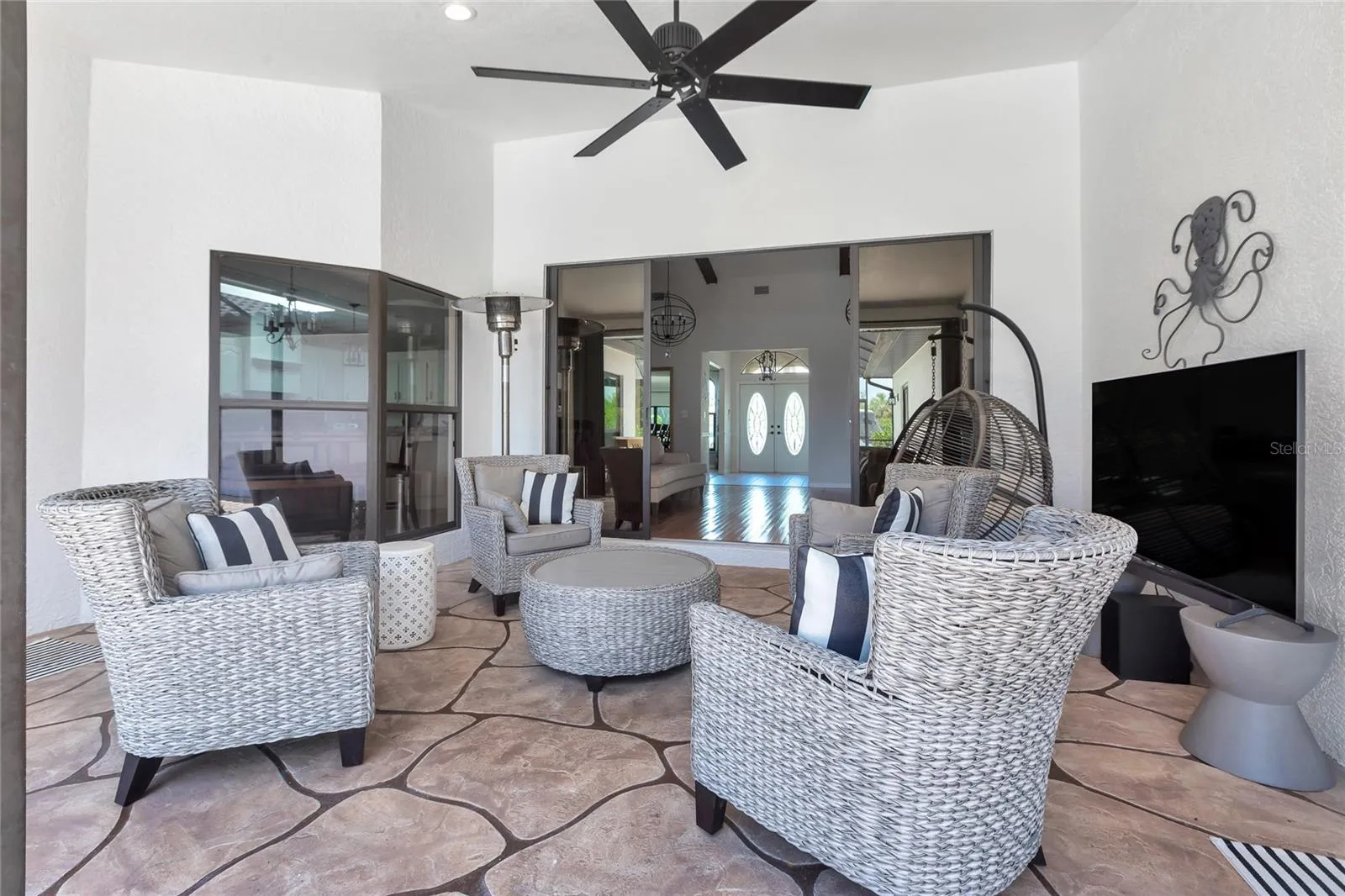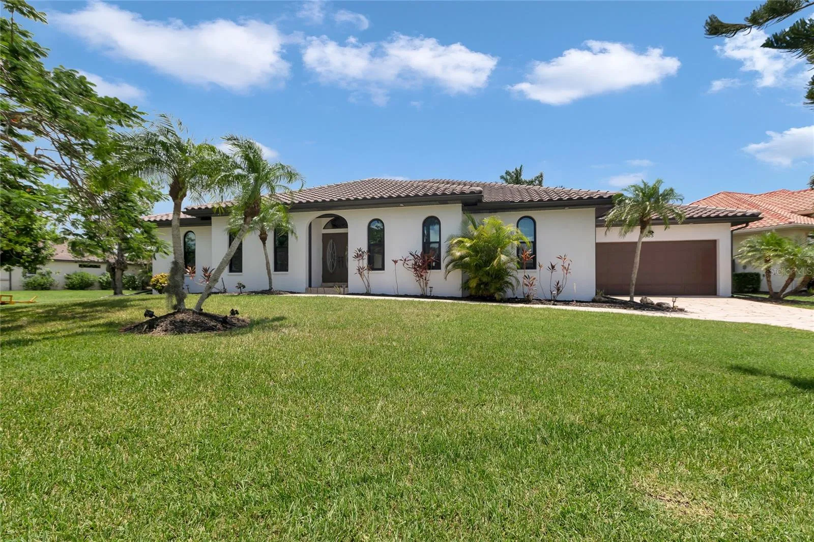 Step outside and indulge in your private backyard oasis, where a sparkling heated pool & spa await, with updated Pentair wireless controls, heaters, & lighting for effortless enjoyment. Boating enthusiasts will delight in the Golden 10,000 lb. boat lift (2022) & new concrete dock, providing instant access to sailboat water with no bridges between you & the pristine waters of Charlotte Harbor & the Gulf of Mexico. A comprehensive Xfinity Alarm System & three Ring doorbell locations provide additional peace of mind & added security.