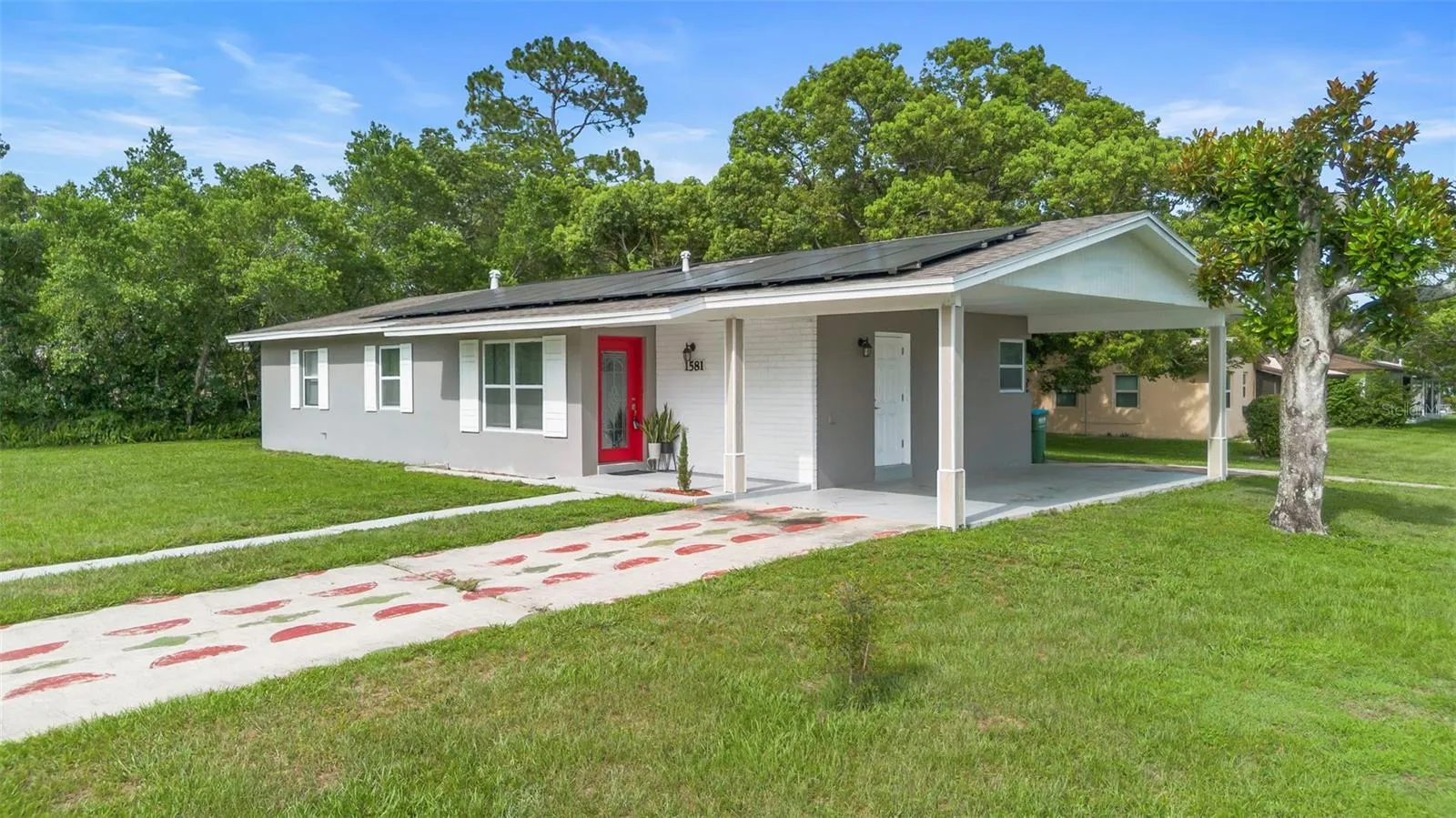 Welcome to your Dream Home* Fabulously Remodeled, NEW Roof (2023), NEW AC (2023), NEW WINDOWS, and Ceramic Tile throughout the House! This Home is Ready for you! Perfect starter Home, where you just can bring your stuff and move in! Enjoy your afternoons on the Screened in Porch, with a cup of coffee and relax overlooking nature. Solar Panels in place are a HUGE Plus, it will truly save a ton in electric cost. Panels are owned and will be transferred to new owner. Current monthly payment is only $160 a month, and it should be less for the new owner, since the seller has paid off almost half the balance on them already. Ideally Located on a Corner Lot with a U-driveway for easy access in and out! Just 10 minutes from I-4 connecting you to Orlando Amenities and the East Coast Beaches in less than 30-45 minutes. Solar panels owned, payment is only $160 a monthVisit today, you will be delighted!
