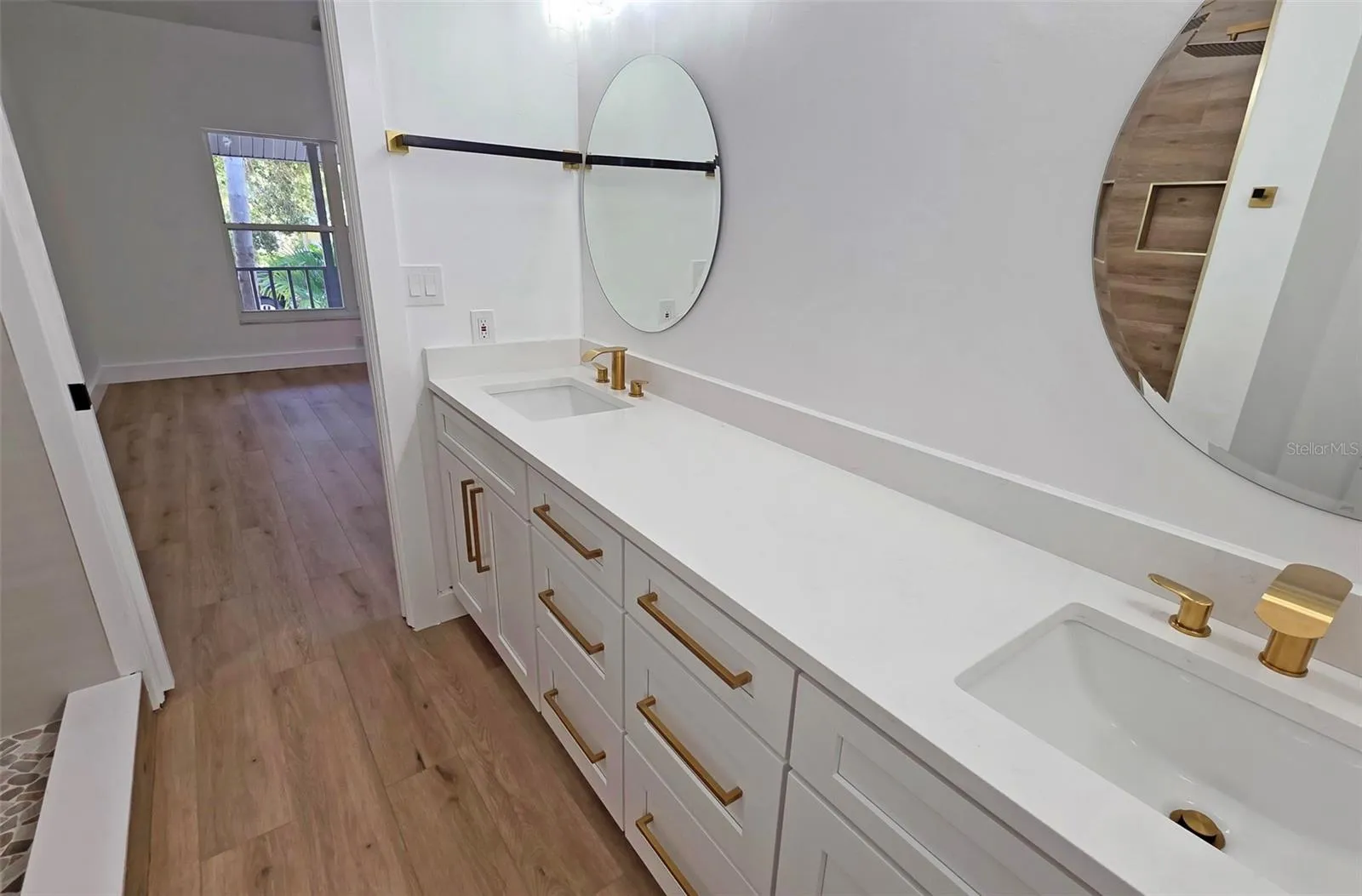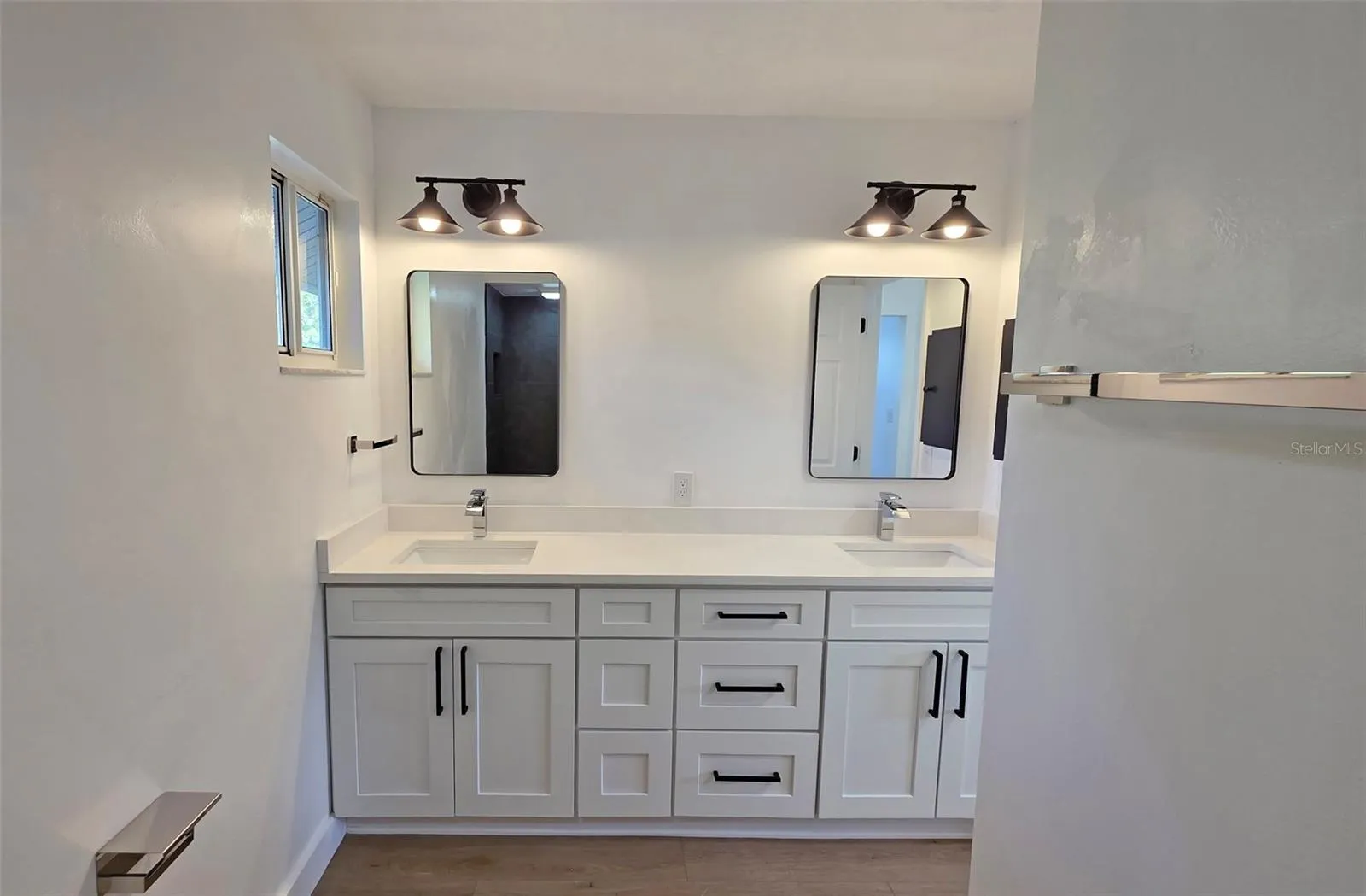 The master ensuite is located on the primary level but tucked away from the main entertaining space for added privacy. The suite features high ceilings, a large walk-in closet with built ins, master bath with a spacious and open modern walk-in shower, and double vanity. The additional bedrooms are all located upstairs with a full bathroom with tub/shower combo and a double vanity. All of the bedrooms have new ceiling fans with light.