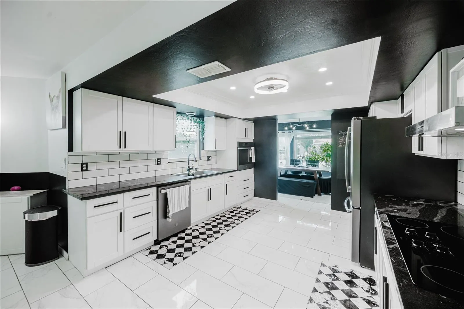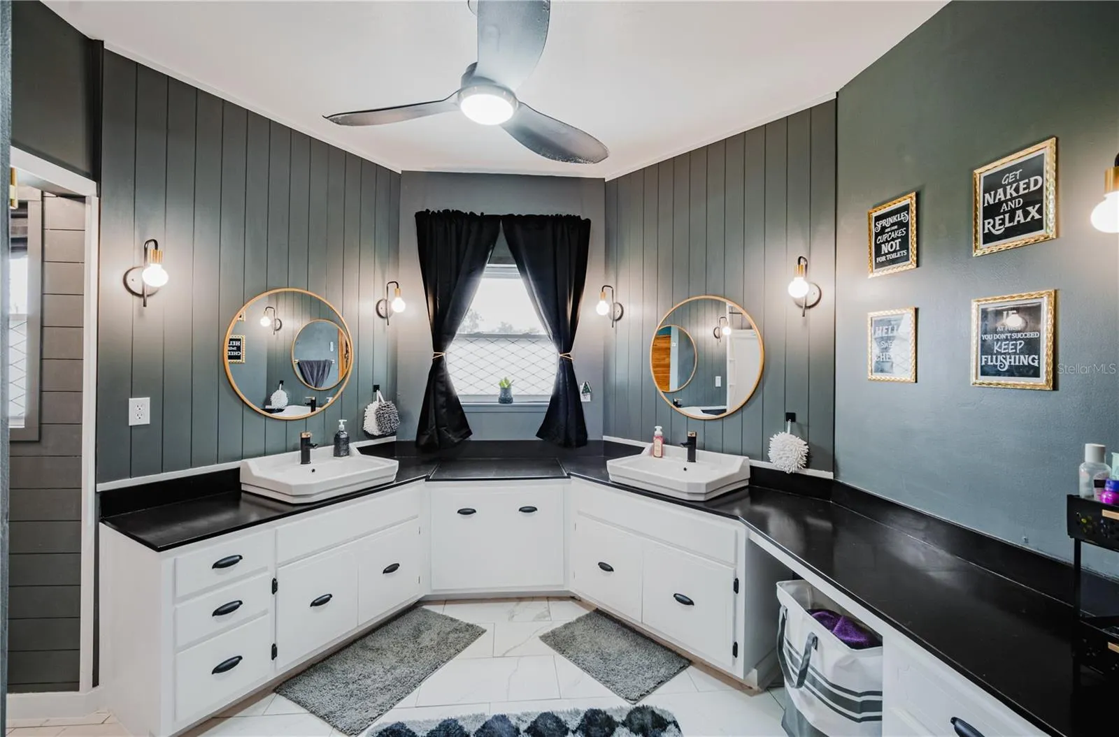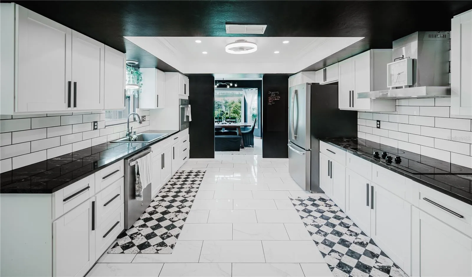 One-of-a-Kind Victorian Home in Desirable Country Club Estates! No Flood Insurance Required! This beautifully unique 3-bedroom + den, 2-bathroom home offers an impressive 2,721 sq ft of thoughtfully designed living space. The screened-in entryway offers a welcoming first impression while providing added privacy, security, and the perfect spot to enjoy Florida’s breezes—free of pests. From the moment you enter, you’ll be captivated by the grand two-story foyer and elegant staircase—setting the tone for the character and charm found throughout the home. Elegant marble tile flooring extends through the main living areas, while the bedrooms feature durable and stylish luxury vinyl plank flooring. Upstairs, the spacious primary suite includes a cozy sitting area with a wood-burning fireplace, creating a warm and inviting retreat. The updated primary bathroom offers ample space for both comfort and functionality. Two additional downstairs bedrooms provide generous storage, with the second bedroom featuring direct access to the second full bath—ideal for use as a second primary suite. The second bathroom has been beautifully updated, featuring elegant mosaic tile and a classic freestanding slipper tub—adding charm and character to the space. A dedicated theater room at the rear of the home comes equipped with surround sound speakers, perfect for movie nights or entertaining. The additional den/study is currently used as a guest bedroom and can easily be converted into a fourth bedroom with the addition of a closet. The kitchen showcases white shaker cabinets, granite countertops, a large granite sink, stainless steel appliances and flows seamlessly into the living area, where a rare wood-burning fireplace adds an extra touch of coziness—an uncommon gem in Florida homes. The home features recently updated mirrors, lighting fixtures and ceiling fans, each thoughtfully selected to complement the style and function of every room. Soaring ceilings enhance the sense of space and openness, while multiple skylights fill the interior with an abundance of natural light, creating a bright and inviting atmosphere throughout. Step out to the screened lanai, which also features closable windows, allowing it to double as a Florida room for year-round enjoyment. A storage shed provides extra space, while the fully fenced yard and circular driveway enhance privacy and curb appeal. Oversized one car garage measures 16 feet wide and 20 feet deep. This home is equipped with three separate A/C units (2020), offering energy-efficient climate control by cooling only the areas in use. The roof was replaced in 2018, Impact Windows in 2021, and the water heater in 2024. Located on CITY WATER, the property features mature banana, sugar apple, and passion fruit trees, offering a lush, tropical setting and the opportunity to enjoy fresh fruit right from your own backyard. Home warranty in place and will be transferred to the new owner, along with all furnishings being negotiable.