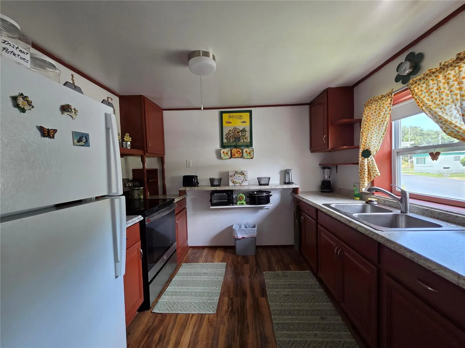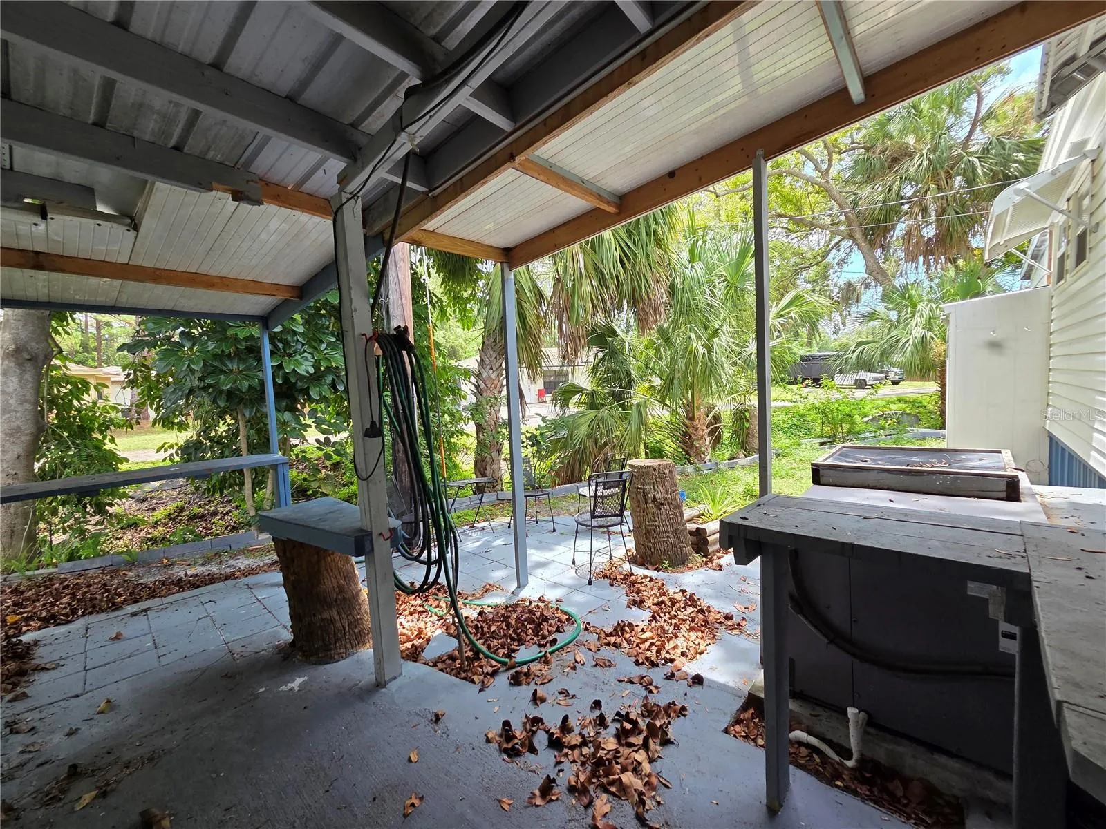 This 2 bed 2 bath home is located in Melody Gardens a resident owned community. The home has 2 carports, roof over, vinyl siding, 2 storage sheds, screen room, covered backyard patio and a central HVAC system (with heat pump). The refrigerator, washer & dryer are 5 years old. The microwave, couches and tv is 4 years old. The roof was installed in 2024. The home comes fully furnished. The living room is open with a dining area. There is a galley kitchen located at the front of the home. The spare bedroom is located off of the living room. The main bathroom is located in the hallway leading to the master bedroom. The master bedroom has a half bath. Community Amenities include: Swimming Pool, Shuffleboard Court, Activities & a Clubhouse. The HOA fee is $180 a month.