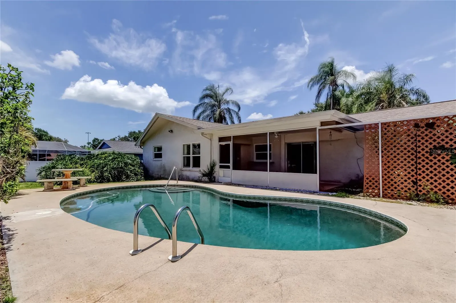 New Price!! Highly desirable pool home on a quiet cul de sac in the heart of Countryside, Clearwater, Florida. This is the perfect home to ‘live like you are on vacation’, raise a family, or for an active and comfortable retirement. Countryside Timber Ridge is a warm and welcoming neighborhood with close proximity to Chi Chi Rodriguez golf course, Clearwater Country Club, Countryside Recreation Center, and downtown Dunedin restaurants. Honeymoon Island, Clearwater Beach, and St Pete beach are just some of the nearby beach options. Close proximity to Tampa International and St. Pete/Clearwater Airports. Great local schools. Added value includes that this home is not in a Flood Zone and sits at one of the highest elevations in Pinellas County. Roof is only 2 years old. This home features three generously sized bedrooms, each positioned for privacy and comfort. The Primary Suite Bedroom provides an ensuite bath and a spacious walk-in closet. Sliding doors lead directly to a screened ‘lanai’ patio – ideal for morning coffee and late-night pool access. The Second Bedroom is airy and bright, with a large closet and easy access to the second full bath. The Third Bedroom is large and versatile – it can also serve as a home office, a nursery, or creative studio. The large window provides a pool view, inspiring both productivity and restful sleep. This homes’ true split-floor plan is designed for entertaining, featuring a formal living and dining room on the same side as the Primary Suite Bedroom and a Family/Dining room combo on the other side (still separate from the second and third bedrooms). Both areas also have access to the screened lanai patio and pool area via separate sliding doors (in addition to the one in the Primary Suite Bedroom). The interior laundry room has a utility sink and plenty of room for a a large washer and dryer. The pool in this home is well maintained, open and airy with seating and Bar-B-Que areas. Well-maintained, mature landscaping and a recently installed fence creates a nice atmosphere. Spacious garage for vehicles, hobbies or workshop.