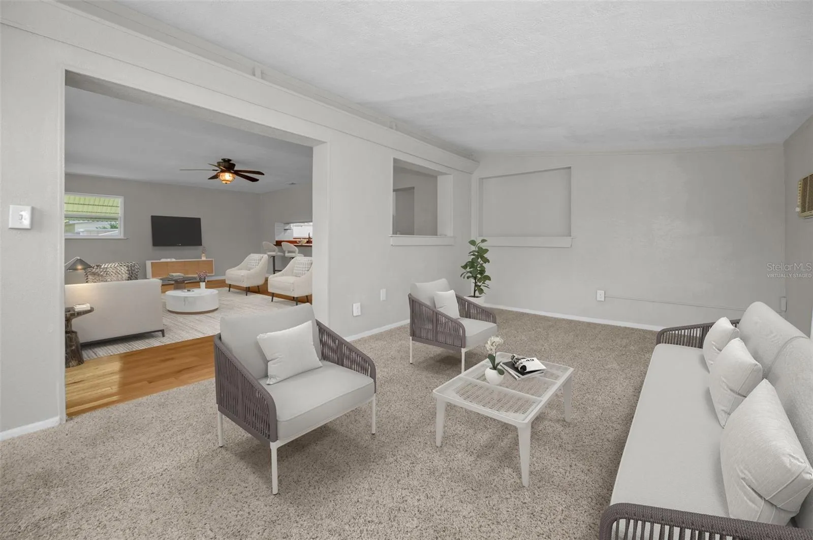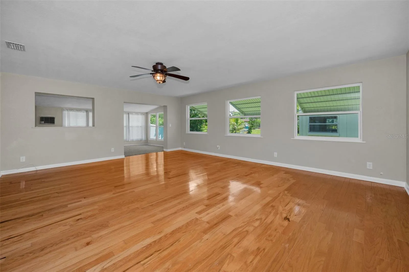 The SPLIT BEDROOM FLOORPLAN offers privacy and space, with a relaxing PRIMARY SUITE that includes a remodeled bath, two ceiling fans with remotes, and a HUGE WALK-IN CLOSET THAT FEELS LIKE ITS OWN ROOM.. One oversized guest bedroom provides the flexibility to be used as a media room or home office. Large and Spacious CARPORT gives protection to your vehicles from Florida’s Sun.