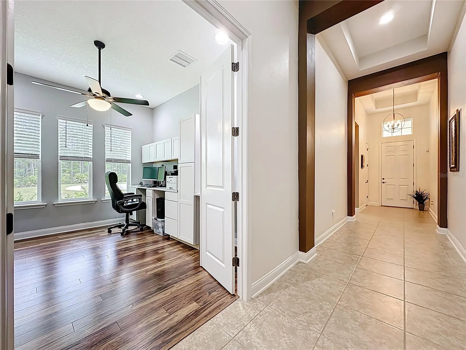 Discover resort-style living in this upgraded ICI-built Sienna model on a quiet cul-de-sac surrounded by preserve. This 3BR + office, 2.5BA, 3-car garage home offers 2,069 sq ft of open living space with custom upgrades throughout. The gourmet kitchen features granite countertops, stainless appliances, a walk-in pantry, and a large island. Relax in the spacious living room with shiplap accent wall and fireplace, or unwind in the primary suite with walk-in closet and spa-like bath. Enjoy Florida living year-round in the expansive 38’ x 21’ screened lanai with full outdoor kitchen, covered dining, and hot tub zone—all overlooking the peaceful preserve. Located near Pine Island Academy, Crosswater Park, and Nocatee amenities including water parks, fitness trails, kayak launches, and more.
