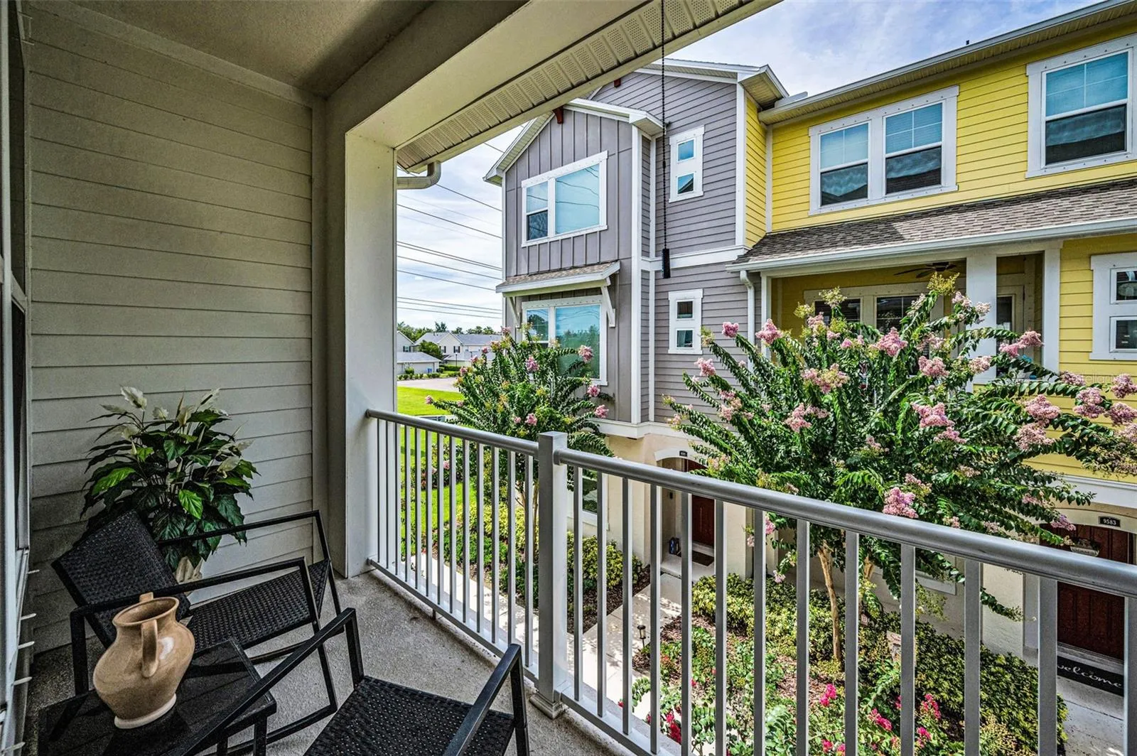 WESTCHASE GEM – Conveniently located in the Heart of Westchase, just a short walk to Westchase Town Center which offers dining, fitness, beauty and entertainment. This gorgeous low maintenance 3 story townhome offers all the benefits of new construction, such as 10 foot ceilings, energy efficiency, recessed lighting, beautiful cabinetry and granite in the kitchen and all bathrooms that give a cohesive modern farmhouse look to the home. Durable luxury vinyl plank flooring flows throughout the entire home and stairways, except for tile in the 3 full bathrooms and newer carpet in the two upstairs bedrooms. Custom plantation shutters provide privacy and sunlight on every window and door to the balcony. The first floor features a flex room that could be used for guests or multigenerational living, as there is a full bathroom on the first floor. Up the stairs, you find wide, spacious open concept living room, dining room and sunny, wall-to-wall kitchen with 42” cabinets and crown molding, a full set of stainless steel appliances and a massive island providing additional storage and plenty of space for bar stools. There is a convenient half bath on that level and serene balcony for enjoying the outdoors. Third level features the impressive primary suite with tray ceiling and large primary bathroom with a walk-in shower, spacious walk-in closet, dual sinks with plenty of counter and cabinet space, along with a private water closet. Also on the third floor is the second bedroom with en-suite bathroom and walk-in closet. The guest bath offers a tub and shower combination with gleaming subway tile and coordinating granite counters and cabinets. The laundry closet is conveniently located on the 3rd floor. Rear entry access to the attached 2 car garage provides comfort and safety from our Florida rains. Additional guest parking lot is located very near the home and the Town Center is just a walk across another parking lot. A rare opportunity for Urban living in the Suburbs!
