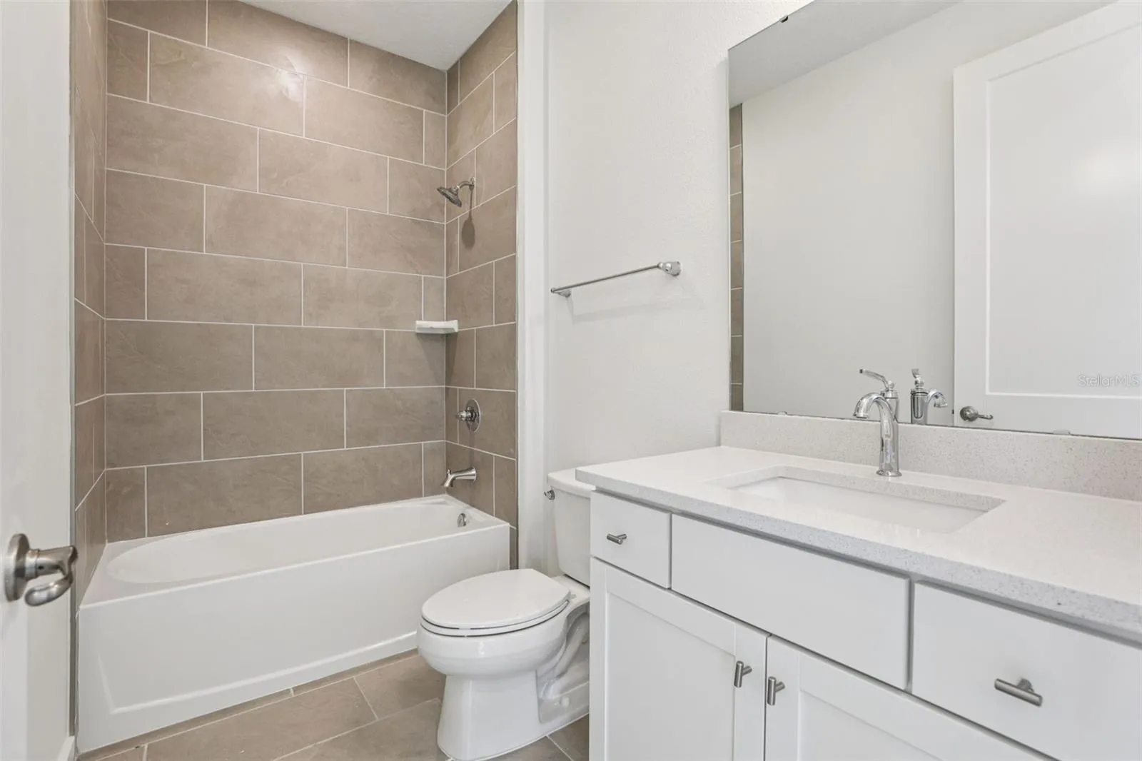 MOVE-IN READY! This brand new construction, two-story home (The Clementine) is stunning with a contemporary exterior elevation. The home features 4 bedrooms and 3 full bathrooms all at 1,929 sq ft. of living space. As you enter this home through the 8′ glass entry door you are welcome with an open spacious foyer with access to a downstairs guest bedroom with full bath. As you continue on you will find ceramic tile flooring that leads you to the open-concept living room, dining room, and kitchen that boasts a large eat-in island all surrounded by granite countertops and cabinets with walk-in pantry. Moving to the second level, you have quick access to the generously sized primary suite that accesses your private bathroom with glass enclosed free standing shower, separate water closet with linen space, dual vanities and the roomy, well-lit walk-in closet. Adjacent to the primary suite is your walk-in laundry room with nearby secondary bedrooms and guest bath. Don’t miss the opportunity schedule your private showing of this home today!