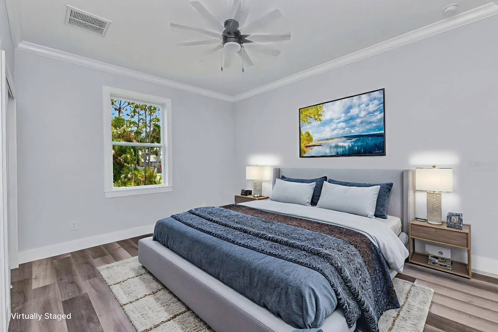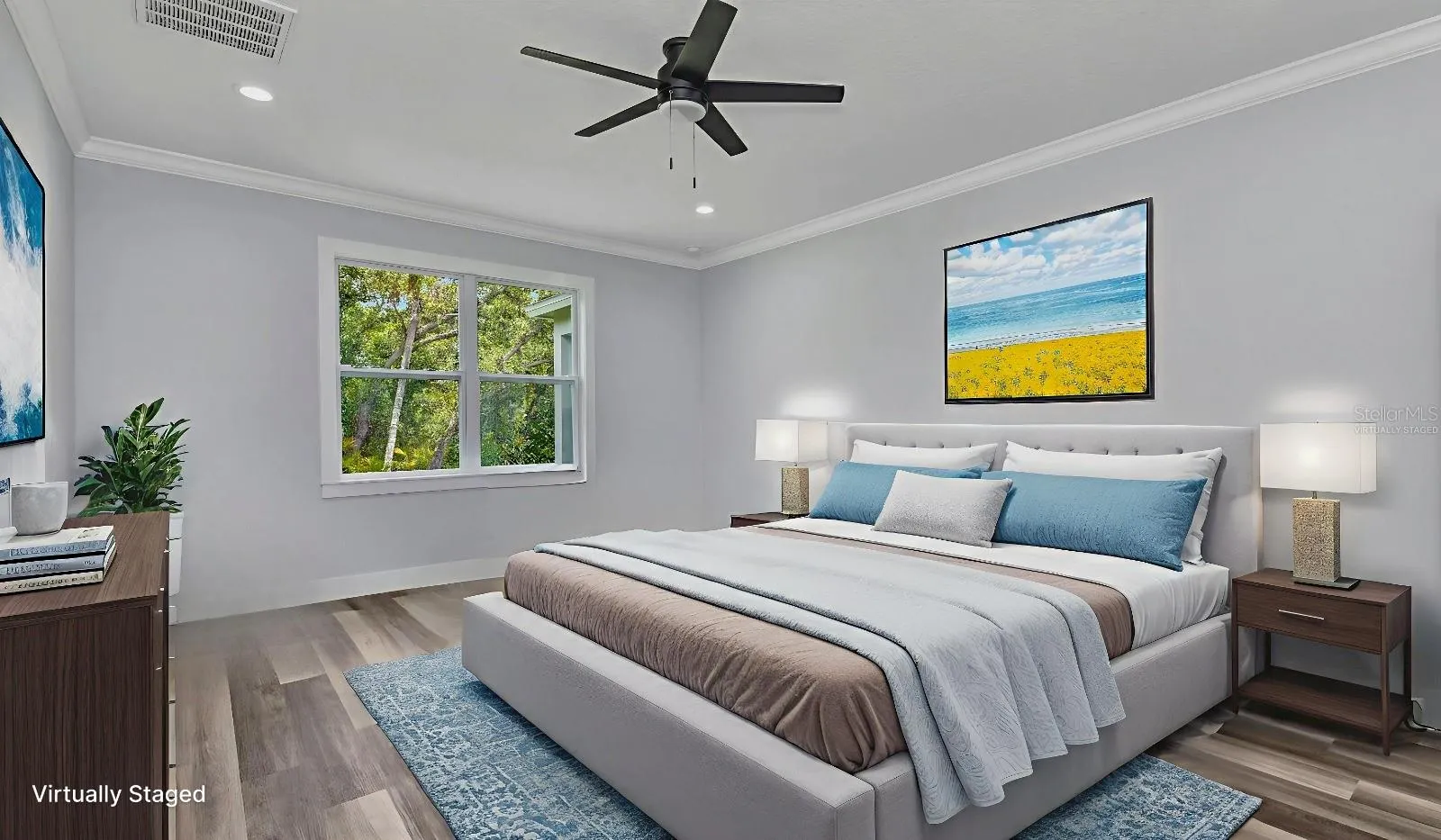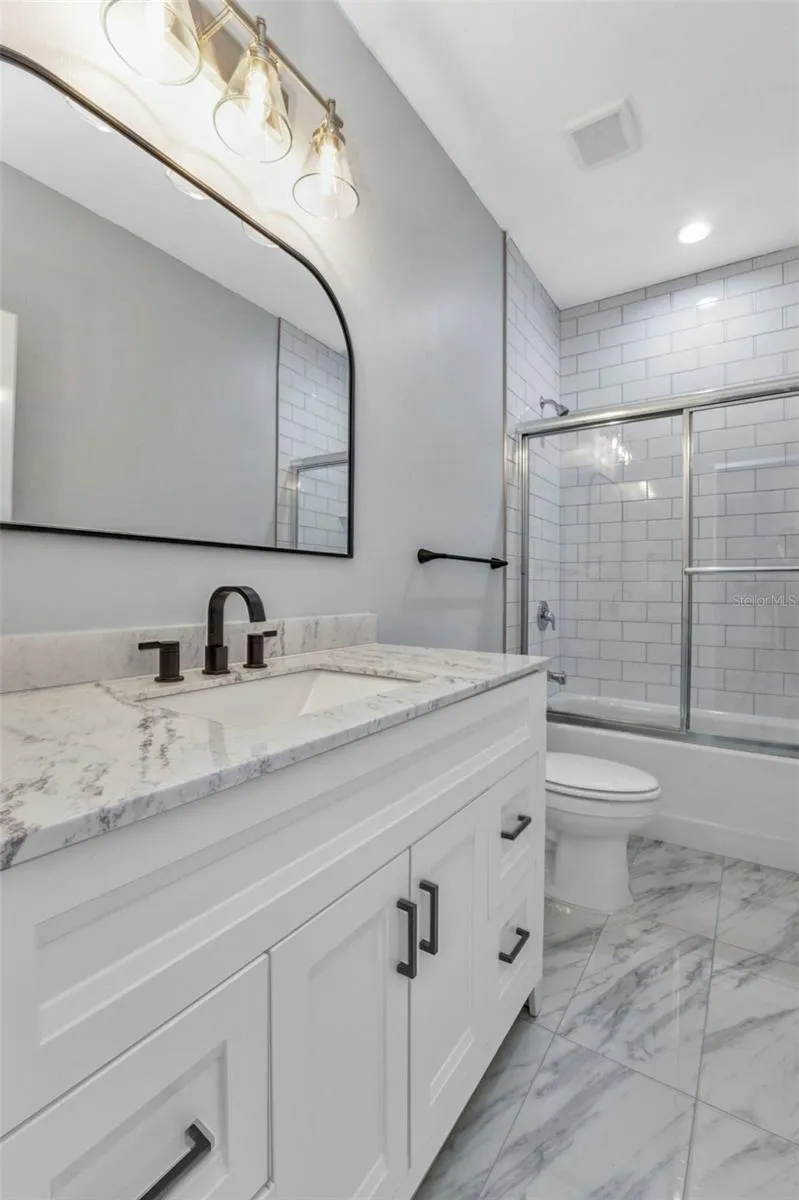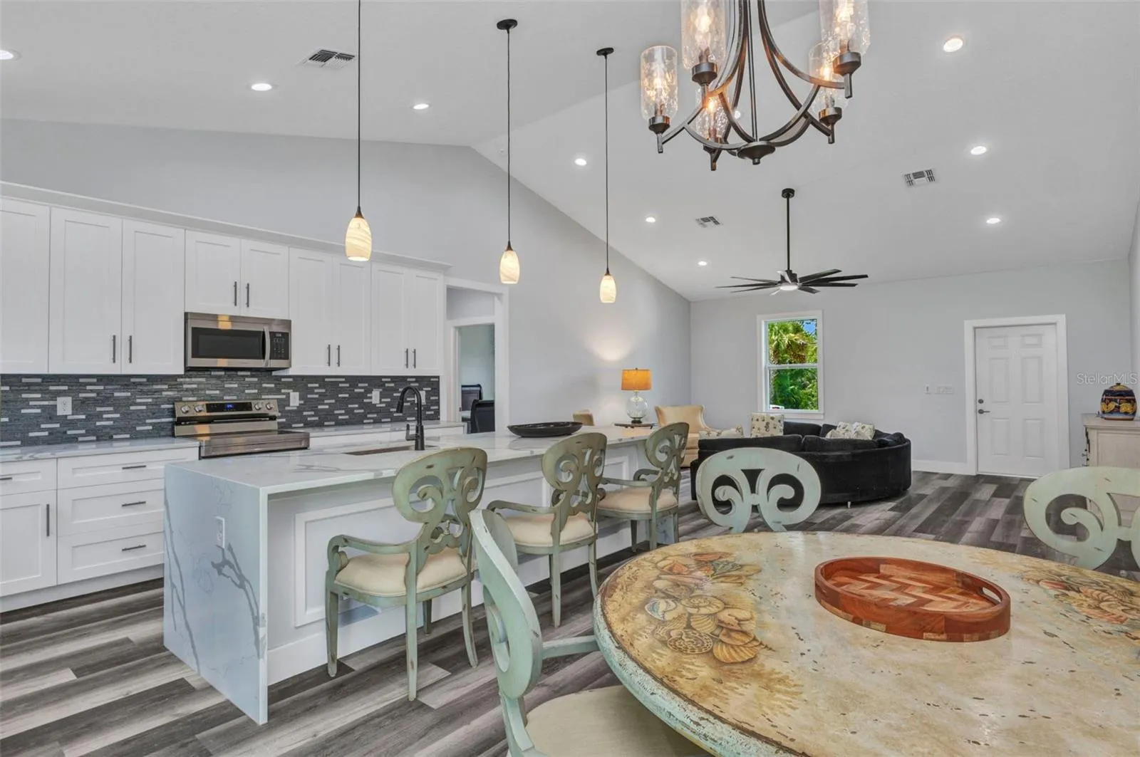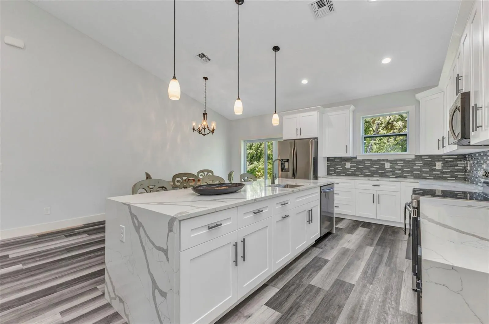 One or more photo(s) has been virtually staged. Welcome to your dream home! This stunning BRAND NEW 2025-built residence offers 3 spacious bedrooms, 2 stylish bathrooms, and a 2-car epoxied garage—all perfectly situated on a desirable corner lot close to world-famous beaches, top-rated restaurants, stores, and major league sports stadiums. Step inside to a light-filled, open floor plan designed for modern living and effortless entertaining. The kitchen is a showstopper, featuring quartz countertops, solid wood soft-close cabinets, and a striking waterfall-edge island perfect for gatherings. IMPACT RESISTANT WINDOWS provide peace of mind and energy efficiency along with the gray toned luxury vinyl flooring, while high-end finishes elevate every detail. You’ll love the oversized bedrooms, providing plenty of space for relaxation and storage, and the dedicated indoor laundry room adds everyday convenience.