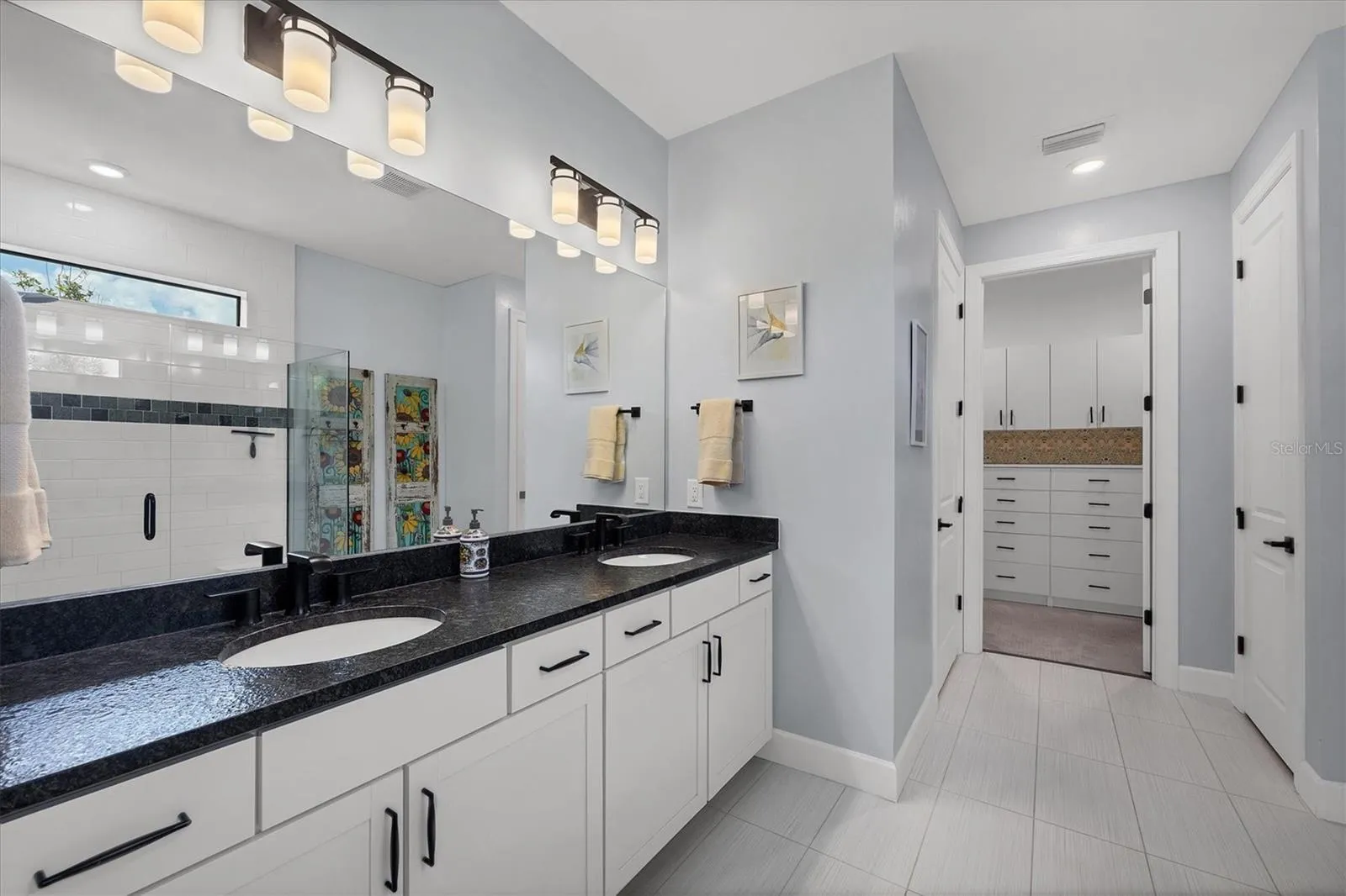 Welcome to Effortless Florida Living – This beautifully maintained ranch home features 2-bedroom|2-bath|Flex Room offering the perfect blend of comfort, functionality, and style, all nestled in the sought-after gated community of Del Webb Lakewood Ranch. From the moment you step inside the Mystique floor plan – you are greeted by an open concept boasting an abundance of natural light, thoughtfully designed for both everyday living and effortless entertaining. The heart of the home is the spacious kitchen, featuring a large island, built-in oven, cooktop, and custom-designed pantry-ideal for the culinary enthusiast. A separate laundry room offers generous storage, while the split-bedroom layout ensures privacy and flexibility. The flex room, enclosed by elegant French doors, is perfect for a home office, reading nook, or guest space. The primary suite is a serene retreat, complete with a bright and airy atmosphere, dual sinks, a walk-in shower, private water closet, and a professionally designed walk-in closet offering thoughtful organization and luxurious function. Step outside to your screened lanai and take in the tranquil view of lush, mature landscaping – a true extension of your living space that invites you to relax, entertain, or simply soak in the beauty of nature. Additional features include: Air-conditioned garage with epoxy floors and abundant storage, Whole-house water filtration system,