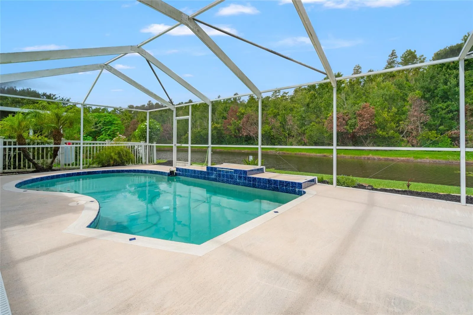 family room—with stunning views of the pool and peaceful pond beyond. Additional highlights include wood