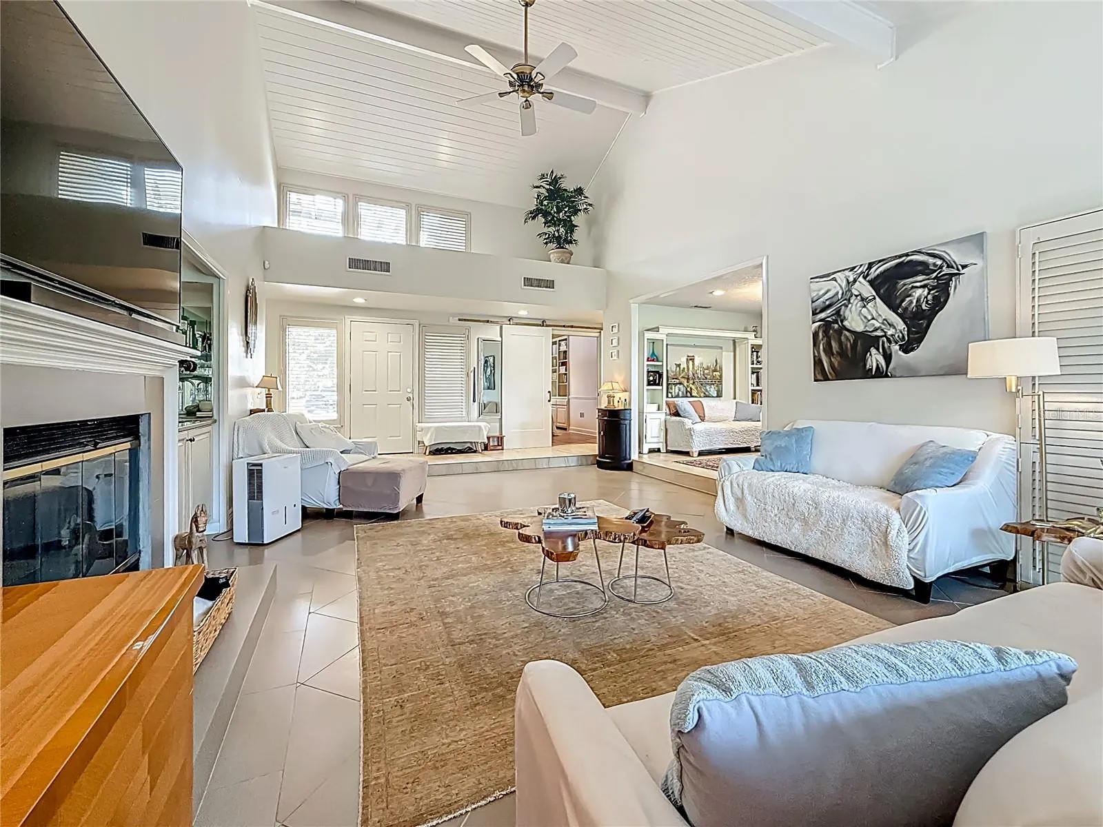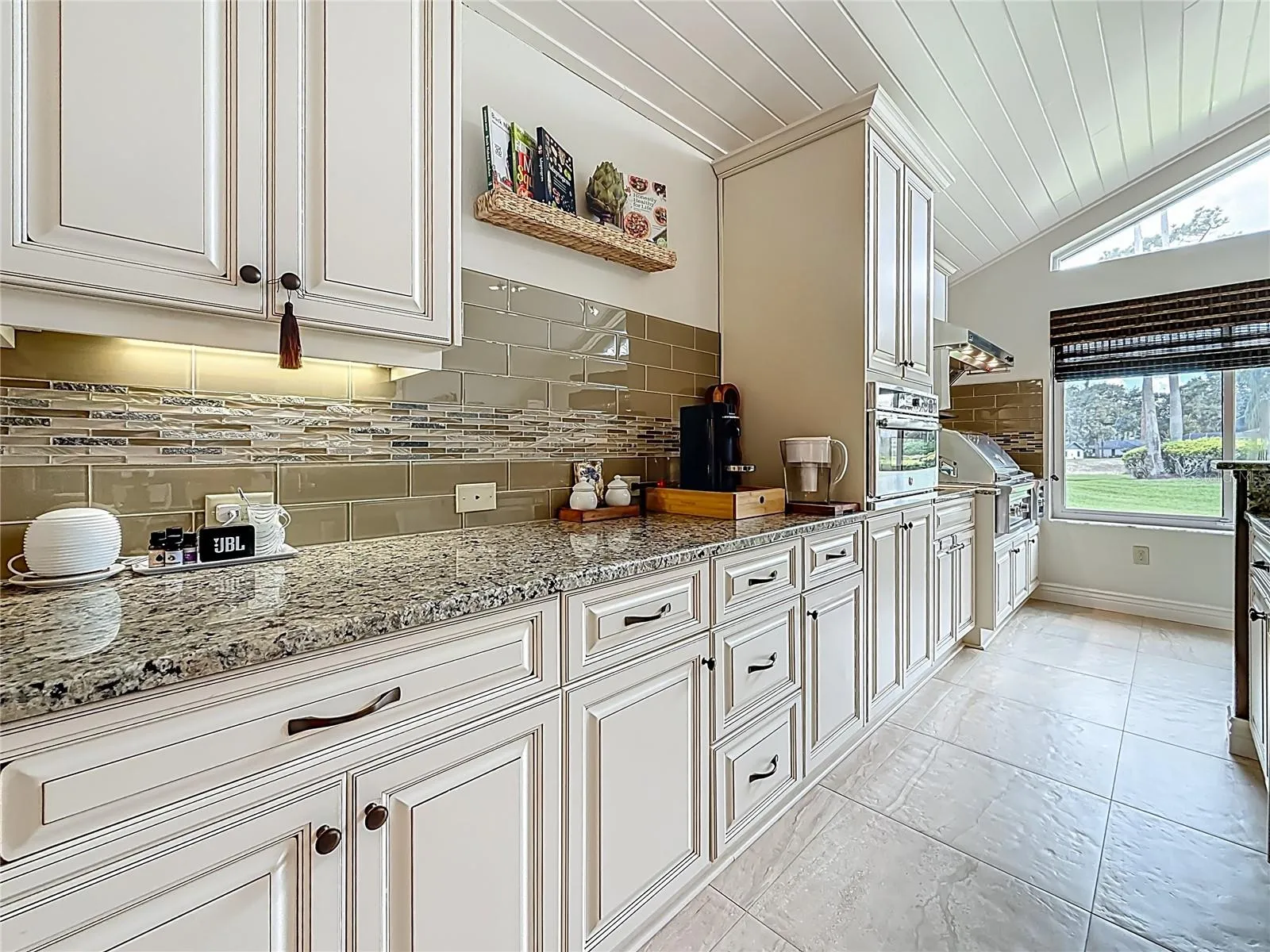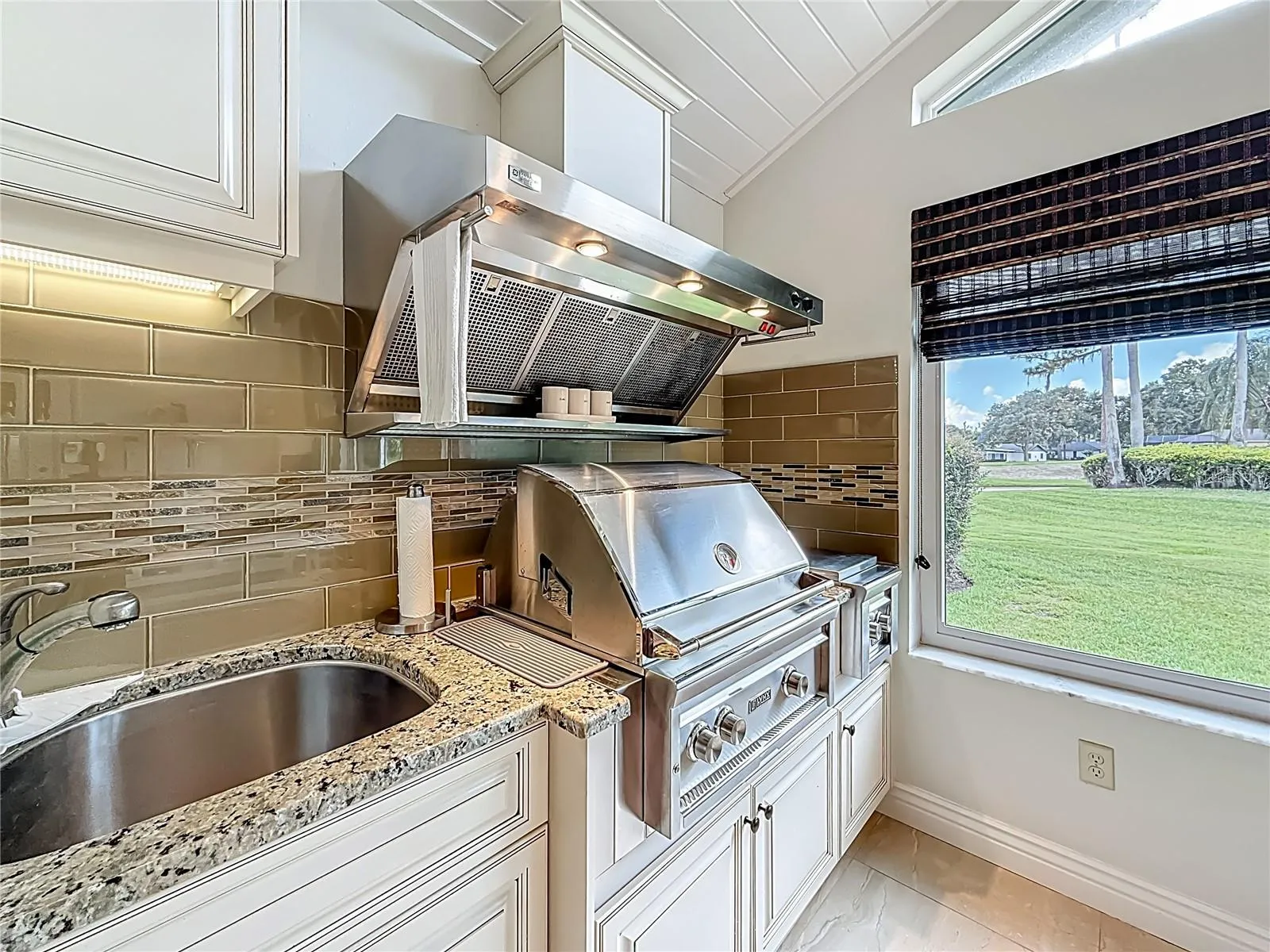 Welcome to resort-style living at an UNBEATABLE price! This beautifully crafted 3-bedroom, 3-bath home offers the perfect blend of luxury, comfort, and convenience in a maintenance-free community. Step inside to find an open floor plan with soaring ceilings, exposed beams, wood-burning fireplace in family room, and rich wood accents that add warmth and character throughout. The chef’s kitchen features granite countertops, ample custom cabinetry, and a unique indoor grill with professional ventilation — perfect for year-round entertaining. Abundant natural light floods the home through oversized windows showcasing lush, professionally landscaped grounds. Retreat to the primary suite, which boasts a spa-inspired bathroom with a walk-in shower, standalone soaking tub, dual vanities with stone counters, and a private water closet. Step outside to your screened-in lanai, featuring brick pavers, perfect for relaxing or entertaining with tranquil garden views. The epoxy-finished garage includes extensive built-in cabinetry for extra storage.