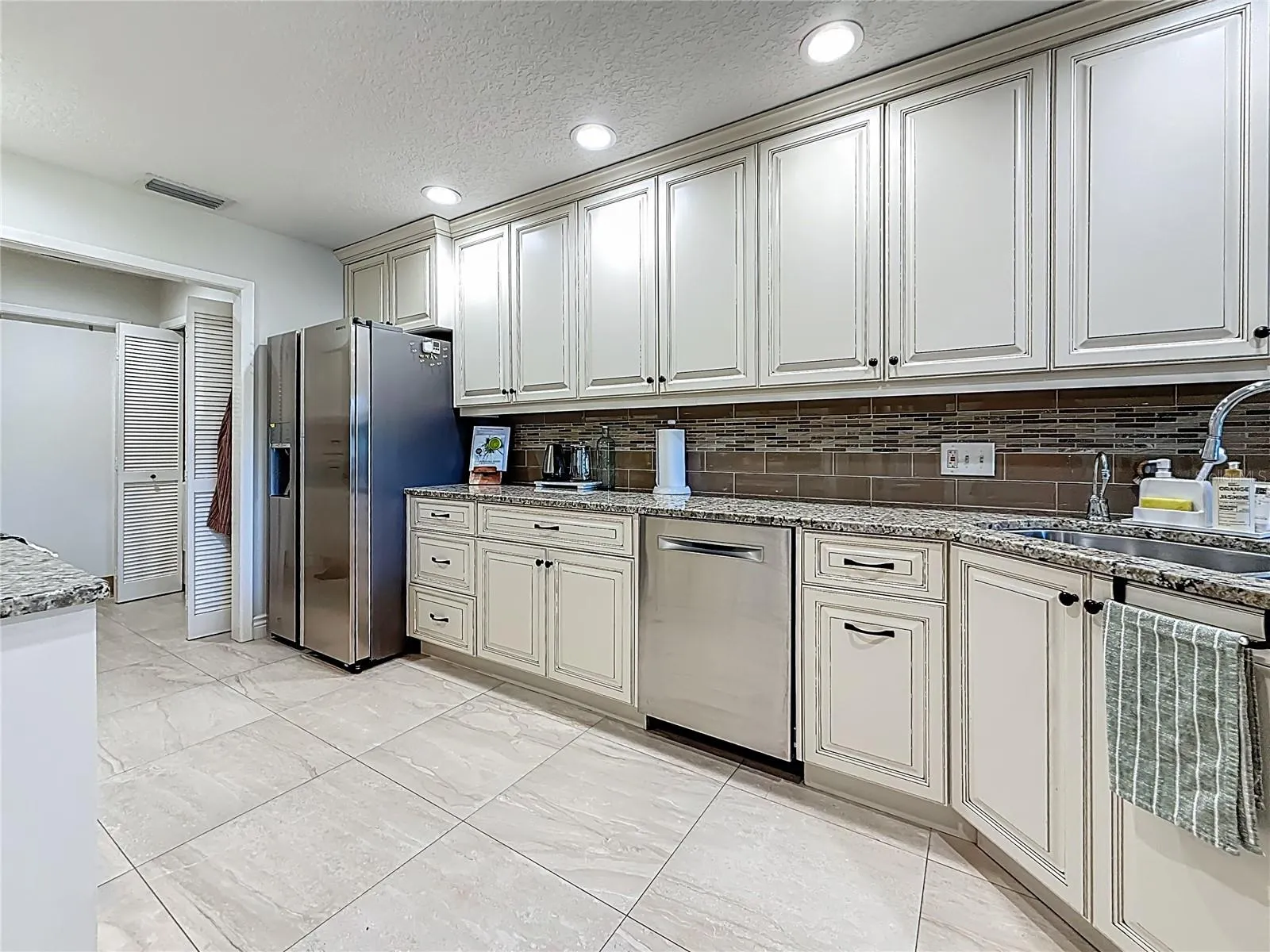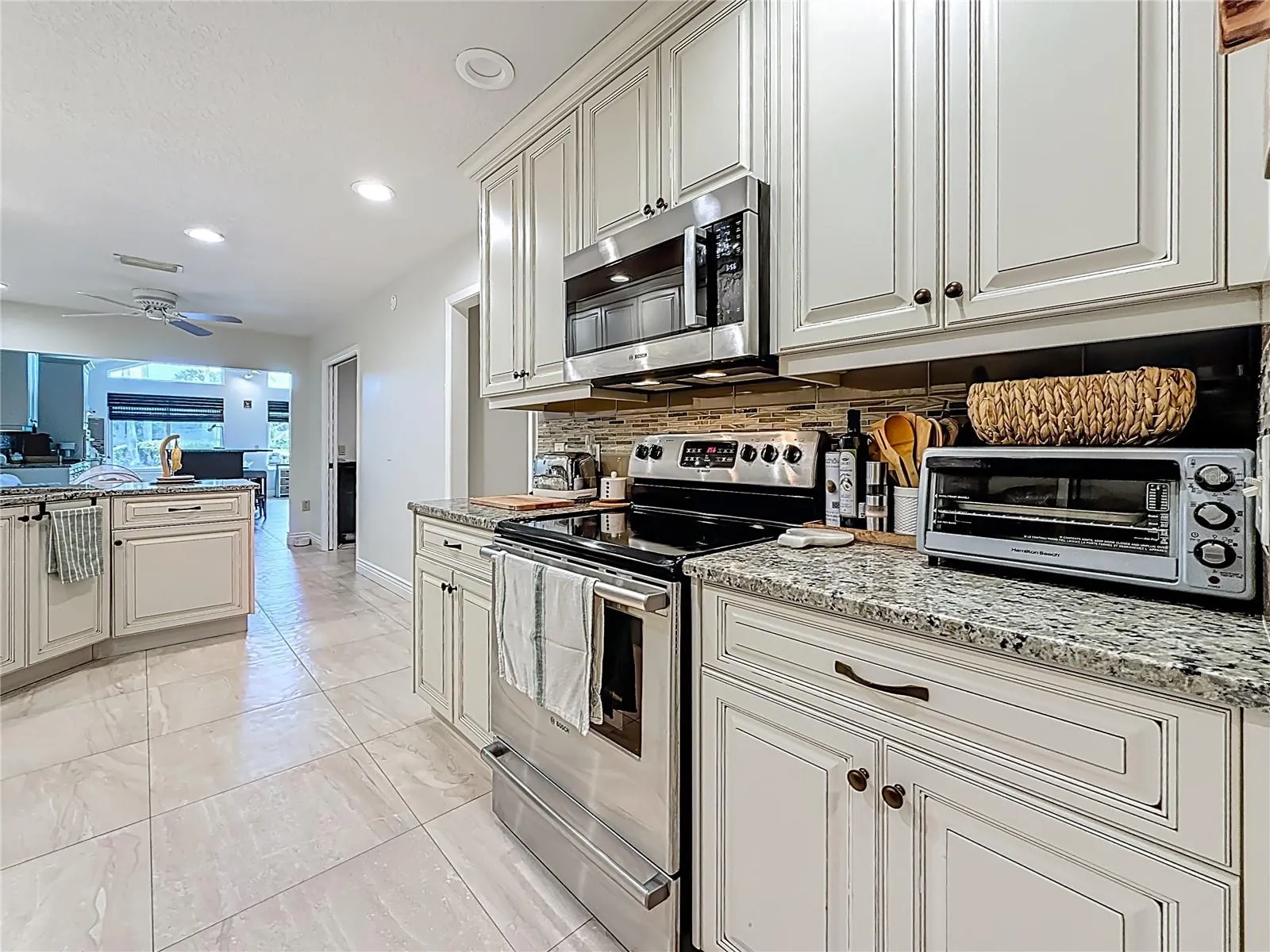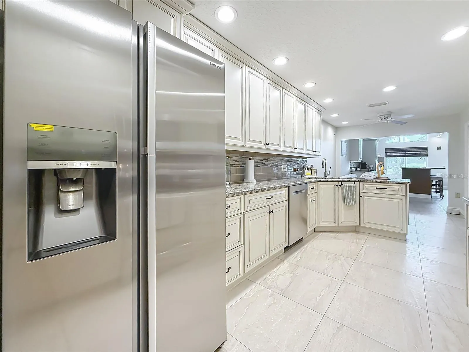 Welcome to resort-style living at an UNBEATABLE price! This beautifully crafted 3-bedroom, 3-bath home offers the perfect blend of luxury, comfort, and convenience in a maintenance-free community. Step inside to find an open floor plan with soaring ceilings, exposed beams, wood-burning fireplace in family room, and rich wood accents that add warmth and character throughout. The chef’s kitchen features granite countertops, ample custom cabinetry, and a unique indoor grill with professional ventilation — perfect for year-round entertaining. Abundant natural light floods the home through oversized windows showcasing lush, professionally landscaped grounds. Retreat to the primary suite, which boasts a spa-inspired bathroom with a walk-in shower, standalone soaking tub, dual vanities with stone counters, and a private water closet. Step outside to your screened-in lanai, featuring brick pavers, perfect for relaxing or entertaining with tranquil garden views. The epoxy-finished garage includes extensive built-in cabinetry for extra storage.