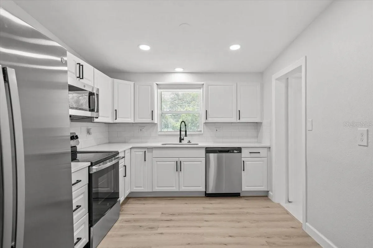 Beautiful 2 bedroom/ 2 bathroom fully remodeled home with a carport now ready for a new owner! Walk inside and see this home has been made like new with multiple upgrades including NEW interior and exterior paint, NEW luxurious vinyl flooring throughout the entire home, NEW kitchen with new cabinets, backsplash, sleek quartz countertops, and BRAND-NEW stainless-steel appliances. All new lights, ceiling fans, and other fixtures in every room. NEW toilets, vanities, and mirrors in both bathrooms. Open floor plan and stunning upgrades make this the perfect home for you! NEWER 2021 ROOF, NEW 2024 HVAC, 2024 Water heater, 2023 Hurricane Impact Windows. Schedule a showing now!