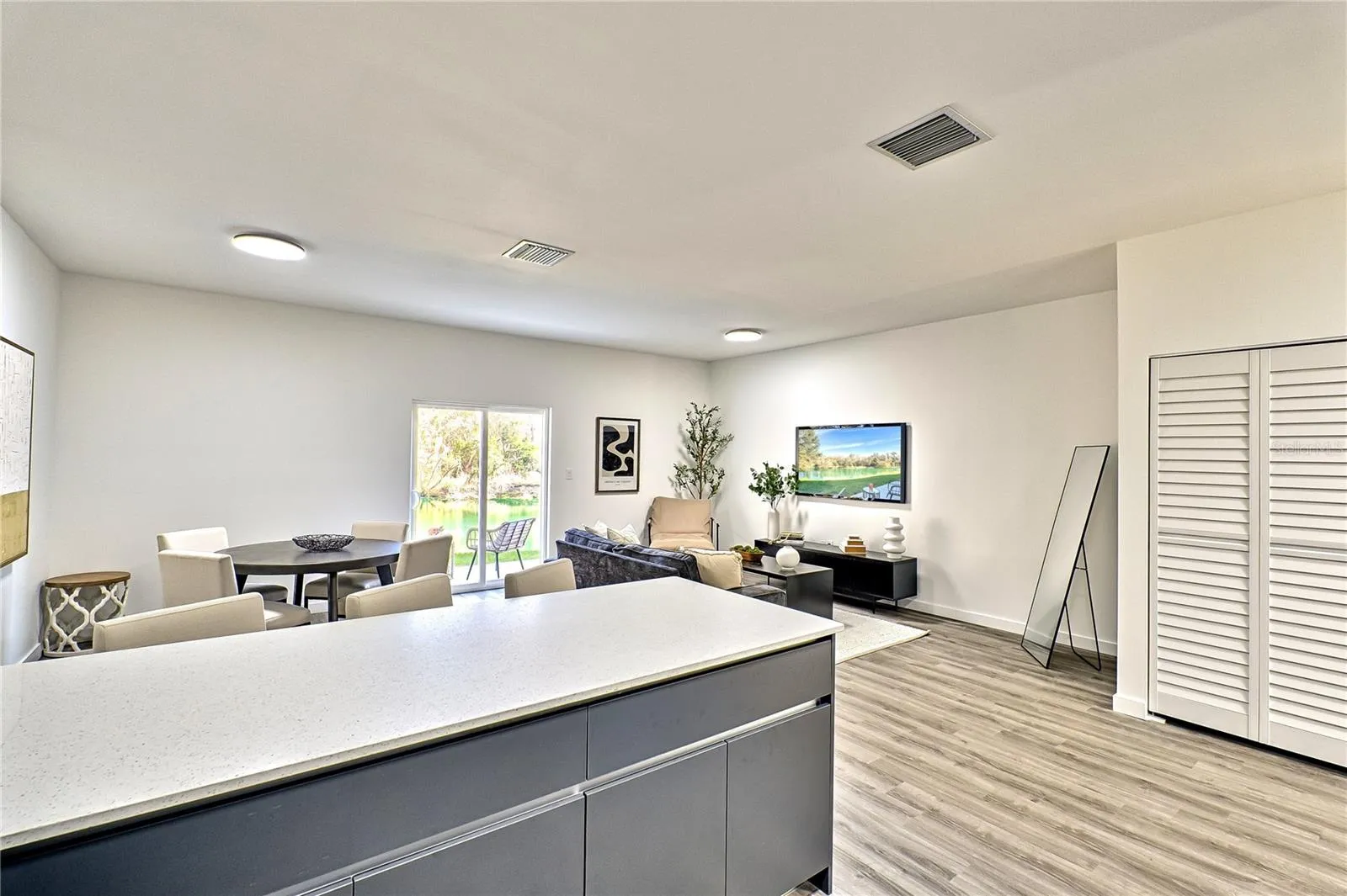 Just completed March 2025! Introducing NEW CONSTRUCTION at Eagle Trace, just 2.3 miles from the University of Florida in the heart of NW Gainesville. The Model D features a townhouse style layout with a welcoming covered entry, and a large open living room that offers plenty of space for relaxation and entertaining. An attached one-car garage adds both functionality and convenience, making this home as practical as it is beautiful. Gourmet kitchen with quartz counters, custom soft-close cabinetry, and fully equipped with stainless steel appliances including a refrigerator and freezer, smooth-top range, microwave, dishwasher, and garbage disposal. Double-pane windows, luxury vinyl tile wood-look flooring, and elegant porcelain tile paired with quartz countertops in the bathrooms, and window blinds included too! Eagle Trace has a beautiful lake-view entrance, a pool, clubhouse, and fitness center—all with a low HOA fee. Each condo comes with a 1-year builder warranty. Seller is offering a $15,000 credit to the buyer at closing! Please note that the photos are of a recently completed model unit with comparable finishes, but may not reflect the specific floor plan of this unit. Pricing & availability are subject to change without notice. With quick access to UF Health Shands Hospital, UF campus, and vibrant Downtown Gainesville, this pre-construction priced condo offers the perfect blend of luxury, affordability, and convenience!