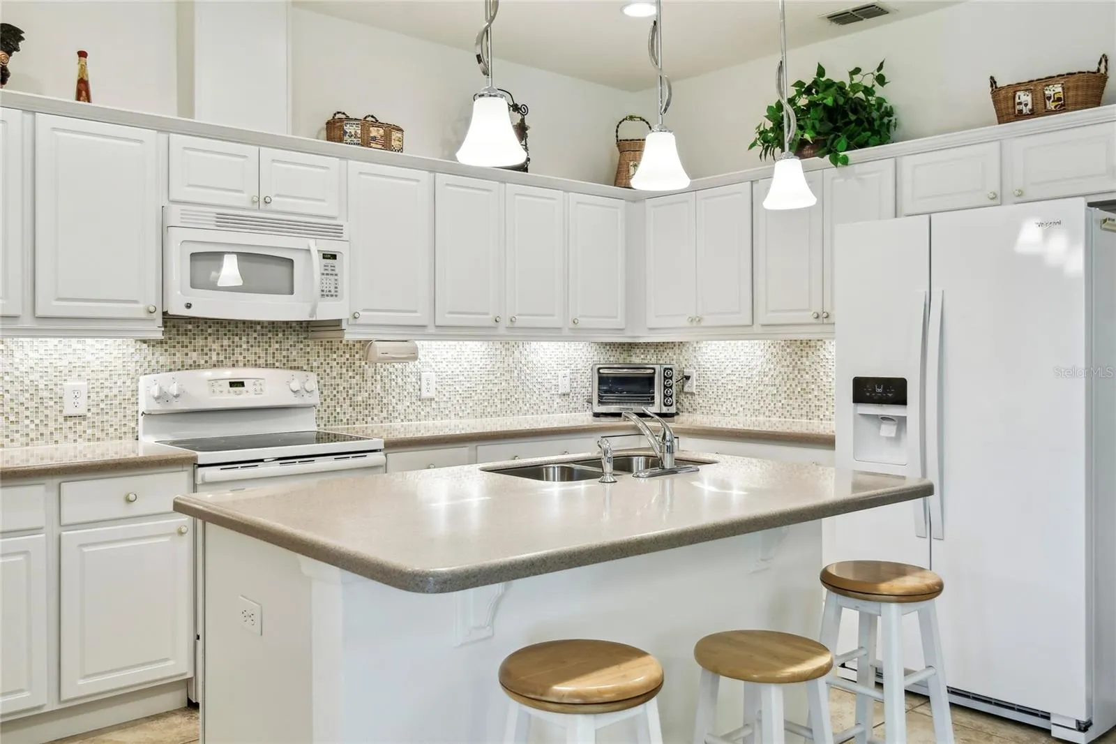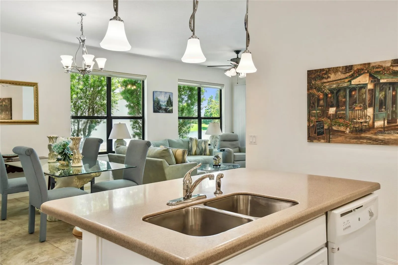 Enjoy gorgeous and relaxing WATER VIEWS from this beautifully maintained Amaro model located just a short distance from the Village Center. Featuring 2 bedrooms, 2 baths, and 18″ CERAMIC TILE in all wet areas, this home offers comfort, upgrades and the comfort and convenience of everyday vacation living! HVAC REPLACED 2024. CDD DEBT FEE PAID IN FULL. Step inside through a gated courtyard entry and SCREENED FRONT PORCH into an OPEN-CONCEPT layout featuring a spacious living area and an adjacent dining room, perfect for everyday living and entertaining. The kitchen features 42″ cabinets, corian countertops, MOSAIC TILE BACKSPLASH, breakfast bar, and plenty of prep space. The PRIMARY SUITE boasts peaceful WATER VIEWS, a large walk-in closet, and an ENSUITE BATH with DUAL SINKS, tiled walk-in shower with bench, linen closet, and private water closet. The guest bedroom overlooks the front courtyard and is near a full bath with a tub/shower combo and plenty of natural light. Relax outdoors on the COVERED and SCREENED lanai with EASTERLY exposure ideal for morning coffee and SUNRISE VIEWS!! Additional upgrades include a whole-house WATER SOFTENER system, stylish silhouette shades that allow soft daylight while maintaining privacy, CEILING FANS in all rooms for year-round comfort, and fresh landscaping with river rock and CURBING added in 2024 for added curb appeal.The HOA fee COVERS both HOUSE PAINTING and EXTERIOR power washing.** Click on VIRTUAL TOUR link 1 to see MATTER PORT 3D VIDEO and virtually walk through this home.**Solivita features amazing resort-style perks like 36 holes of championship golf, 14 heated pools, 17 pickleball courts, 9 tennis courts, 2 fitness centers, 3 restaurants, and 250+ resident clubs. You’ll also find softball fields, bocce, shuffleboard, billiards, dog parks, and plenty of walking and biking trails. The HOA handles landscaping, irrigation, roads, 24/7 gated security, plus fiber optic internet and TV service.***Poinciana Lakes Plaza is a MAJOR NEW SHOPPING CENTER that opened directly across from the Solivita Main Gate in Summer of 2024. It features Sprouts Grocery, TJ MAXX, Ross, Burlington, Rack Room Shoes, 5 Below, Ulta, Outback, First Watch, 5 Guys, Urgent Care, Dentist, TD Bank, Petco & Hair Cuttery PLUS MORE TO COME.***