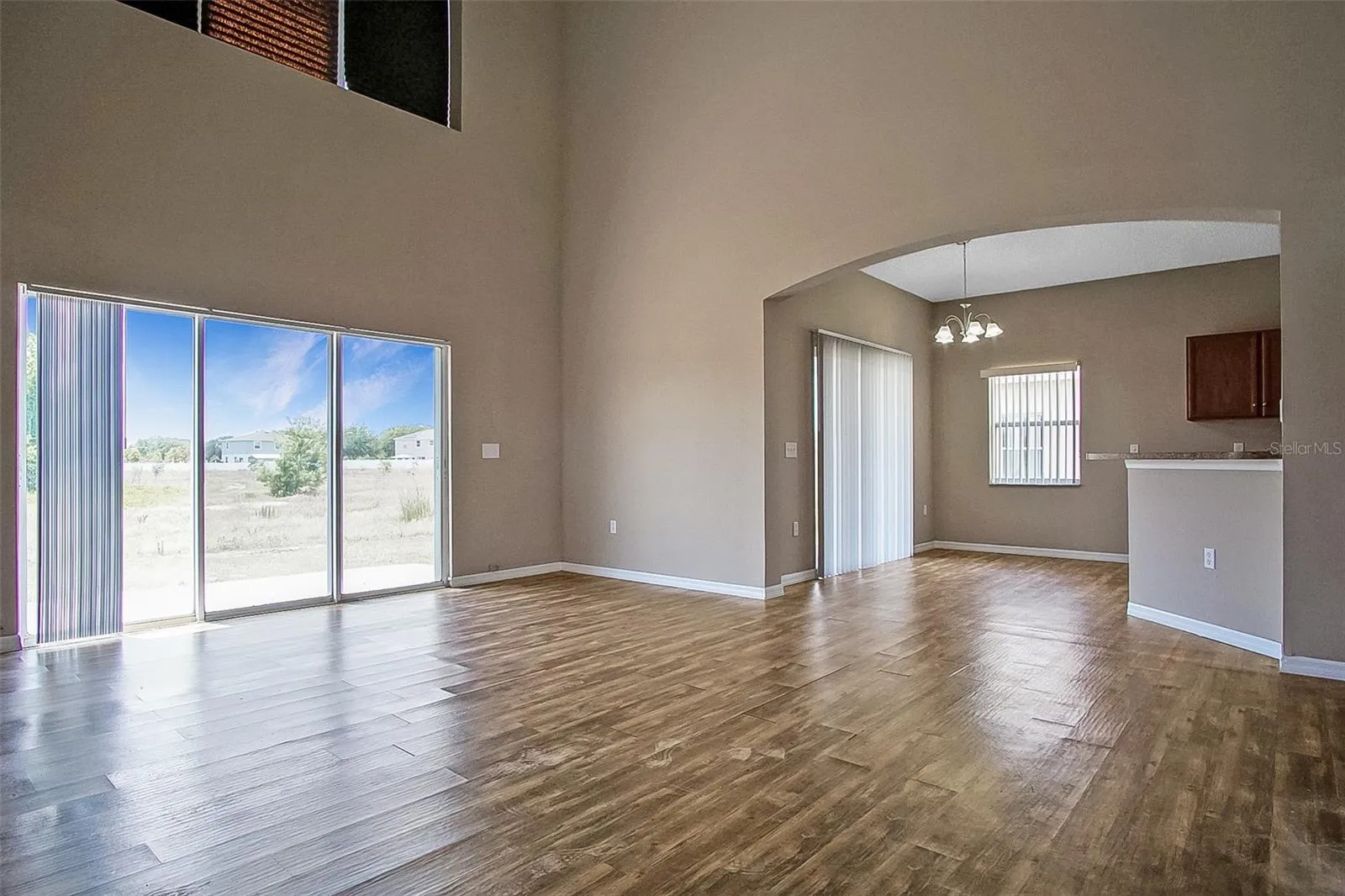 The living area is expansive and flooded with natural light, featuring a sliding door that leads to the rear of the home, allowing for seamless indoor-outdoor living and entertaining.