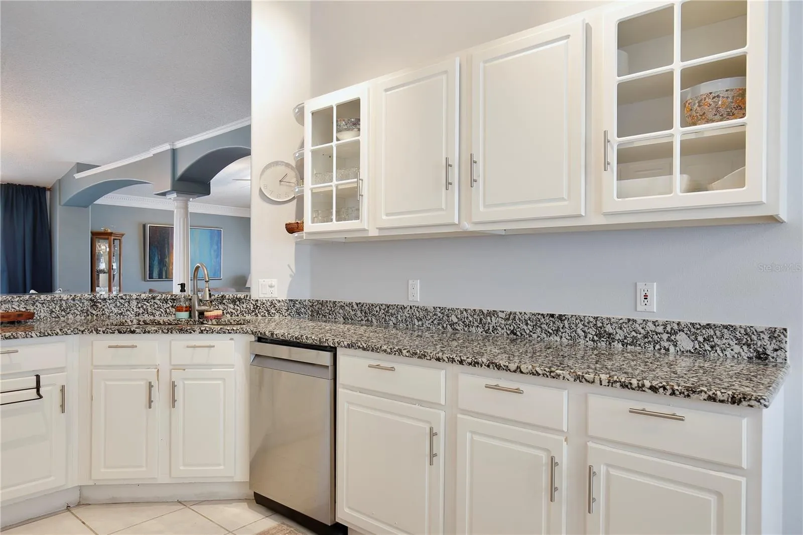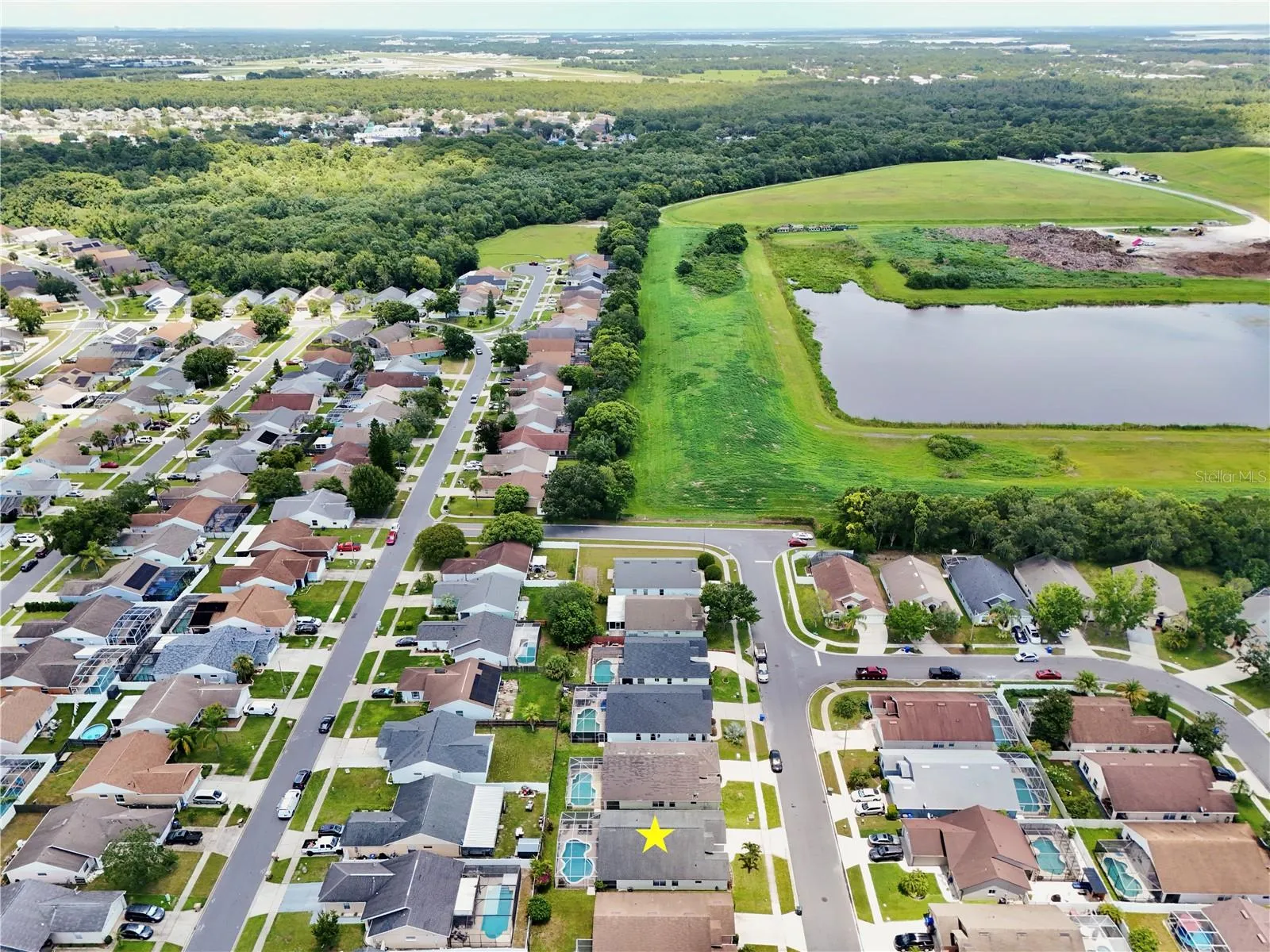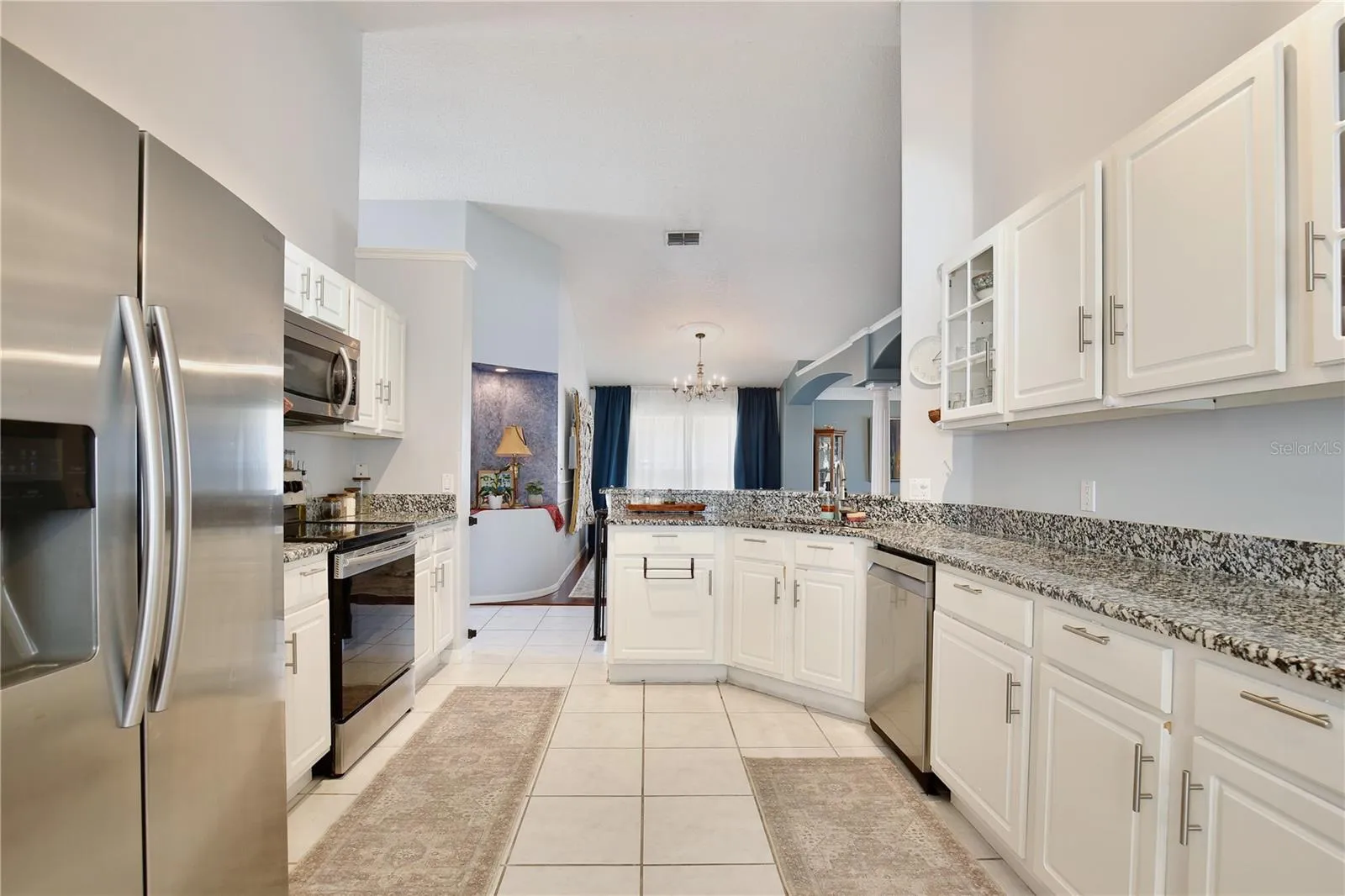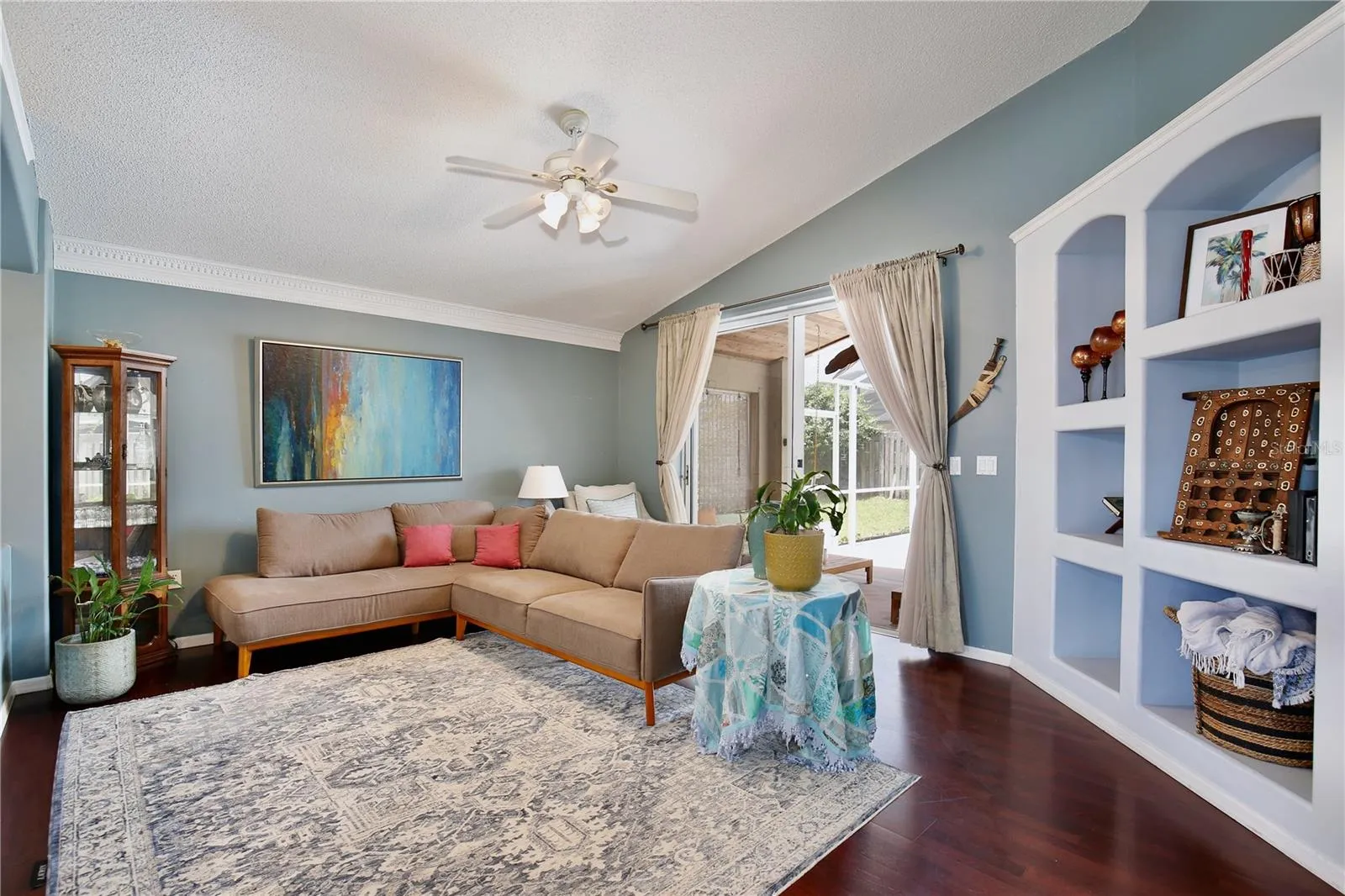 Discover the epitome of Florida living in this beautiful three-bedroom, two-bathroom residence, where every day feels like a vacation! Boasting curb appeal with landscaping and tropical palm trees, this house welcomes you through a cheery blue door into an elegant interior accentuated with arched walkways, stately columns, crown molding, cherry wood-style floors, and vaulted ceilings that amplify the natural light. The ROOF was replaced in 2017, offering peace of mind and added value. Host guests effortlessly in the stunning dining area where a radiant chandelier sets the tone, seamlessly transitioning into the living room framed by graceful archways. The generously sized kitchen is a chef’s delight with its sleek granite counters, stainless steel appliances, glass door cabinets, pantry storage, and breakfast nook for casual dining. The living room features an accent display wall and provides an inviting atmosphere with picturesque views of the serene pool through sliding glass doors. Find solace in the light and airy primary suite adorned with elegant wainscoting and trim, tranquil pool vistas, and a walk-in closet with custom built-ins. The primary bath offers dual sinks, granite counters, a bathtub, and a glass door shower. A versatile bonus room with double door entry offers serene pool views, perfect for a home office or creative space. Two inviting guest bedrooms with vaulted ceilings are located on each side of the guest bath, featuring a granite counter vanity and tub/shower combo. Outside, relax under the shade of the covered patio with wood plank ceilings and take a leisurely swim in the stunning lagoon-style pool. Community amenities include a playground, picnic area, pickleball court, and a pool with water vistas. With its proximity to Disney World, Publix, Walmart, Kissimmee Gateway Airport, and Highway 192, this home is a true retreat. Experience the best of Florida leisure—feed gators at Gatorland, enjoy retail therapy at The LOOP, revel in Old Town’s car show parade, and embrace the magic of Disney World. Home is also zoned short term rental and can be used for holiday rentals. Don’t miss the opportunity to make this dream home your reality. Schedule a showing today and claim this gem as your own!