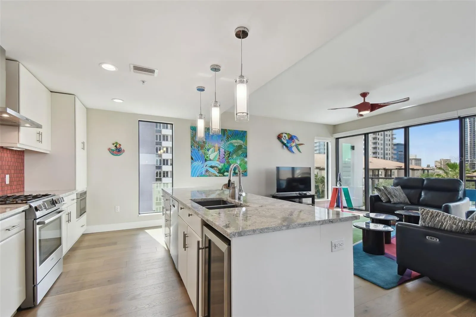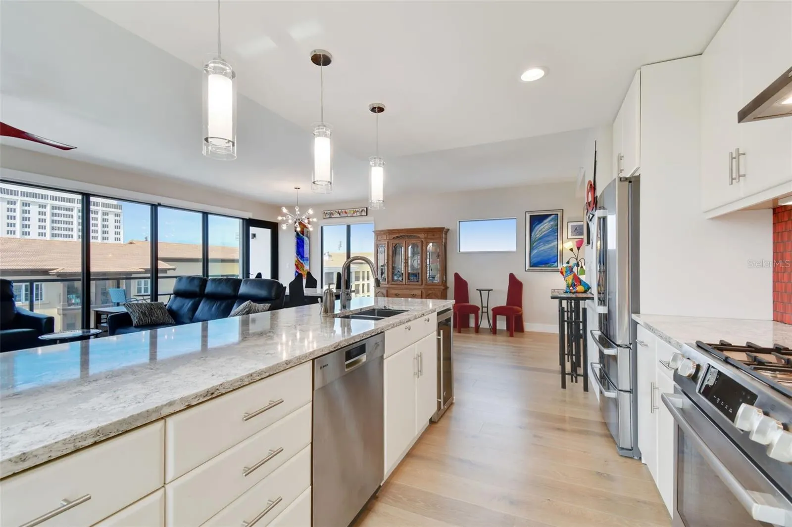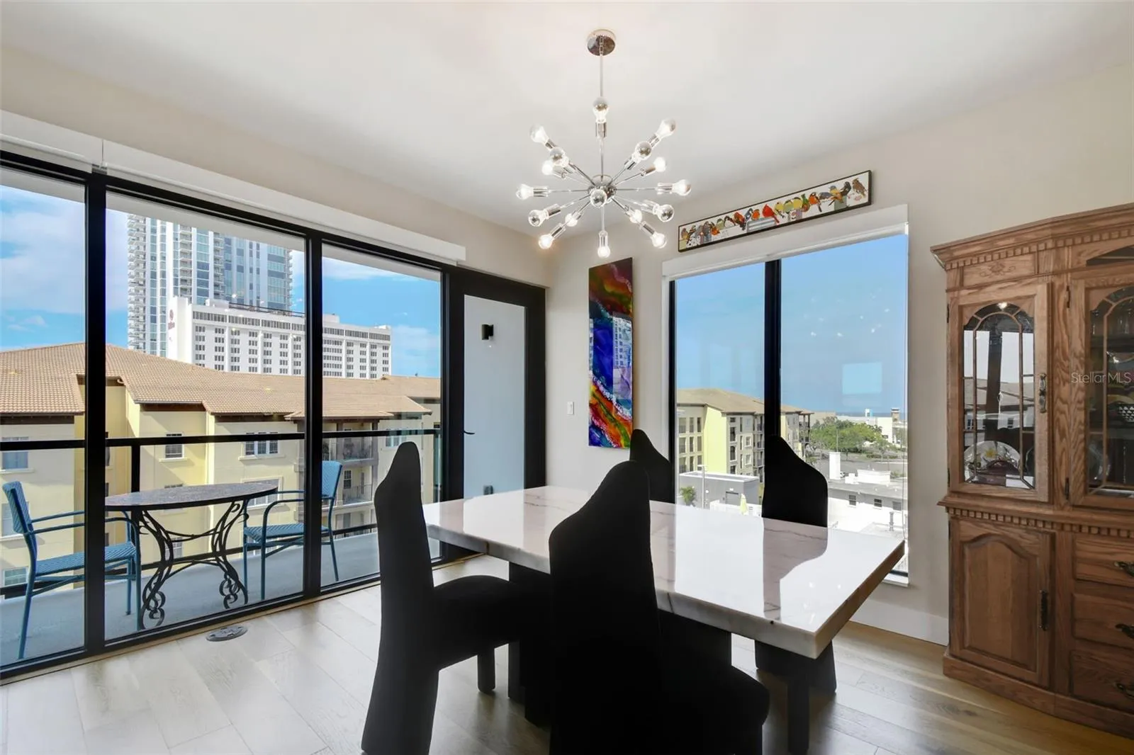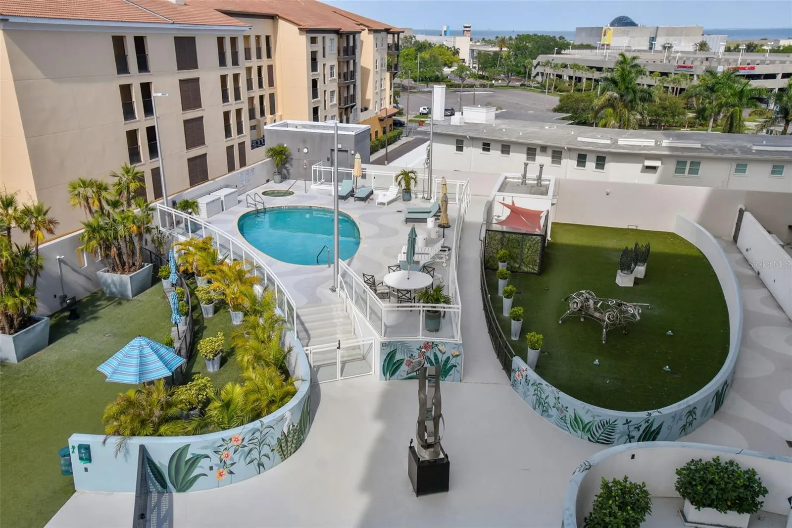 You’ll enjoy panoramic vistas of the city and Tampa Bay from the spacious balcony with room for plenty of seating and no adjacent neighbors. Step inside and you’re welcomed by a spacious Gallery Hall—perfect for showcasing art and setting a dramatic tone for what’s ahead. This 1,555-square-foot, 2-bedroom, 2-bath home stands apart with windows on three sides, flooding the open floor plan with natural light and ever-changing views. The living and dining areas are framed by floor-to-ceiling glass and outfitted with motorized blinds for effortless ambiance control. The sleek, contemporary kitchen features upgraded countertops and cabinetry with custom pullouts, a natural gas range, wine cooler, and smart storage throughout. Design details shine here—upgraded dimmers, modern lighting, and stylish ceiling fans add a layer of refinement. The primary suite is a serene retreat with a generous California Closets walk-in and a spa-inspired bath complete with a deep soaking tub, oversized shower, and dual-sink vanity. The second bedroom includes a custom-built queen Murphy bed with integrated desk, making it ideal as a guest room, office, or both. Blackout and shade blinds are installed in both bedrooms for maximum comfort. A dedicated laundry area with custom cabinetry adds convenience, and the included first-floor parking space is a major plus. The Salvador—an exclusive, LEED-certified building of just 74 residences—offers outstanding amenities: pool and spa, state-of-the-art fitness center, social room, grilling area, dog park with wash station, sculpture garden, and outdoor fire pit. Concierge service and on-site management elevate the lifestyle. Set in a peaceful pocket just blocks from downtown, the Dali Museum, Mahaffey Theater, Albert Whitted Airfield, and the Saturday Morning Market, this residence blends privacy, luxury, and location like few others. Schedule your private tour today.