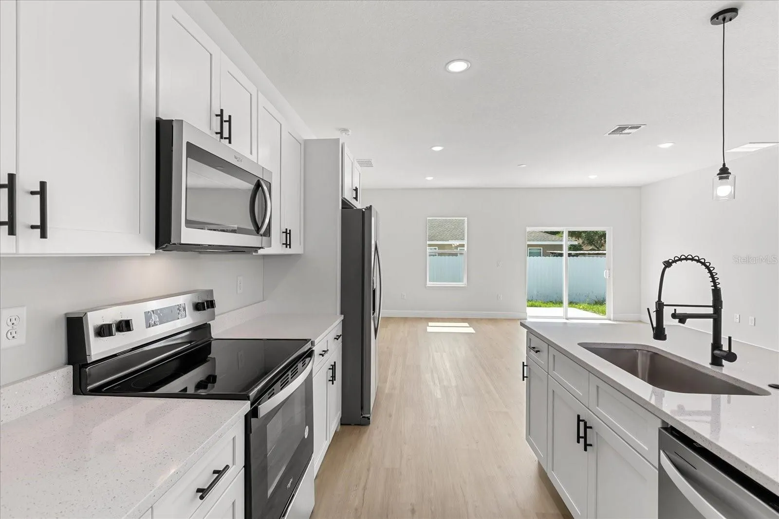 One or more photo(s) has been virtually staged. Welcome to this delightful four-bedroom, three-bath single-family home in the heart of Marion Oaks. Built in 2025, this residence offers a comfortable 1,865 square feet of living space on a generous 10,454-square-foot lot. The open-concept layout seamlessly connects the living, dining and kitchen areas, creating an inviting atmosphere for family gatherings and entertaining guests. The kitchen boasts modern appliances and ample counter space, ideal for culinary enthusiasts. Retreat to the spacious primary suite featuring an en-suite bath and walk-in closet. Three additional bedrooms provide flexibility for a home office or guest accommodations. Enjoy the Florida sunshine in the expansive backyard, ideal for outdoor activities or future landscaping projects. In a peaceful neighborhood with easy access to local amenities, schools and parks, this home offers comfort and convenience.