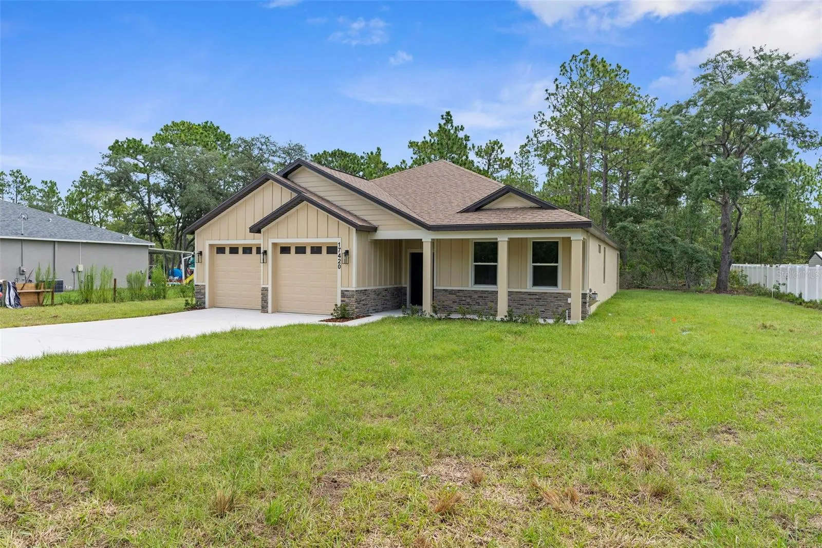 BRAND NEW, Craftsman-Style, Luxury Home!! Completed and Move-in Ready!! PAVED ROAD!! NO HOA!! NO FLOOD!! NO REAR NEIGHBORS!! This STUNNING home offers 4 large bedrooms + 2.5 bathrooms + 2 car garage + large front porch + covered rear lanai in a great location close to shopping and zoned for the county’s newest schools (K-12)! This Craftsman-style home with country appeal and stone accents – offers you that southern country feeling! 2,166 sq ft living space; 2,910 total.