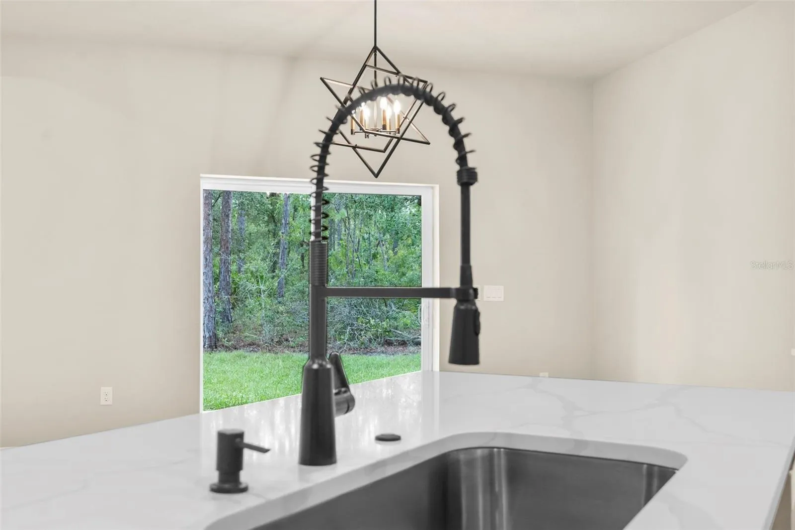 The private master bedroom offers a high tray ceiling and an EXTRA LARGE walk-in closet! The ensuite bathroom is a SPA RETREAT in itself with a large stand-alone, modern soaking tub, separate over-sized, floor-to-ceiling tiled walk-in shower and designer shower head and frameless glass, dual sinks, matching real wood upgraded cabinets with framed mirrors, designer faucets and lighting, and a separate toilet room for privacy! There is a half bath off the great room for your guests!! The second bathroom dual sinks and matching luxury finishes! The half guest bath is upgraded, as well, to match the home! Sip your coffee on your large back covered patio in the mornings! Multi-zoned sprinkler system & landscaping! Brand NEW well and septic!! Everything is brand new!!