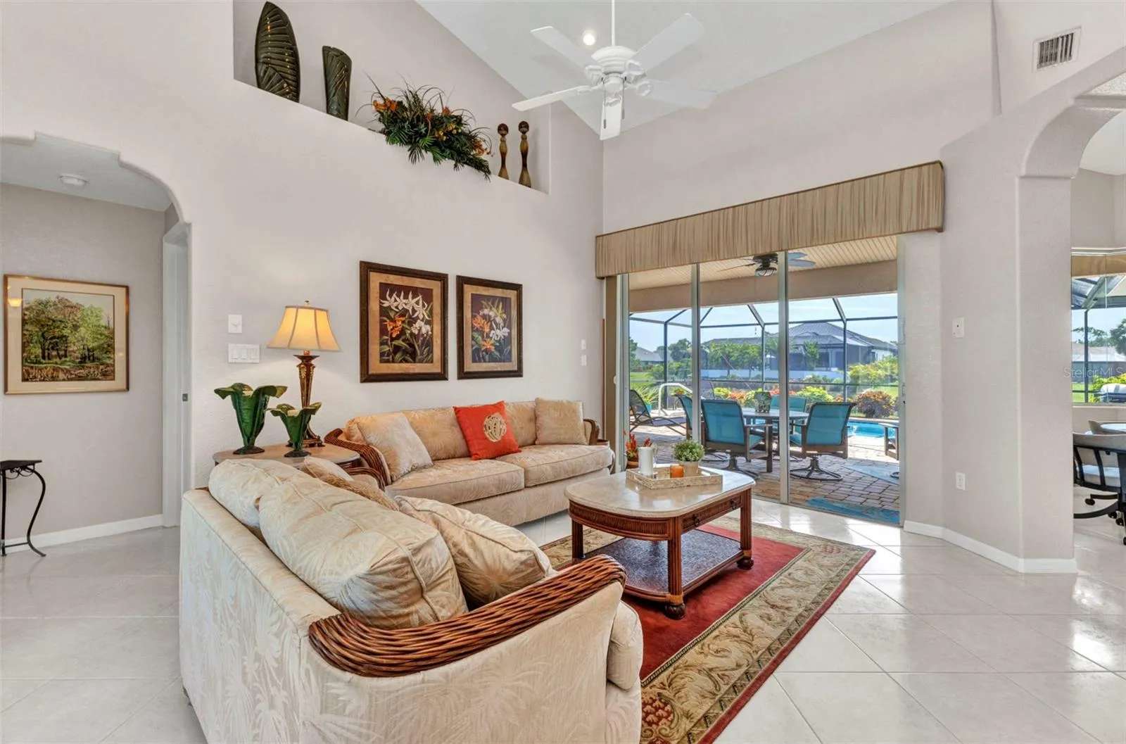 Welcome to your Florida dream home! This beautifully maintained 3-bedroom, 2.5-bathroom residence is located in the highly desirable community of Rotonda West and offers the perfect blend of comfort, quality, and peace of mind. With full impact windows, hurricane film on the sliders, and no flood insurance required, this home was built for both beauty and durability. As you enter, you’ll notice the beautiful Bottocino marble floors from Italy laid on a diagonal. You’re immediately greeted by an open layout and a stunning view of the sparkling saltwater heated pool, framed by lush landscaping and tranquil views of the Rotonda River. The formal living room features a large sliding door to the lanai, creating a seamless indoor-outdoor flow. A formal dining room nearby provides a perfect setting for family gatherings or dinner parties. The primary suite is a peaceful retreat, complete with luxury interlocking waterproof laminate floors- two separate walk-in closets and sliding glass doors leading to the lanai. The ensuite bathroom offers a luxurious escape, featuring two separate vanities, a jetted soaking tub, and a unique walk-in shower with dual entrances and two shower heads. Natural light floods the space, creating a spa-like ambiance. The gourmet kitchen is designed for both style and function, equipped with stainless steel appliances, quartz countertops, a center island, breakfast bar, and a sunny dinette with an aquarium window offering a panoramic water view. The kitchen opens to a spacious family room, also with sliding doors to the lanai, making entertaining a breeze. The home’s split floor plan places two spacious guest bedrooms and a full guest bathroom on the opposite side of the house for maximum privacy. Bedroom two includes a walk-in closet, while the guest bath features a tub/shower combo ideal for visiting family or friends. A full-sized laundry room includes a washer and dryer along with built-in cabinetry for extra storage. The two-car garage offers built-in storage and a sleek epoxy floor finish, keeping things clean and organized. Throughout the home, you’ll find surround sound with intercom speakers in each room, enhancing your audio experience whether relaxing indoors or entertaining on the lanai. The outdoor space includes a large covered area, a screened lanai, and a private dock overlooking the Rotonda River, offering peaceful sunset views or a place to launch a kayak or enjoy a quiet morning by the water. Recent updates include a new roof in 2022, a new A/C in 2021, and impact windows and doors installed in 2021. The RainTree irrigation system helps keep your lawn lush year-round. Rotonda West is one of Florida’s premier golf course communities, offering a laid-back lifestyle with access to multiple championship courses, world-class fishing, nature preserves, and the serene sandy beaches of the Gulf Coast just a short drive away. Punta Gorda Airport 30 mins, Sarasota Airport 45 mins and RSW is an hours drive. Whether you’re an avid golfer, a boating enthusiast, or simply looking for a serene Florida retreat, this home has it all.