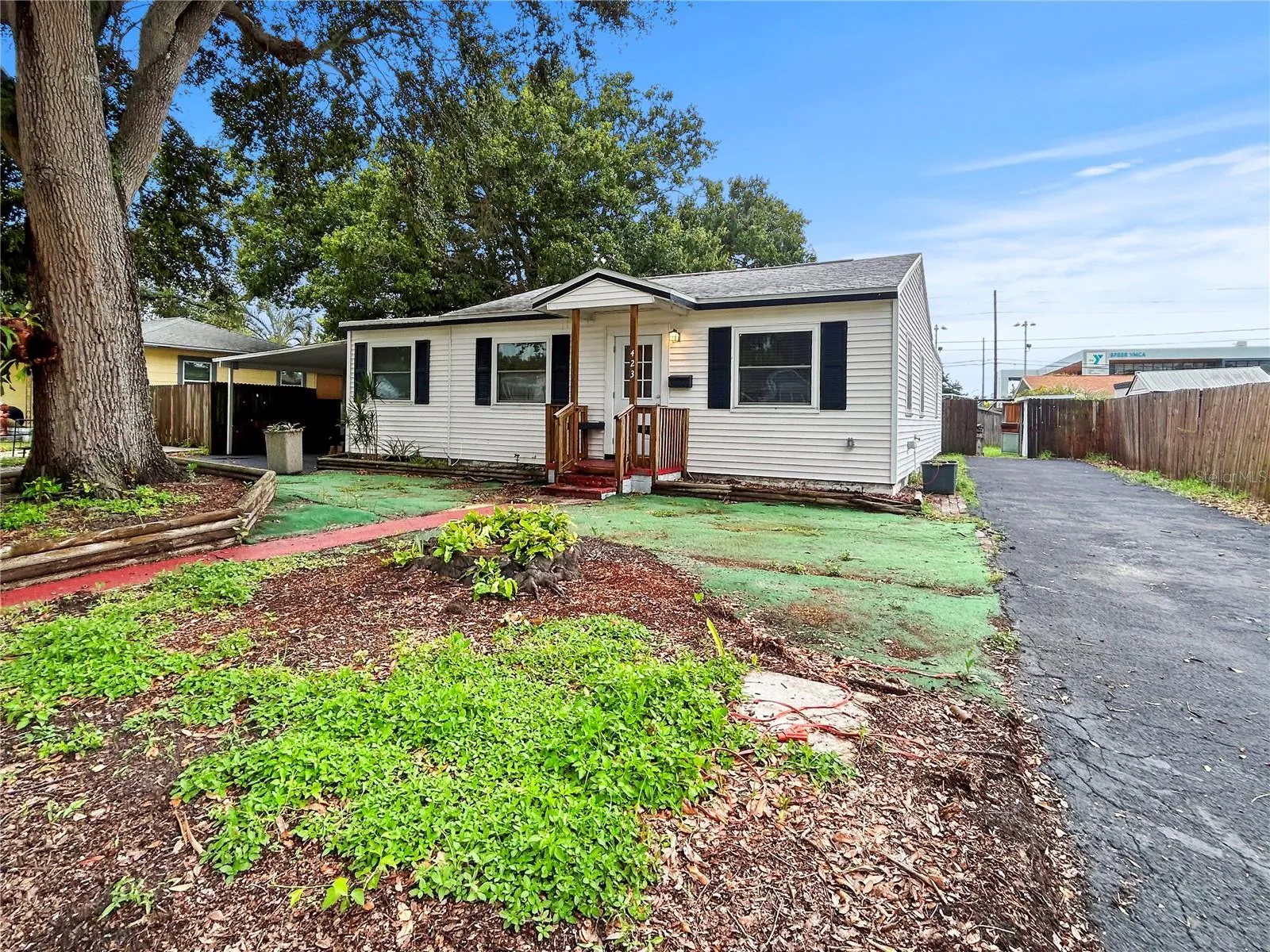 This home is freshly interior painted, new cabinets in kitchen and inside laundry room, new flooring throughout, and ceiling fans. Time to move in! The home is uniquely laid out with two bedrooms, family room, dining room and home office in the middle of the house. The property is a very nice size lot of 70×103.The rear of the home has a screened in sunroom/rear porch. The home is nearby of Speer YMCA, Northeast Park and also Cypress Links Golf Course. Great Area. Drive by and take a look. Great Lot for development. Open to serious offers.