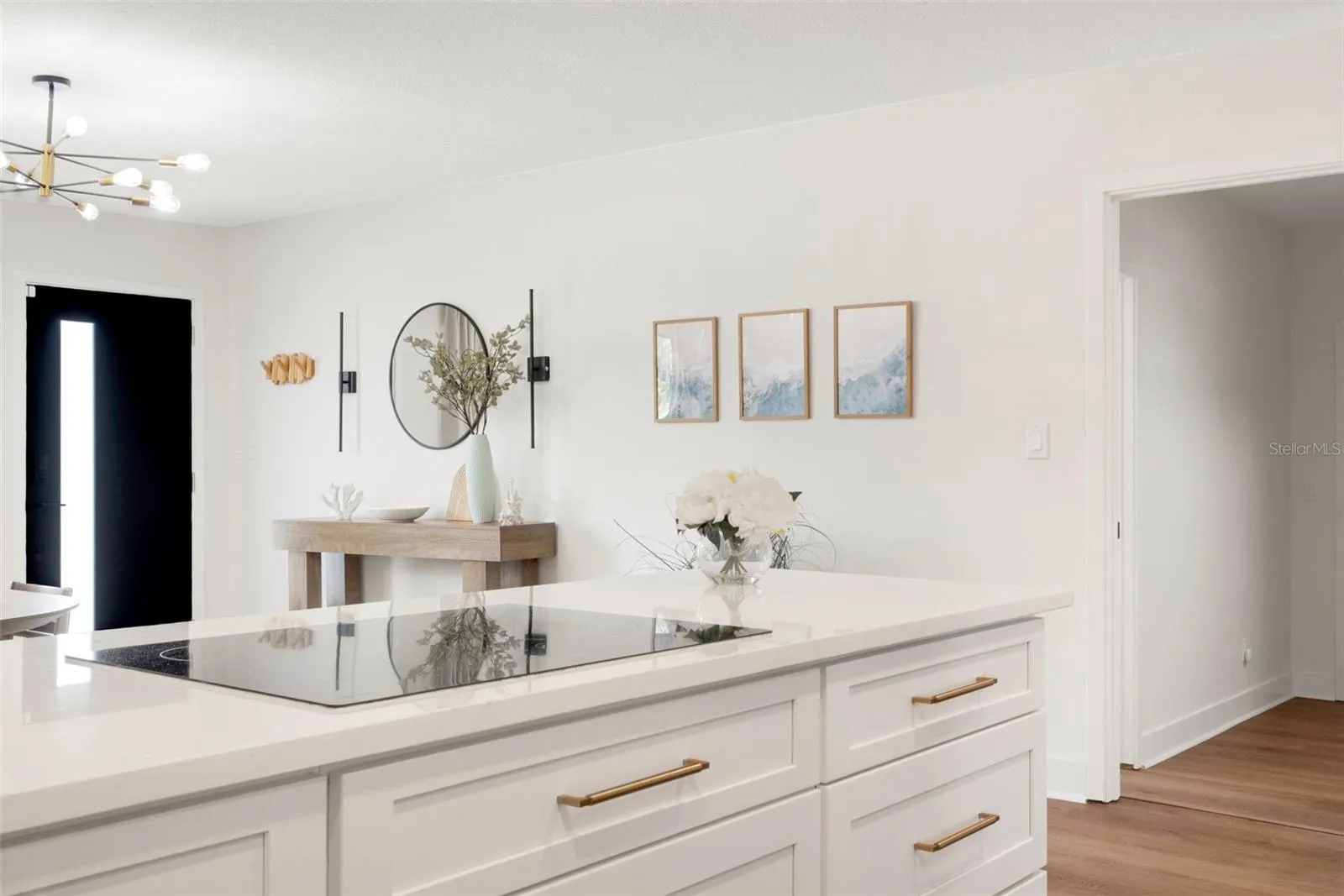 Escape to your island oasis on Coquina Key, where laid-back living meets the vibrant heart of St. Petersburg. This meticulously maintained 4-bedroom, 2-bath home has been recently remodeled to perfection. The stunning chef’s kitchen features quartz countertops, double ovens, a beautiful backsplash, and high-end fixtures, along with ample storage and a dedicated coffee bar area complete with a beverage cooler. The oversized primary bedroom boasts a built-in fireplace and generous closet space, while the large laundry room and beautifully appointed bathrooms provide both convenience and luxury. Enjoy spacious living areas that overlook a tranquil landscaped backyard, fully fenced for privacy and backing up to an incredible park. Here, you’ll find tennis and pickleball courts, basketball courts, two soccer fields, two dog parks, and a scenic waterfront walking trail. Notable upgrades include a new A/C (2021), roof (2019), water softener (2023), and water heater (2025), making this home as reliable as it is beautiful. Outside, an eco-friendly circular driveway welcomes you with gorgeous landscaping, setting the tone for the serene surroundings. Just three miles from downtown St. Pete, venture over the charming bridge to discover two cozy coffee shops, excellent restaurants, and a new local hotspot where you can connect with island residents—there’s even a sandwich named after the island! Plus, a 24-hour convenience store is nearby for those late-night cravings. Coquina Key Island, known as the friendly island, lives up to its name with a true sense of community. Neighbors wave hello as they stroll by or cruise past in golf carts, and residents gather for planned events like movies in the park and the beloved annual Christmas parade. All of this, with easy access to some of the most beautiful beaches in the area