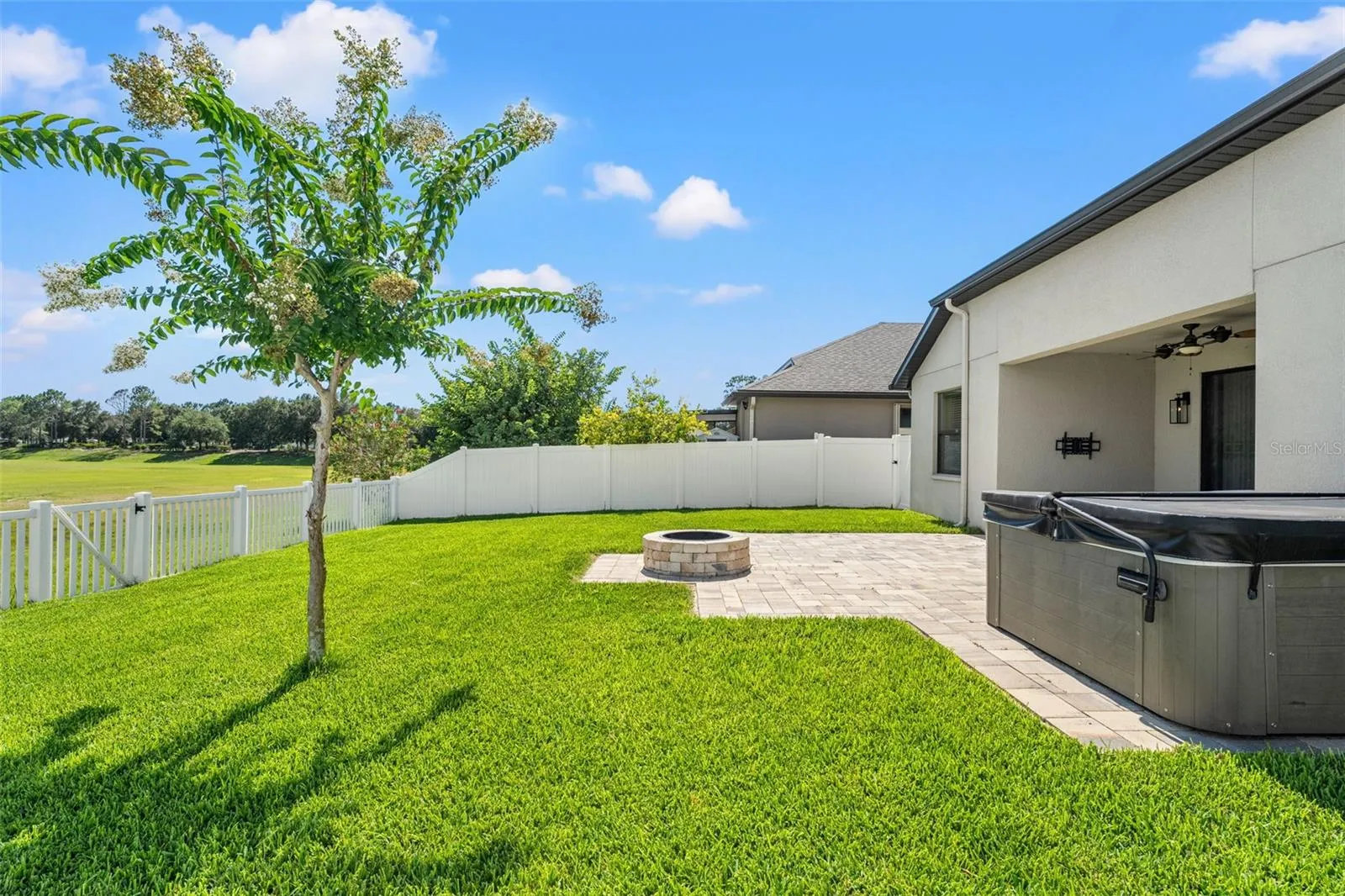 Welcome to this beautifully maintained 4 bedroom, 2 bathroom home with a 2 car garage, perfectly situated in a peaceful neighborhood overlooking a tranquil retention pond. As you enter the home, you’ll find two guest bedrooms and a full guest bathroom located at the front, offering privacy and convenience for family or visitors. A third guest bedroom includes a built-in desk and closet, making it a great option for a home office or flex space. The home features wood-look tile throughout, creating a clean and cohesive flow with carpet in the bedrooms. The open floor plan is perfect for both everyday living and entertaining, with a spacious living area that seamlessly connects to the kitchen and dining space. The kitchen is equipped with granite countertops, stainless steel appliances, a pantry, an eat-in space, and wrap-around counter space that offers plenty of room for meal prep and gatherings. The primary bedroom is tucked away for added privacy and features dual closets along with a large walk-in closet complete with custom shelving. The en-suite bathroom includes dual sinks, and a walk-in shower. Step outside to a fully fenced in backyard where you can relax and enjoy unobstructed views of a retention pond and no rear neighbors. The backyard is an outdoor retreat, complete with a paved patio, built-in fire pit, and a six-person hot tub, making it the perfect space for year-round enjoyment. This home is move-in ready and located close to parks, shopping, dining, and major roadways, offering both comfort and convenience in one beautiful package. The whole house has hurricane shutters as well. With a low HOA and no CDD. You have access to community pool, fitness center, play-ground, clubhouse, and community mailbox. Don’t miss the opportunity to make this stunning property your new home.