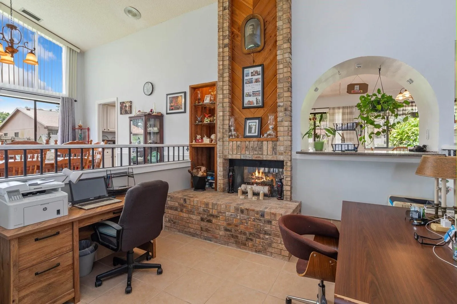 Enjoy a warm, inviting layout with a gorgeous wood-burning pass-through fireplace connecting the den and kitchen, a private upstairs primary suite with its own balcony, and a beautifully updated deck perfect for relaxing or entertaining. A wet bar off the breakfast area and den adds a stylish and functional space for hosting. Large picture windows throughout maximize natural light and create a bright, welcoming atmosphere.