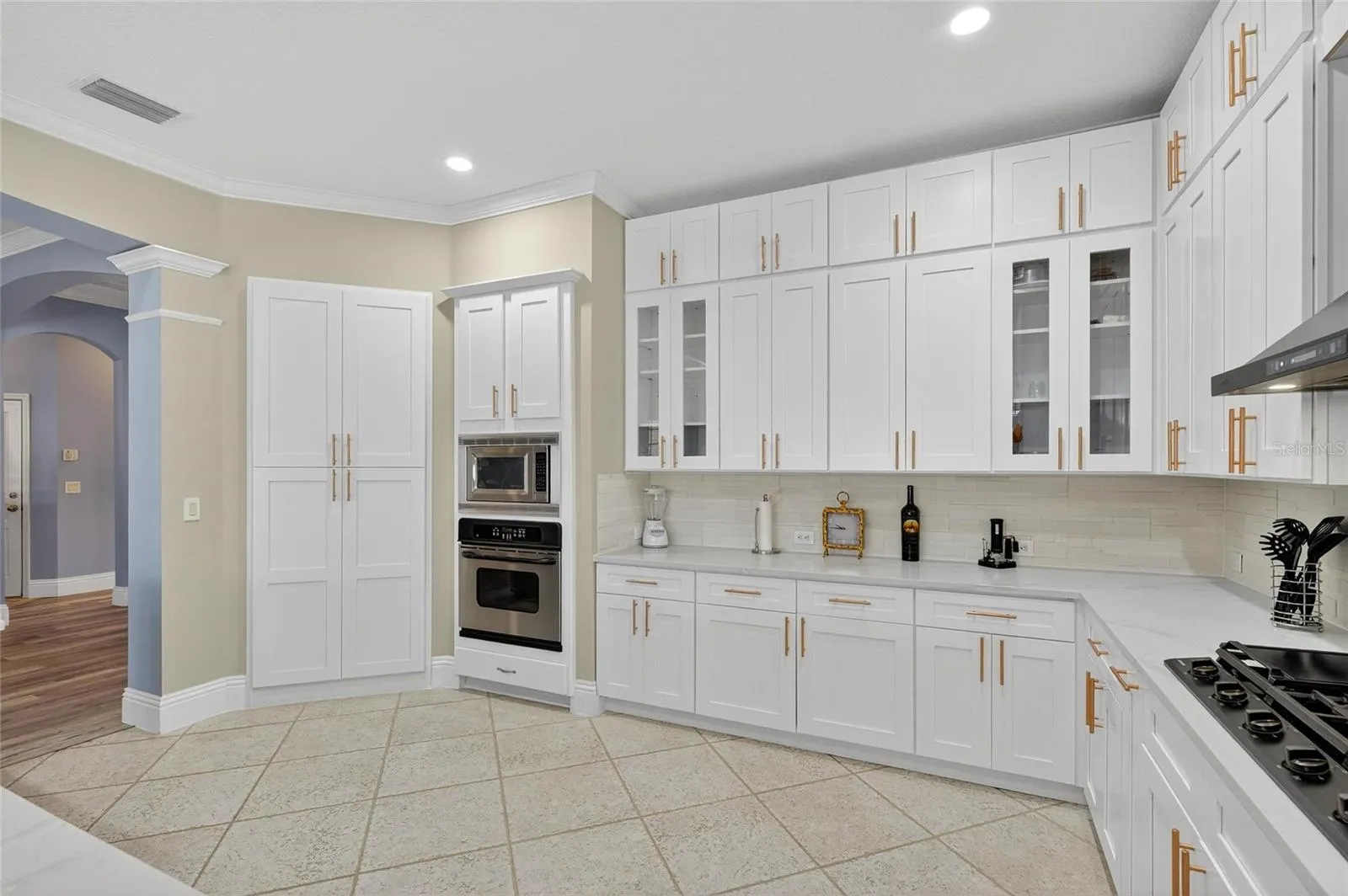 Inside, the remodeled kitchen is a chef’s dream featuring shaker-style soft-close cabinets, quartz countertops, a 6-burner Samsung flat-top gas cooktop, and 1.5 Samsung Bespoke refrigerators for ample storage and style. The home has been thoughtfully updated with luxury vinyl flooring throughout (no carpet!) and tile in all wet areas for durability and elegance.