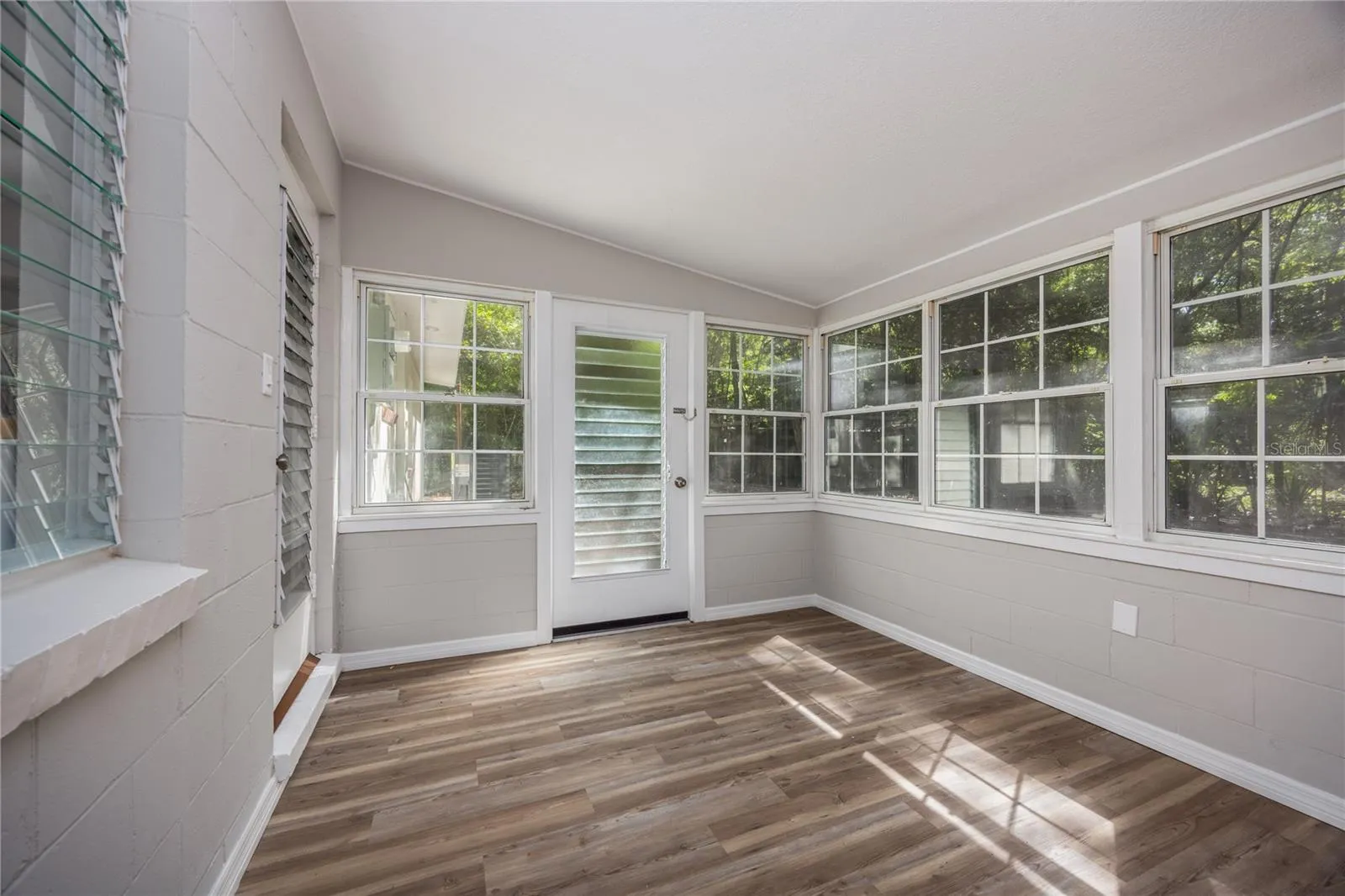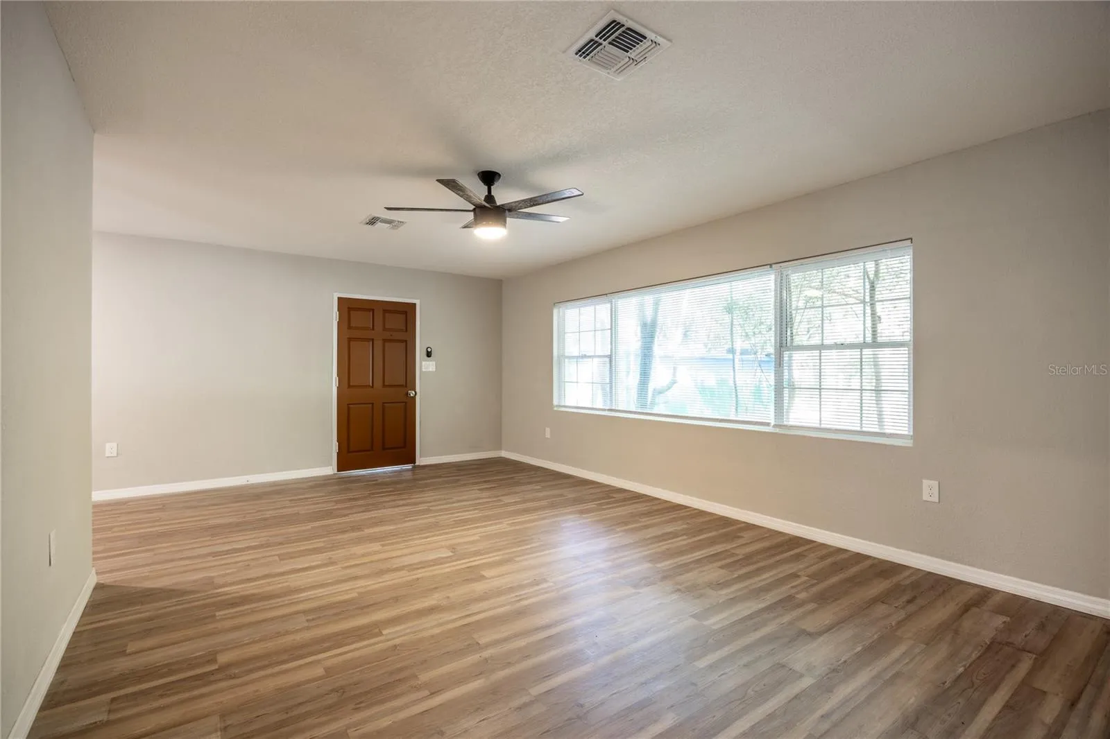 This updated concrete block home sits under a canopy of mature trees, offering modern style in a peaceful setting. Features include an open-concept living area with luxury vinyl flooring, fresh neutral paint, and abundant natural light. The sleek kitchen boasts white shaker cabinets, butcher block counters, subway tile backsplash, and brand-new stainless steel appliances. Both bathrooms are tastefully updated, and all bedrooms are generously sized. Enjoy a private wooded lot, fresh exterior paint, and a covered carport that doubles as a shaded patio. Conveniently located yet tucked away for privacy. Move-in ready!