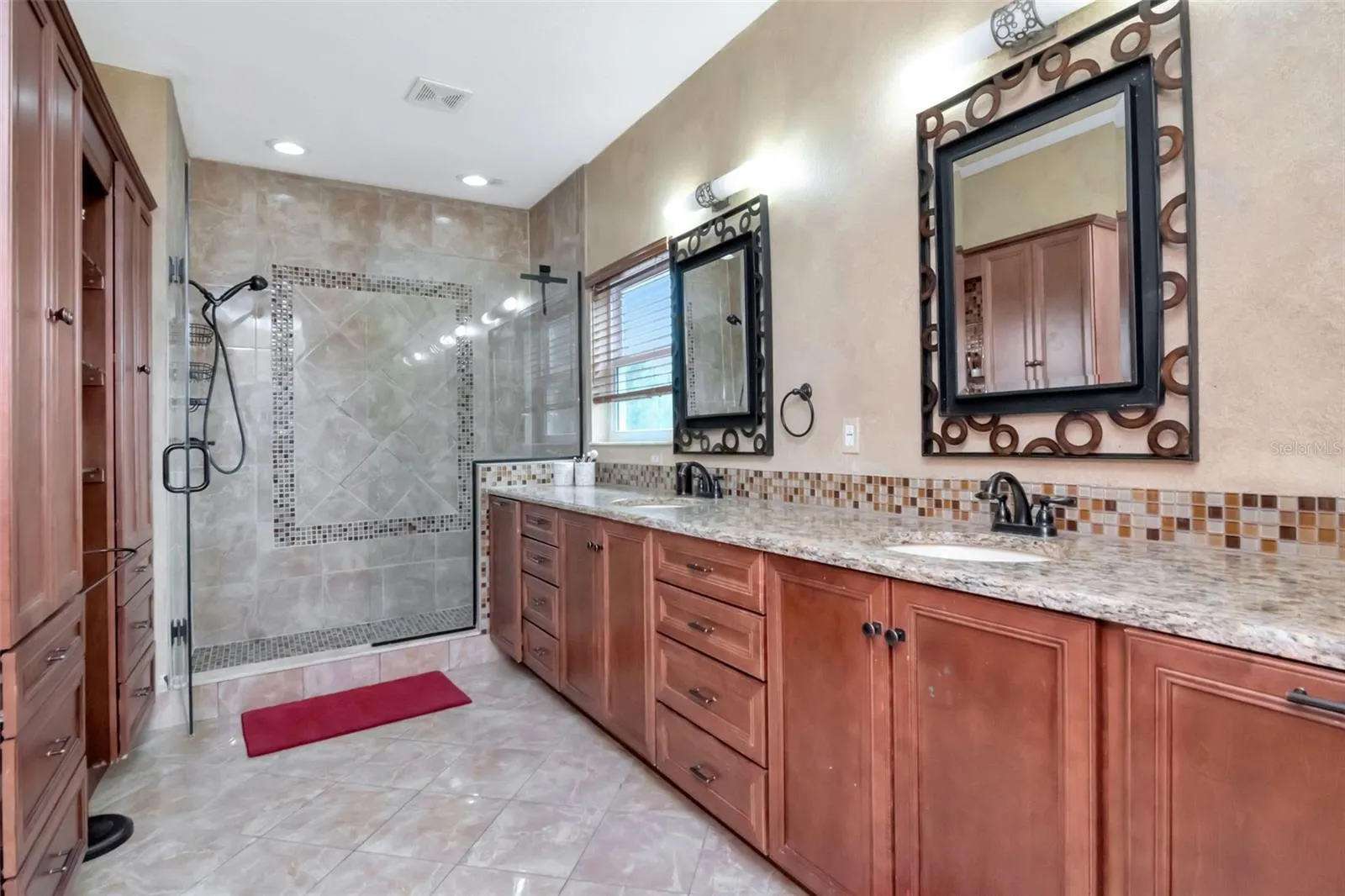 Beautiful and spacious cul-de-sac home on an oversized premium lot with serene pond and conservation views. This property offers extensive upgrades inside and out. The backyard is ideal for entertaining with a custom outdoor kitchen featuring a grill, warming drawer, large burner, refrigerator, and ice maker. Enjoy the screened lanai with pavers, a/c-cooled storage, and a dedicated pool bath.