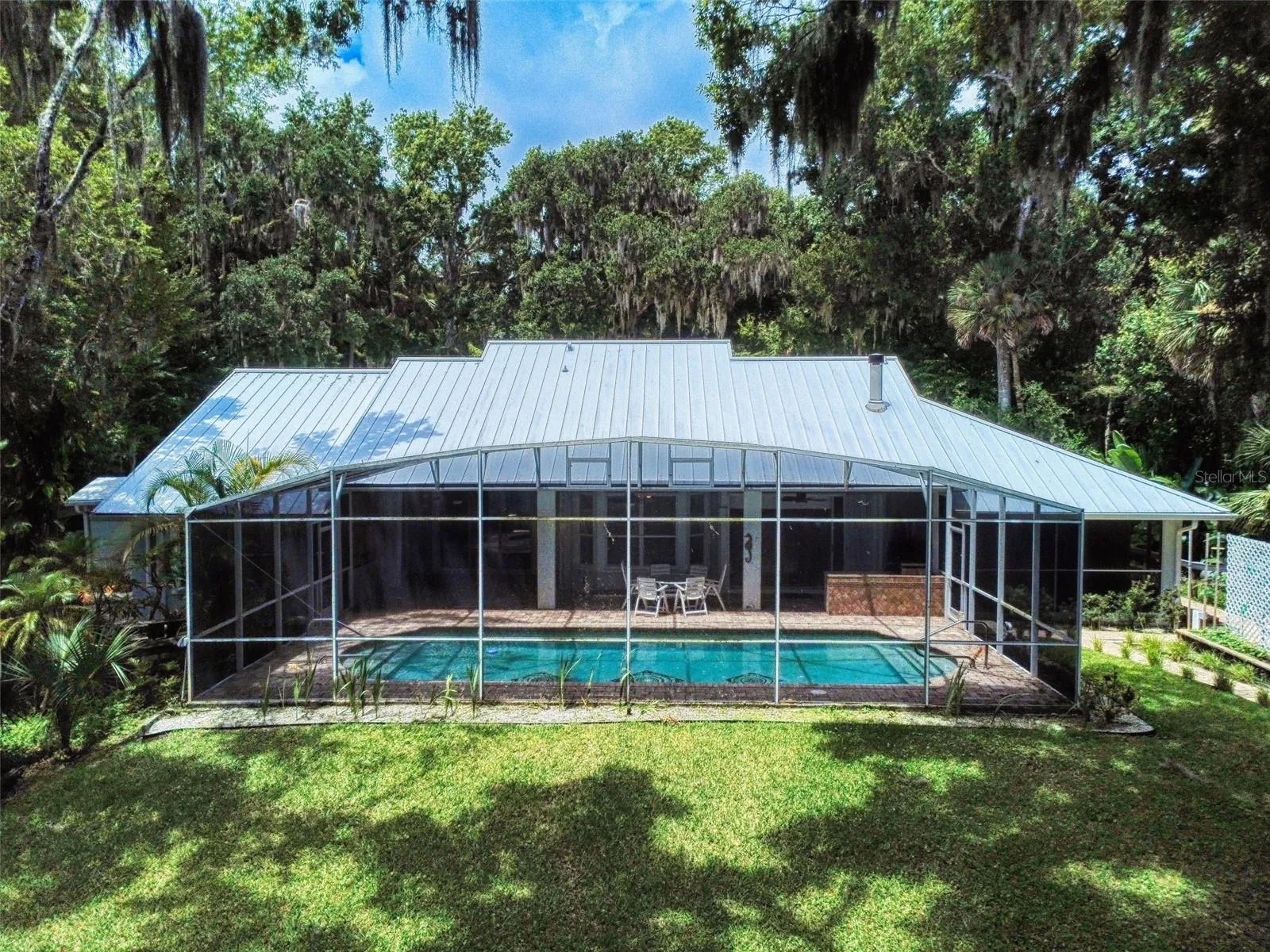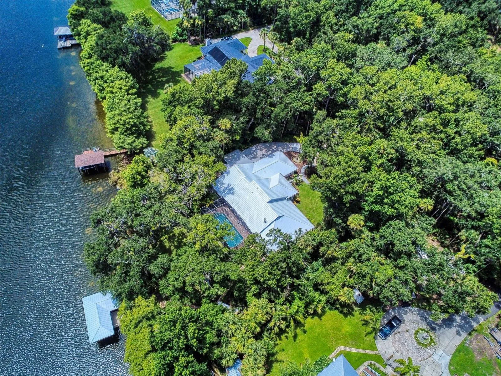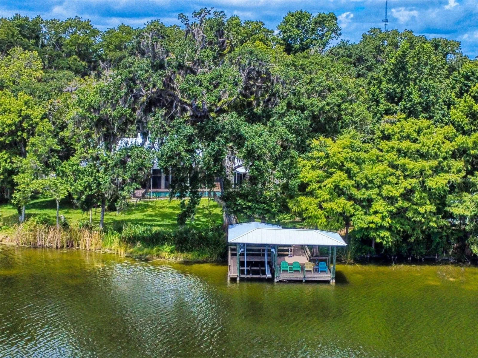 Just beyond the pool is a pavered walkway that will lead you down to the boat-house and dock. This durable dock, made of WEARDECK material, is equipped with electricity, water and newer boat lift. What better way to end the day than with a relaxing boat ride or simply sitting on your own dock enjoying the beauty of nature in this breathtaking setting. Other outstanding features of this exquisite home: indoor laundry room with full bath, oversized 3-car garage, whole home diesel-powered generator, outdoor storage sheds, circular driveway, central vacuum system, custom stained-glass lighting and doors, high ceilings and plantation shutters. NEW METAL ROOF 2024. Air Conditioners, Refrigerator and Hot Water Heater new in 2024. The Lake Waterford Estates community amenities include a clubhouse, tennis courts and boat ramp. This sprawling, exquisite home offers the best of Florida living. This property is conveniently located less than 10 miles to the sandy beaches of New Smyrna and about an hour to the Orlando airport. Call today to schedule an appointment to see this truly spectacular and unique home.