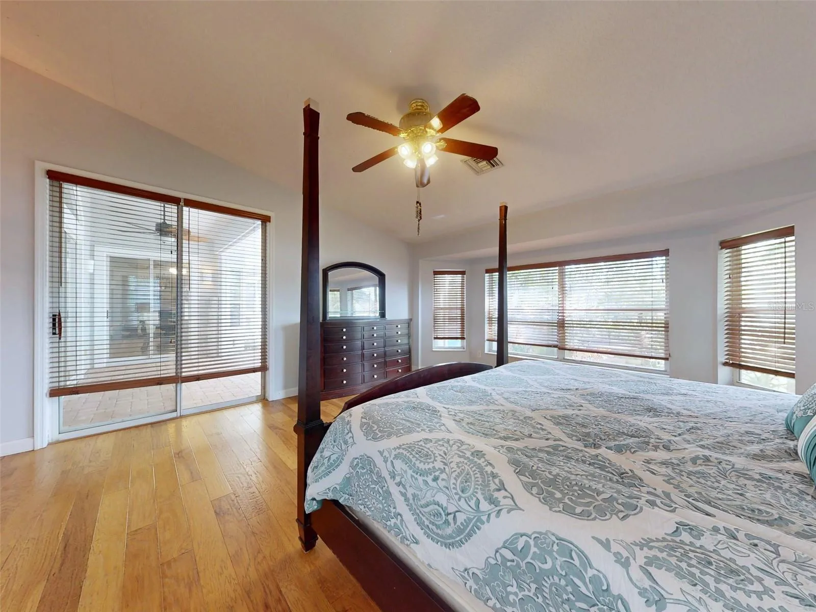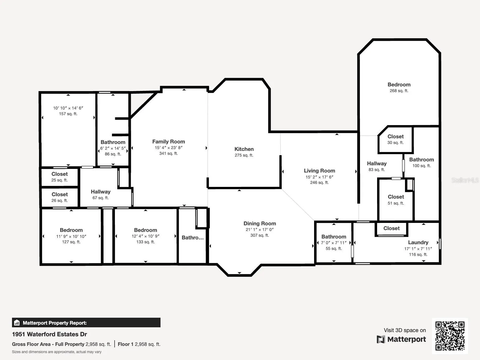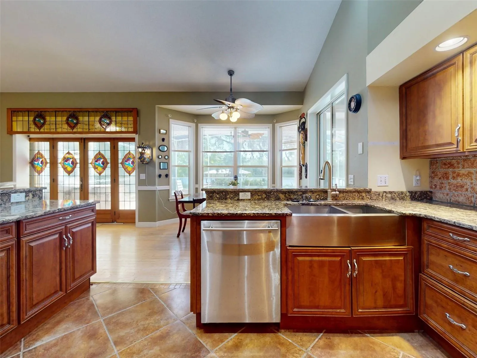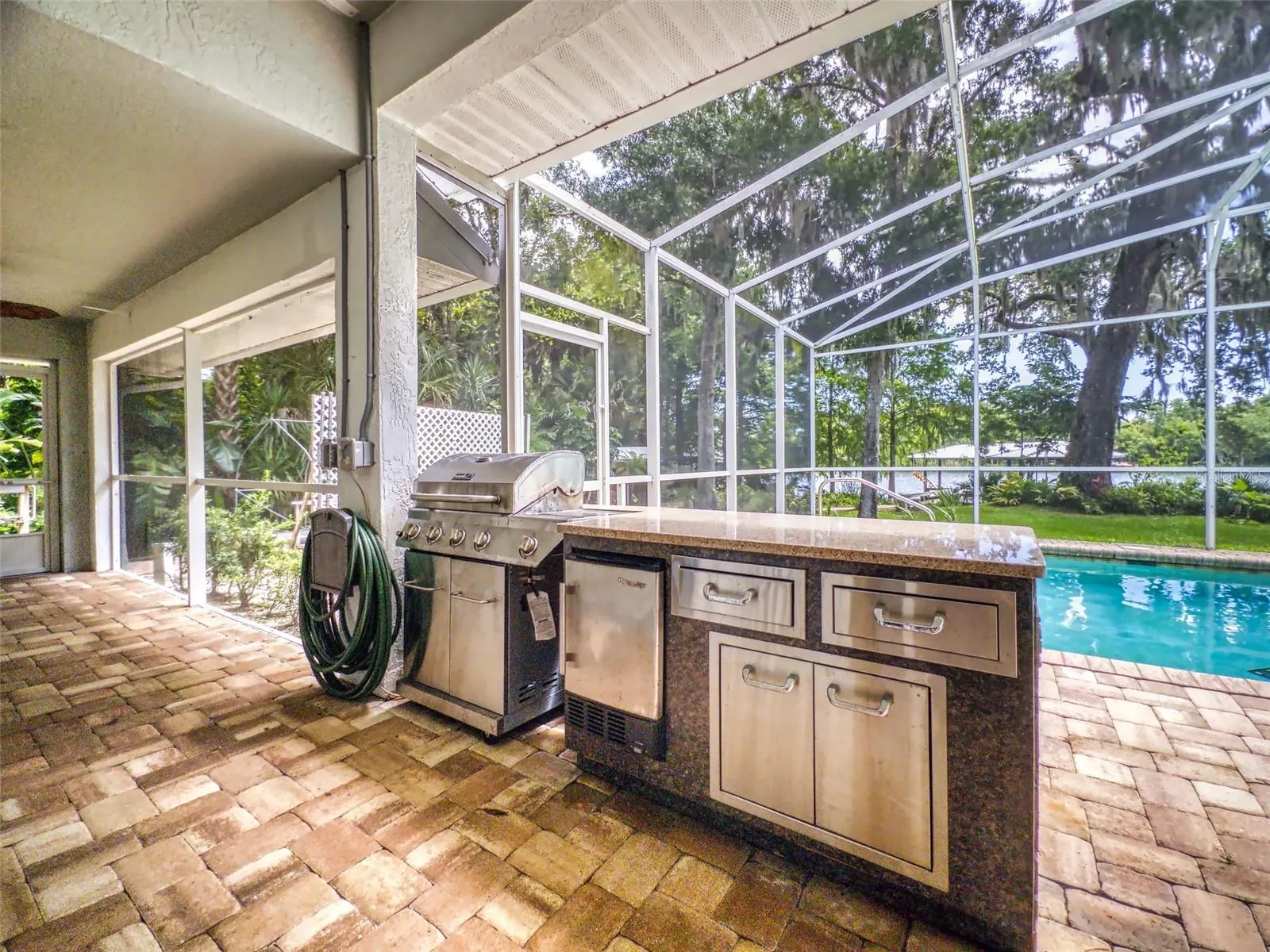 Beautiful 4 bedroom, 3 and a half bath, lakefront, pool home located in the highly desired gated community of Lake Waterford Estates in New Smyrna Beach. Lake Waterford is a 75 acre, spring fed lake perfect for boating, skiing, fishing and a number of other water sports. This spacious home sits on a 1.75 acre lot which is lush with a variety of mature trees, fruit trees and beautiful flora. Enter this home through the welcoming foyer where the eye is immediately drawn to the serene view of the tranquil lake in your own backyard. This home was designed for entertaining with a distinguished formal dining room and formal living room. The large primary bedroom, with expansive windows, letting in the beautiful views and two individual walk-in closets, will be a welcomed retreat at the end of the day. The ensuite bath comes equipped with double sinks, separate shower and a jetted garden tub. The 3 spacious guestrooms, each with ample closet space and natural light streaming through the windows, are comfortable and inviting. The hub of this amazing home is the open-concept, family room, dining nook and kitchen. This kitchen is a chef’s dream with granite counter tops, stainless-steel appliances, gas stove and plenty of storage space. The kitchen opens to a dining nook and family room. As you enter the family room you are drawn to the massive natural stone fireplace. Exit the family room through custom, stained-glass french doors to your sparkling, screened-in pool and classic pavered patio deck. Sit and enjoy your morning coffee as you take in the beauty of life on the lake.
