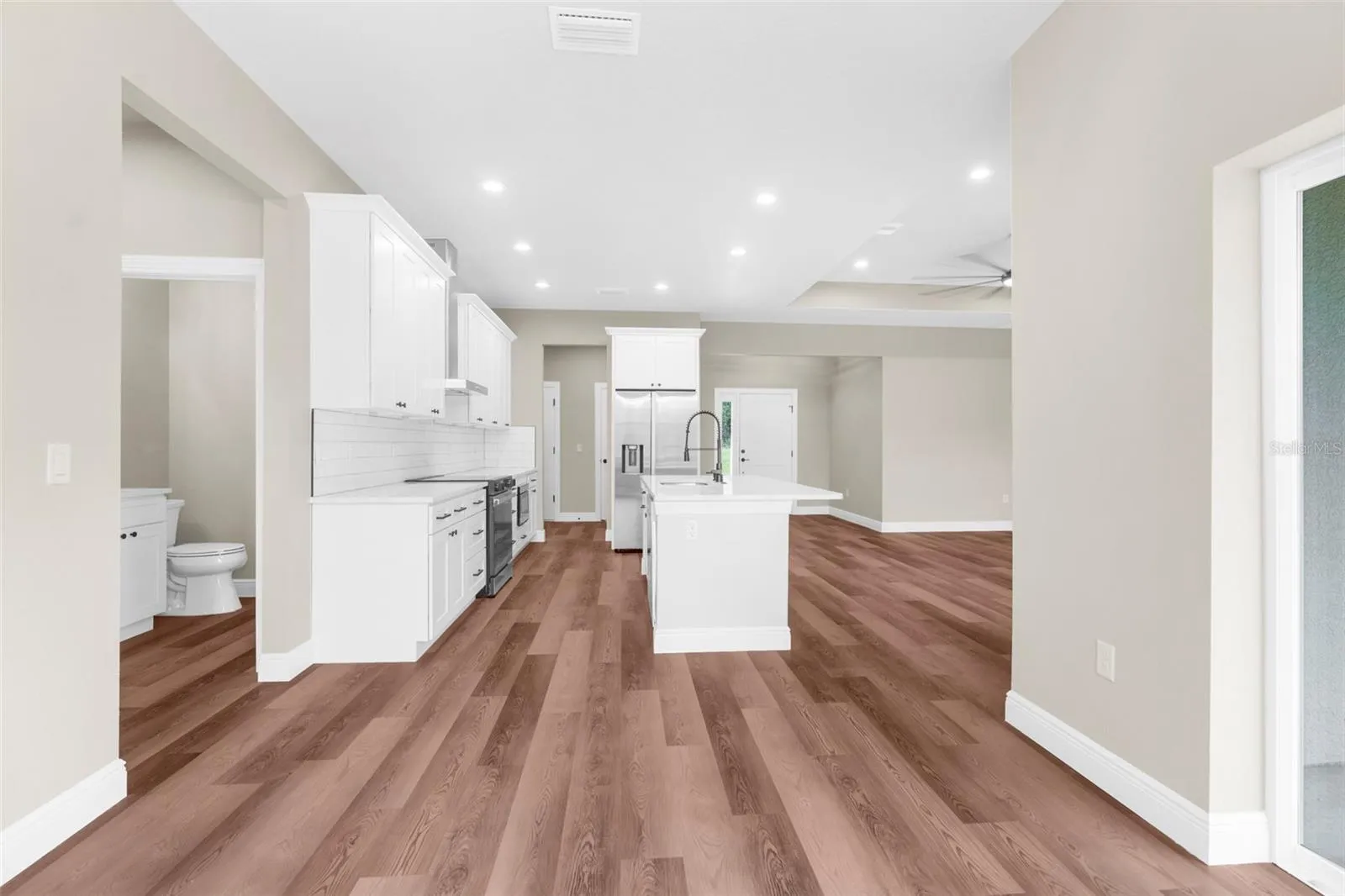 STUNNING, MOVE-IN READY…BRAND NEW HOME!!! Craftsman-style Luxury Home in the beautiful Royal Highlands on almost a 1/2 acre lot with NO REAR NEIGHBORS!! 4 bed + 2 full baths + guest half bath + 2 car garage + the Builder’s Signature Mudroom and Laundry Room (WOW) + SPA-LIKE master ensuite bathroom (WOW) + covered front porch + covered back lanai + landscaped + sprinkler system + 2,131 sq ft living space; 2,839 total + Builder’s 2-10 Warranty + PAVED ROAD + NO HOA + NO FLOOD!! Trees left on the rear of the property for privacy, so no rear neighbors to look at and to look at you!!!! **** This mudroom, laundry room, and pantry area…is the “drop center” for the home and is a must see!! **** Relax and enjoy your coffee in the mornings on your inviting front porch! Large covered back porch for grilling out and enjoying your backyard!! This is a block home…but it doesn’t stop there…the builder added board and batten on the front exterior of the home with stacked stone accents…this all adds to its craftsman-style appeal!! This is NOT your standard basic tract home/builder – this builder pays attention to every detail and everything is upgraded!! The entryway & front door welcomes you and your guests into the grand center of the home with a large open great room, island-style kitchen and dining room all with 10′ tray ceilings! The high ceilings, large glass sliders and open floor plan makes this home feel spacious, light, bright, and cheery…where your family can gather; great for entertaining family and friends!! Designer faucets, lighting, and ceiling fans, upgraded baseboards, upgraded windows/sliders, Luxury Vinyl Plank flooring throughout the entire home (no carpet), designer backsplash, stainless steel upgraded appliances (Refrigerator INCLUDED), and stainless steel range hood! The upgraded kitchen offers stunning QUARTZ countertops with the modern large, single-level island with breakfast bar big enough for the whole family! Real wood upgraded 42” soft-close cabinets with a stunning backsplash for that finished luxury look and feel. New stainless steel appliances! LARGE WALK-IN PANTRY! The home has a split floor plan offering privacy to the owner’s suite with a large ensuite bathroom! The ensuite bathroom is a SPA RETREAT in itself with a large stand-alone, modern soaking tub, separate over-sized, floor-to-ceiling tiled walk-in shower and designer shower head and frameless glass door, granite vanity with dual sinks, matching real wood upgraded cabinets with extra storage cabinetry, framed mirrors, designer faucets and lighting, and a separate toilet room for privacy! There is a half bath off the great room for your guests! This is no ordinary second bathroom!! This has dual granite VANITIES and dual sinks…and the toilet and shower are separate, so family members can still use the vanity area while another is showering. GREAT DESIGN! Multi-zoned sprinkler system & landscaping! NEW well and septic! Zoned for the county’s newest schools…Winding Waters K-8 and Weeki Wachee High School! Built by LDT CONSTRUCTION. Other spec homes available; call for details. Minutes from shopping, restaurants, movies, schools, Buccaneer Bay Water Park, kayaking the crystal clear Weeki Wachee River, sunsets at Pine Island, boating, fishing, swimming w/the manatees. 1 hr to Tampa & TOP US BEACHES!