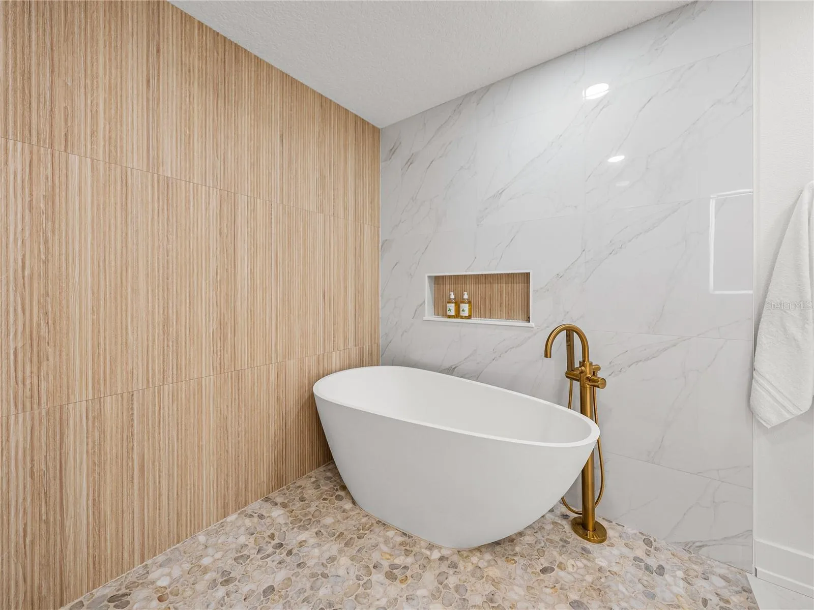 The main primary suite is a dream! With an ample size bedroom, wonderful natural light, a walk-in closet and the most incredible en-suite bathroom. The bathroom feels like a spa and gives you a sense of zen relaxation. Clad in designer tile, the vision has been thought out from top to bottom, with a floating vanity with quartz counters, an oversized wet room style shower and a bespoke free standing tub that fits the space perfectly.