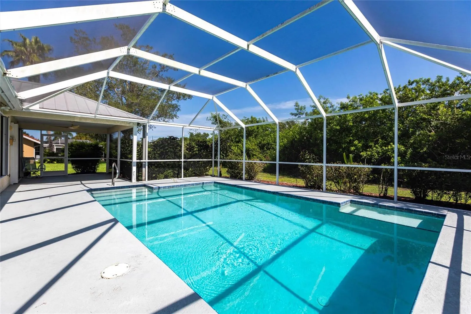 Step outside to your extended lanai and sparkling blue pool, perfectly framed by a lush, tropical greenbelt—no rear neighbors in sight! It’s the perfect spot to enjoy your morning coffee while listening to the serene sounds of Florida’s native birds.