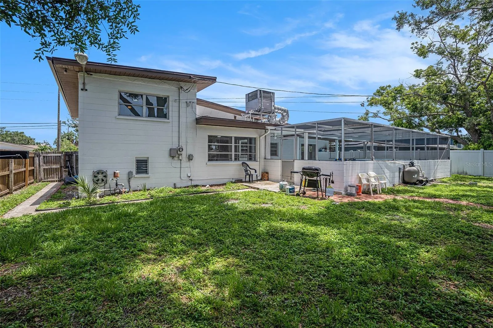 Fantastic 1700+ sq/ft, 4 bed, 2 bath, pool home in Seminole with new roof, updated plumbing, and A/C!!! The spacious main living area of this home features a large open living area with high ceilings, lots of windows, and refinished terrazzo floors, a large living room, a dining room, a sunroom/office, and a nice kitchen that has been updated with fresh paint, countertops, and a tile backsplash. The split bed floor plan features two beds and a full bath on one side and two more beds (including the primary suite with sliders out to the screened in pool area), and a bath on the other side. Outside this home features a refininshed pool with screened in lanai a large fenced in backyard, an attached garage, and a large driveway with plenty of parking. This is a great home in a great community!!!