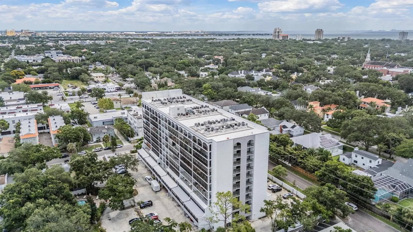 One or more photo(s) has been virtually staged. Opportunity awaits in this 9th-floor condo with sweeping views of South Tampa’s majestic oaks and Bayshore skyline. This spacious 2-bedroom, 2-bath unit offers 1,248 sq ft of potential, featuring a desirable open living and dining layout with a split-bedroom floorplan for added privacy. The unit is ready for your personal touches—update it to match your style and make it your own. Enjoy the convenience of an in-unit washer and dryer, a walk-in closet in the primary suite, and one assigned covered parking space. The community amenities include a pool, outdoor grilling area, a fully equipped fitness center, event space, and 24-hour security guard. All of this in the heart of South Tampa just moments from Old Hyde Park Village, SoHo, and Bayshore Boulevard. Top Rated Mitchell Elementary, Wilson Middle and Plant High School.