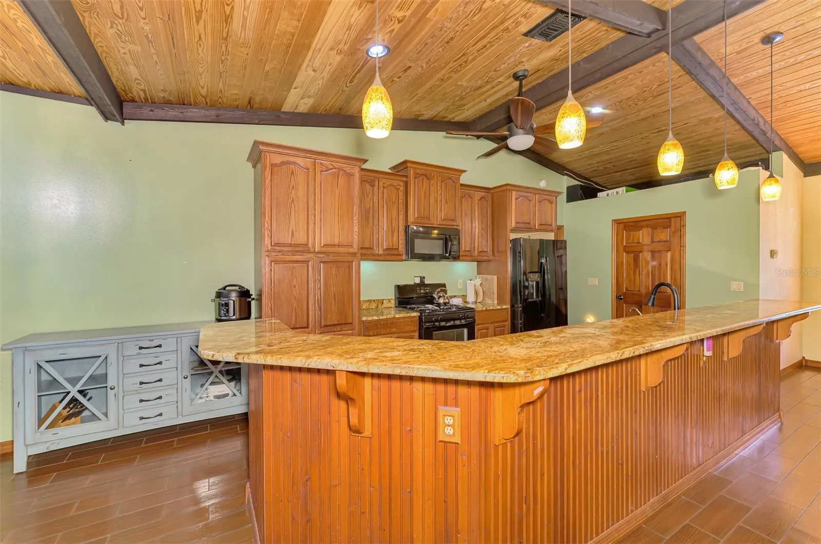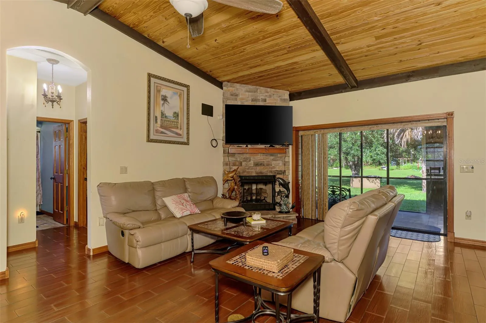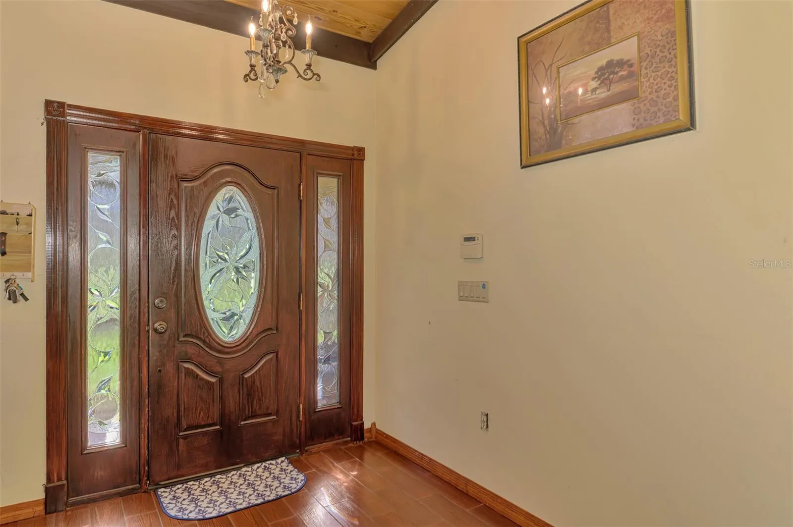 Custom-Built 3.2-Acre Estate with Pond, Tiny Home & Gorgeous Features Inside and Out! Looking for space, style, and plenty of extras? This 3-bedroom, 2-bath estate sits on 3 peaceful acres and is packed with features that make everyday living something to enjoy. From the moment you pull up to the screened front porch and pass through the lead glass entry door, you’ll notice how much care has gone into every detail of this home featuring over 2,000 sq.ft of living space! Step inside and look up — the custom wood cathedral ceiling with exposed beams sets a warm, rustic tone that’s hard to find anywhere else. A stone gas fireplace in the family room brings charm and comfort, while wood flooring and wood-look tile stretch through all living areas for a clean, stylish feel. The formal dining room offers space for gathering, while the open kitchen includes solid wood cabinets with crown molding, granite countertops, a large breakfast bar, and an eat-in nook that fills with natural light. The master bedroom is a peaceful retreat with tray ceilings, custom crown molding, wood floors, and a walk-in closet. The master bath is a standout with a jetted tub, a Roman tile shower, wood cabinets, and more granite countertops. Two additional bedrooms feature tray ceilings, ceiling fans, and built-in closets. Step outside through the triple sliders to your spacious screened lanai, complete with a ceiling fan for comfort on warm days. Want to enjoy the outdoors even more? You’ll love the finishing pond, 16×12 tiny home that’s perfect for guests, large wire chicken coops, and 2 RV pads (one with power and water). The professionally landscaped yard includes fruit trees and a raised garden bed, ready for your green thumb. Other features include spray foam insulation throughout the attic, plant shelves, and a location that’s close to schools, shopping, and dining. Minutes to I-75 entrance, and only a short drive to Sarasota and Fort Myers! Call now to schedule your private tour — this one won’t last!
