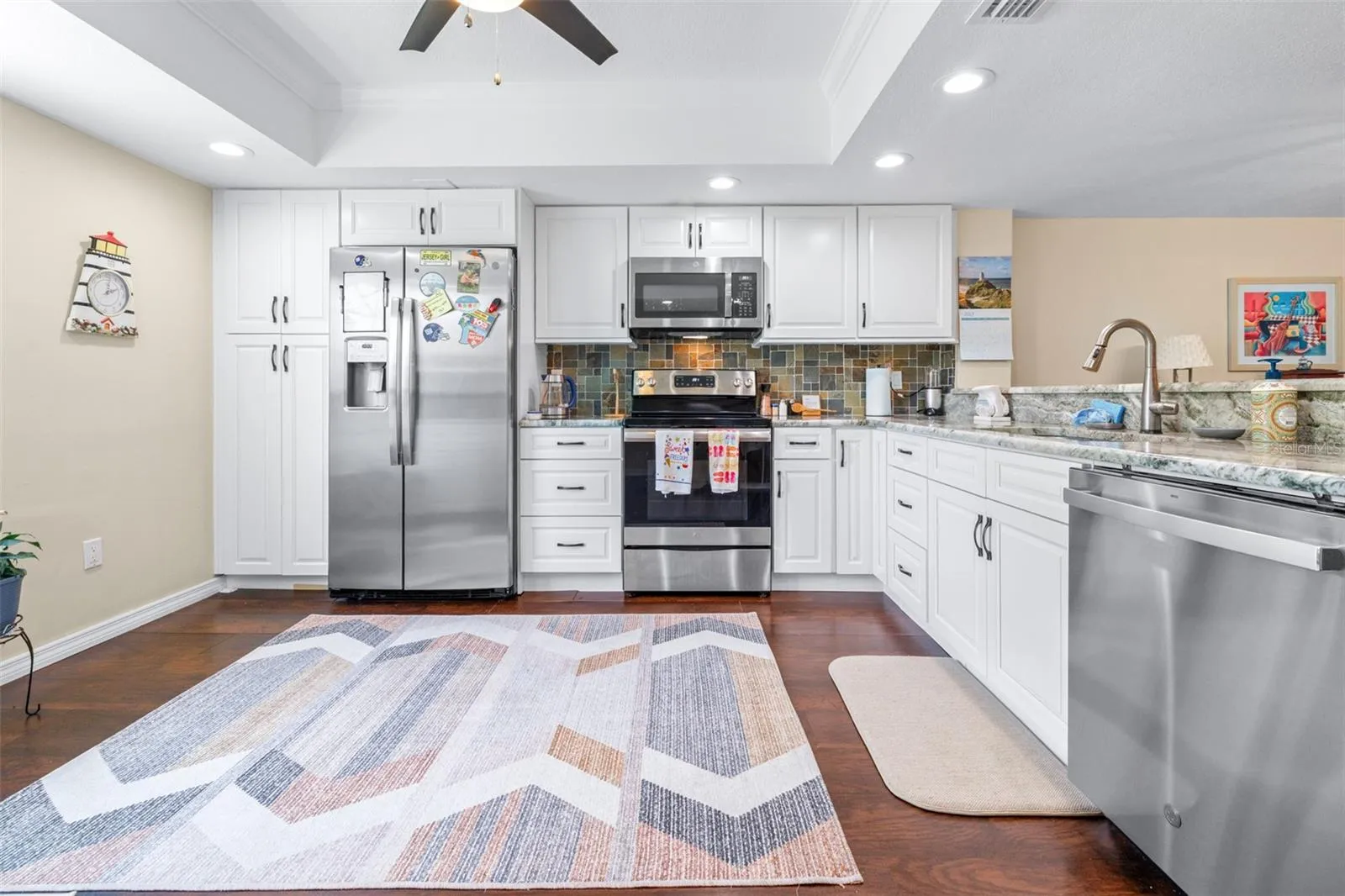 Welcome to 751 Pinellas Bayway S #208. A radiant townhome nestled in the heart of Tierra Verde, where costal charm meets elegant comfort. This three-story Florida-style residence offers 2 spacious bathrooms and 2.5 baths across 1,600 square feet of thoughtfully designed living space. The main level greets you with an open-concept layout, featuring a recently updated kitchen adorned with white cabinetry and stainless-steel appliances. From the kitchen, your gaze flows effortlessly to the wood-burning fireplace, dining area, and living room, which opens onto the first of two extra-wide screened balconies overlooking the shimmering pool. The primary suite is a sanctuary of its own, complete with tall ceilings, dual closets, and a tiles sitting area with sliding glass doors. The en-suite bath boasts a generous walk-in shower, a garden tub, and dual sinks – perfect for unwinding after a day on the water. Below, a tandem garage offers ample space for vehicles, storage, or even a workshop. Upstairs, the laundry room is conveniently located near both bedrooms, adding a layer of everyday ease. Just steps from the Intercoastal Waterway, this home is a boater’s dream. Enjoy fishing from the dock, lounging by the pool, or exploring nearby Fort DeSoto Park with its nature trails, kayaking spots, and dog-friendly beach. With easy access to I-275 and downtown St. Petersburg, you’re never far from vibrant dining, arts, and entertainment. This townhome isn’t just a place to live – it’s a lifestyle. *Recent Upgrades* Tankless Hot Water Heater (2024), Hurricane Sliding Door on Main Floor (2025), Hurricane Windows on Main Floor (2025), New Sliding Door in Primary Bedroom (2025), Remodel Master Bathroom (2025), Re-Created Laundry Area (2025), Added a half bath and sink downstairs in “Bonus Room” (2025)