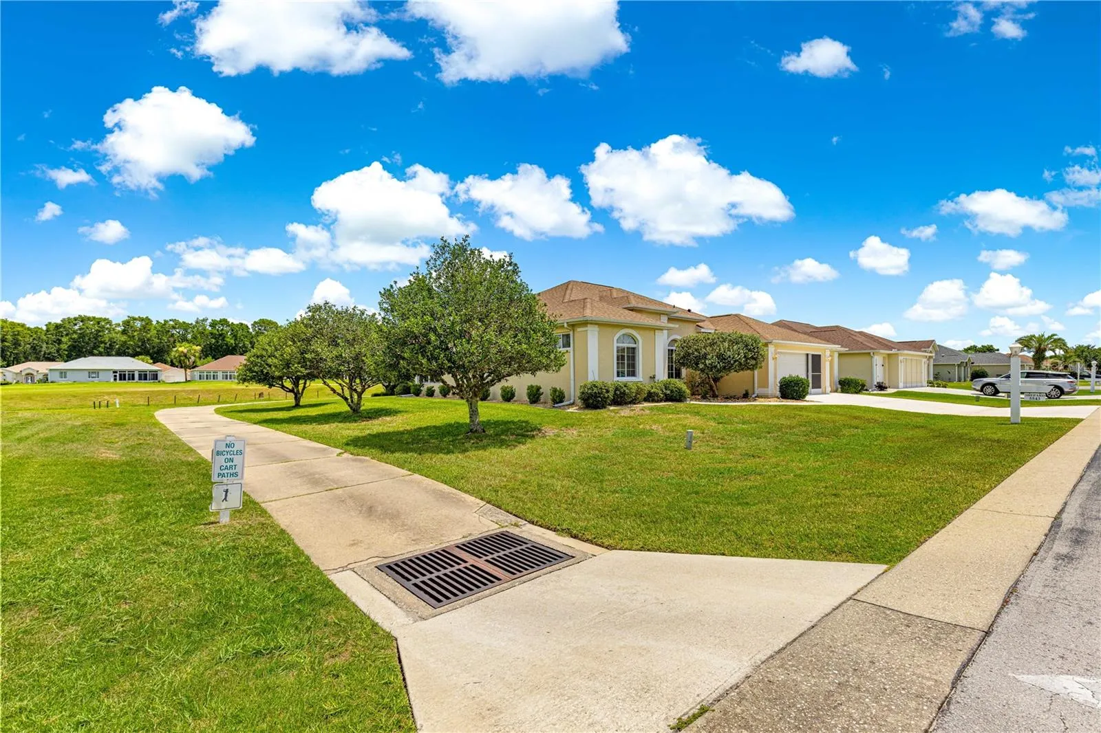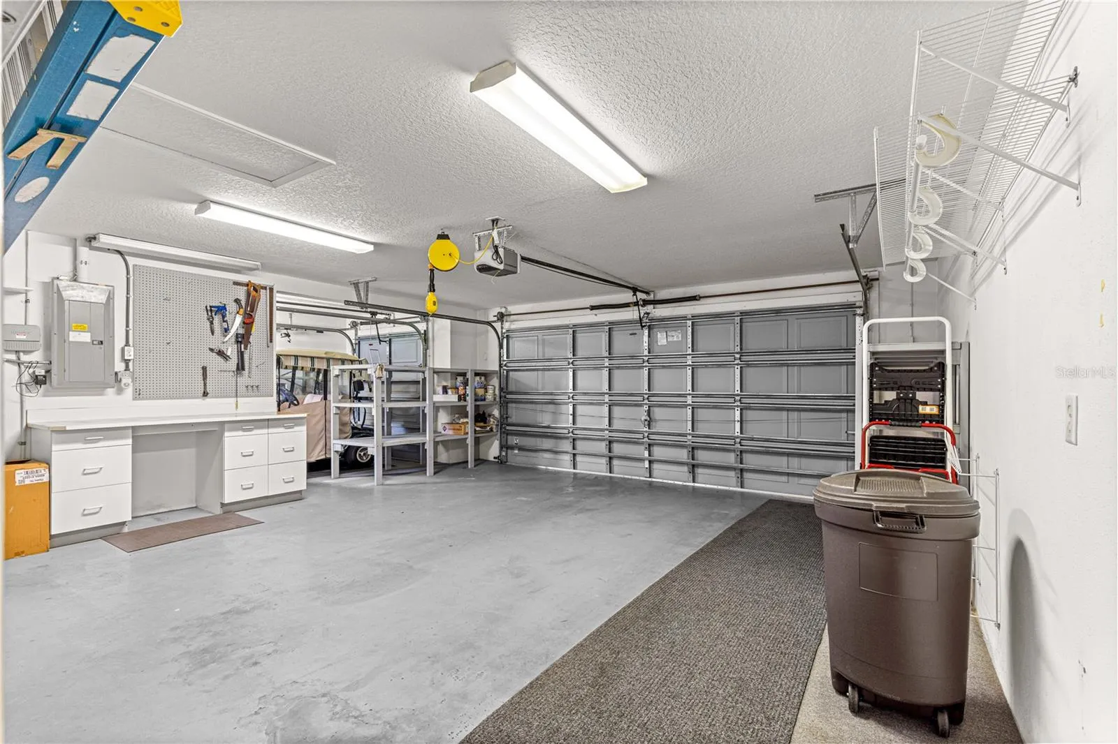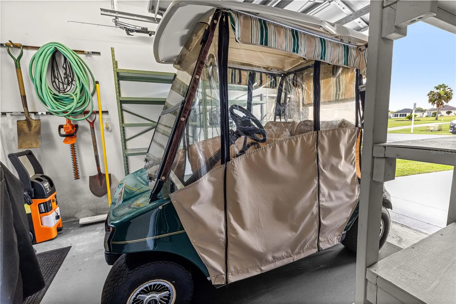 Countertops, Large Pantry, updated Lighting, and Dry Bar. Perfect place for entertaining guests. You will love retiring to the Master Bedroom in the evening, which features large Walk-in closet and a smaller walk-in closet. The Master Bath has been remodeled to feature a large door-less walk-in Shower and plenty of Cabinet space. A wonderful Lanai with Updated Acylic Windows and which opens into the Dining Room and Living Room. Overall, a perfect house for entertaining! Let’s not forget about the large Garage with Workbench and Golf Cart Garage complete with a