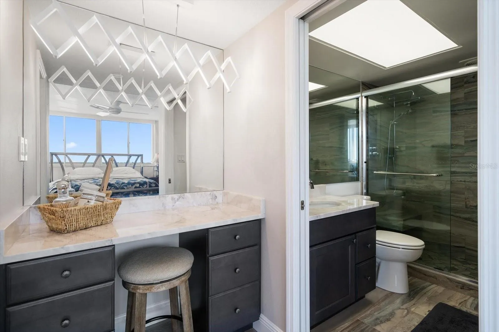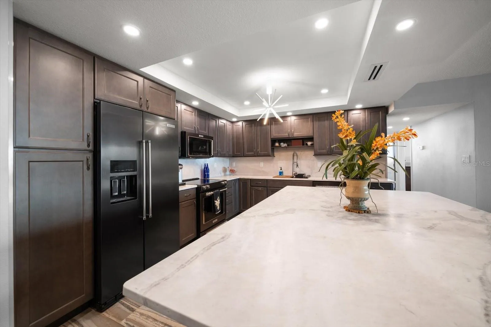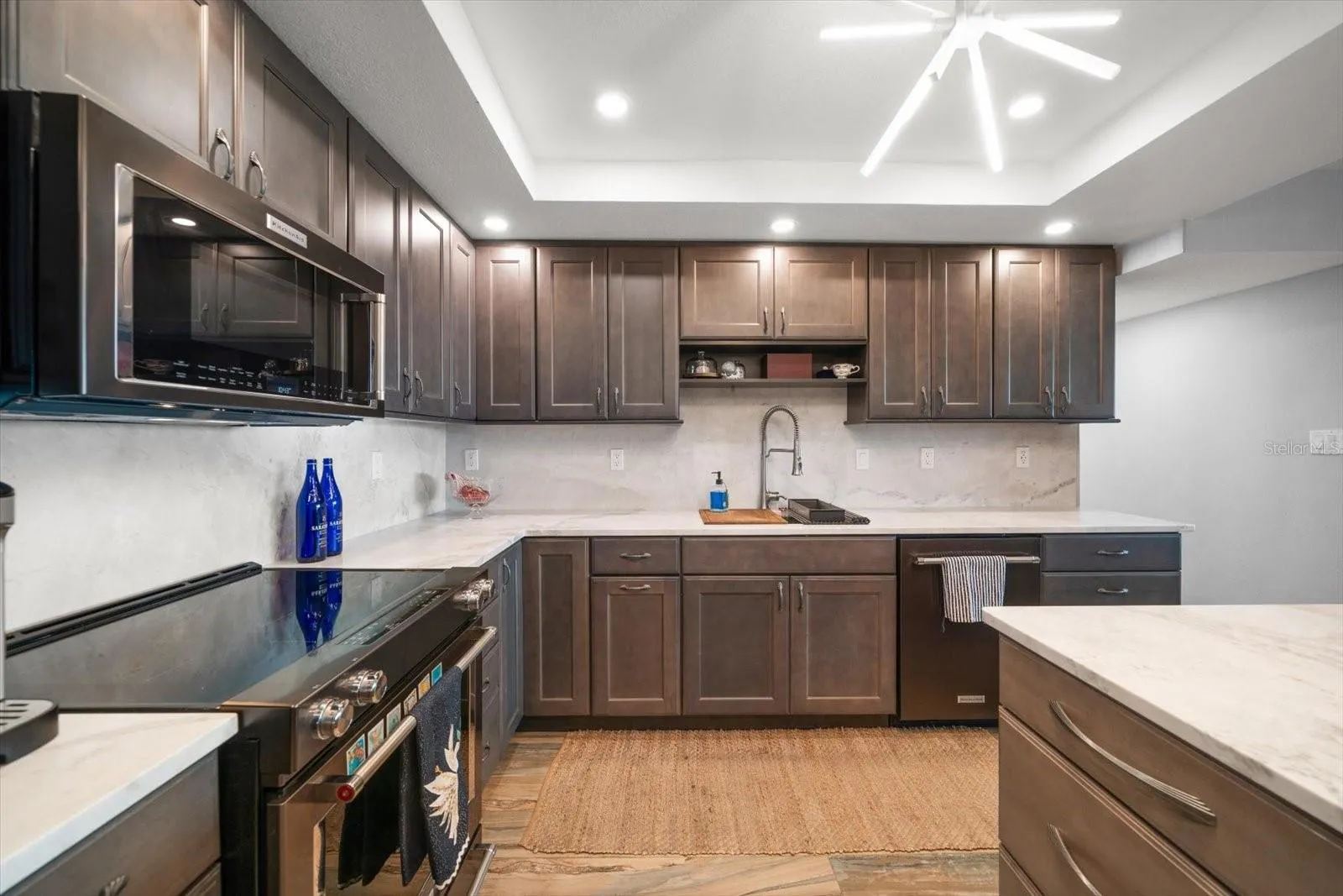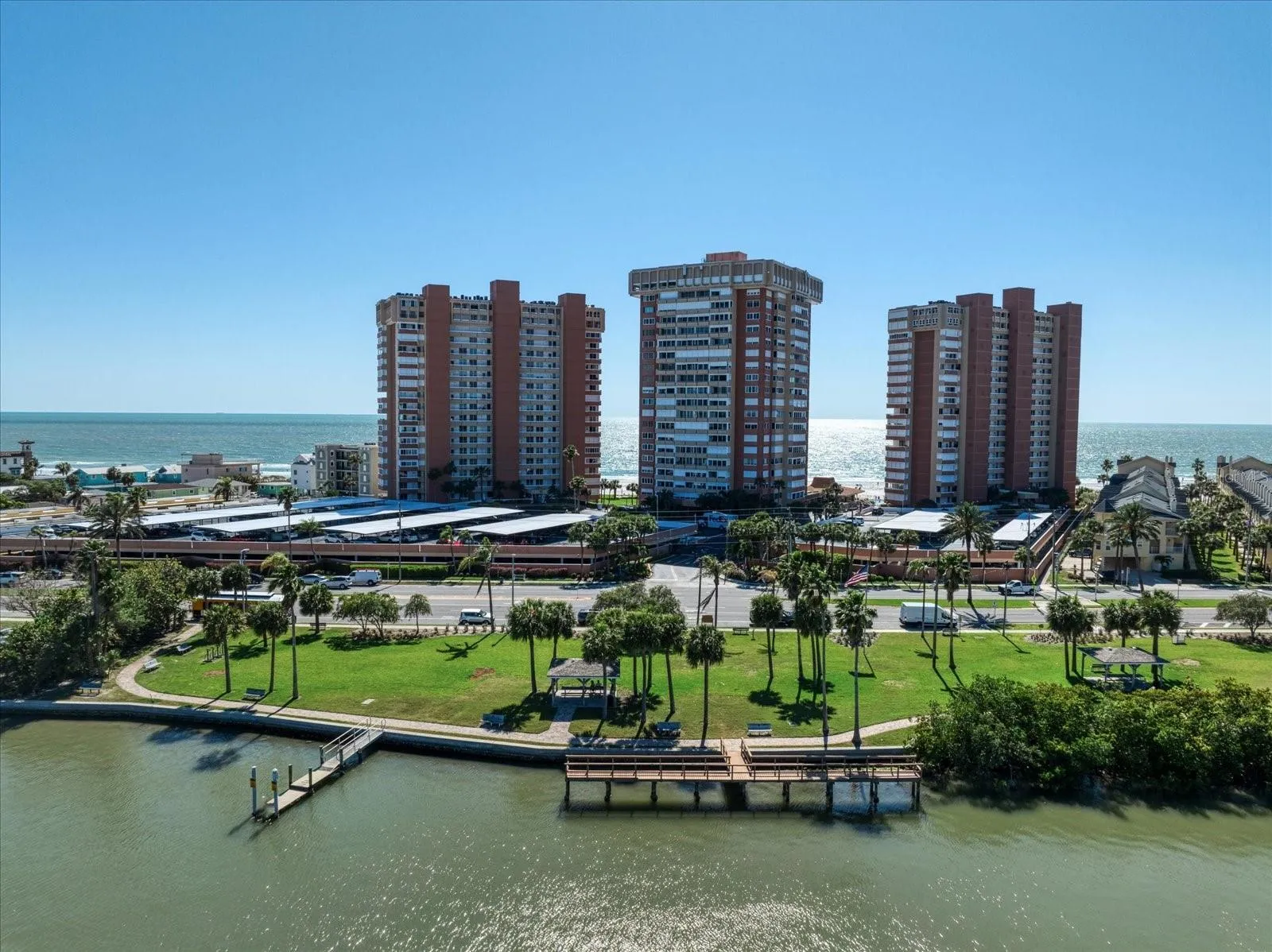 Marvel at the breathtaking vistas of the Intracoastal waterway, the skylines of St. Pete and Tampa, and glimpses of the Gulf! This meticulously updated 2 bedroom, 2 bathroom condo boasts new luxury plank and porcelain tile flooring, along with elegant 5″ baseboards. The open kitchen showcases exquisite honed Montecristo Quartzsite countertops, a huge island and bar seating, Kraftmaid custom cabinets, and translucent phantom grey Kitchen Aid appliances. The bathrooms exude luxury with polished marble finishes, glass-enclosed showers, and custom Robern mirror medicine cabinets. Recent upgrades include a brand new 50-gallon water heater and an approximately 5-year-old A/C unit. Situated within the prestigious Redington Towers community, residents enjoy access to a Gulf-front swimming pool, an on-site gym, and outdoor BBQ facilities. Covered and assigned parking complete with electric vehicle charging stations, provides convenience, while a storage closet and 24-hour security guard offer peace of mind. Delight in the proximity to numerous restaurants and shops, with the serene Del Bello Park just across Gulf Boulevard. For endless relaxation, the white sandy beach is mere steps away, beckoning you for year-round enjoyment. With an array of amenities and unparalleled surroundings, this condo offers the opportunity to live where others vacation!