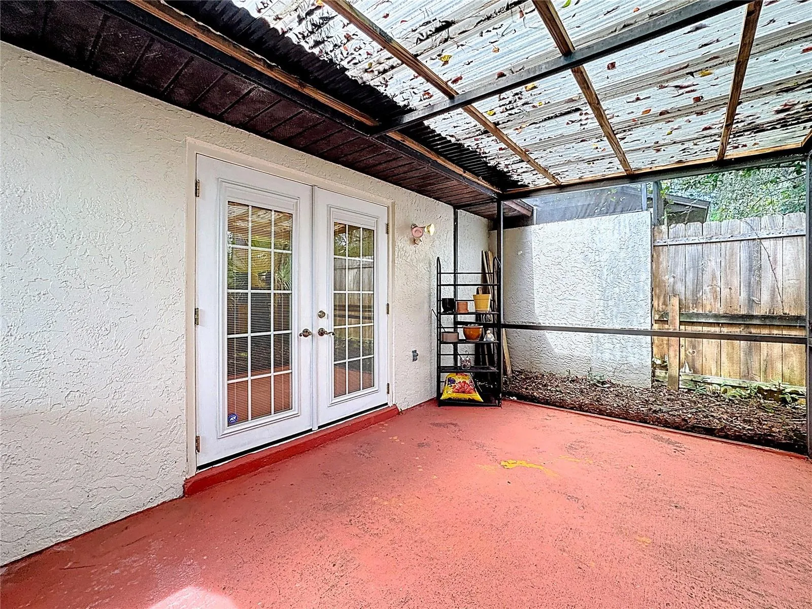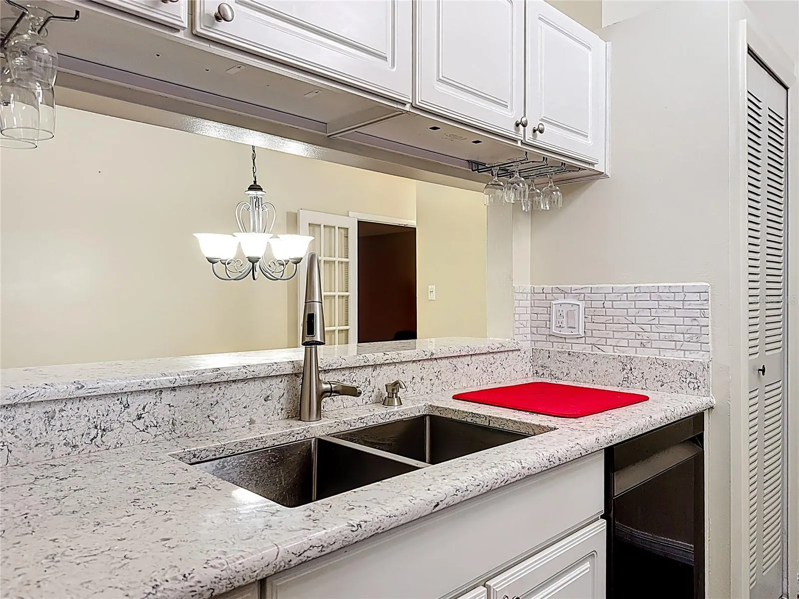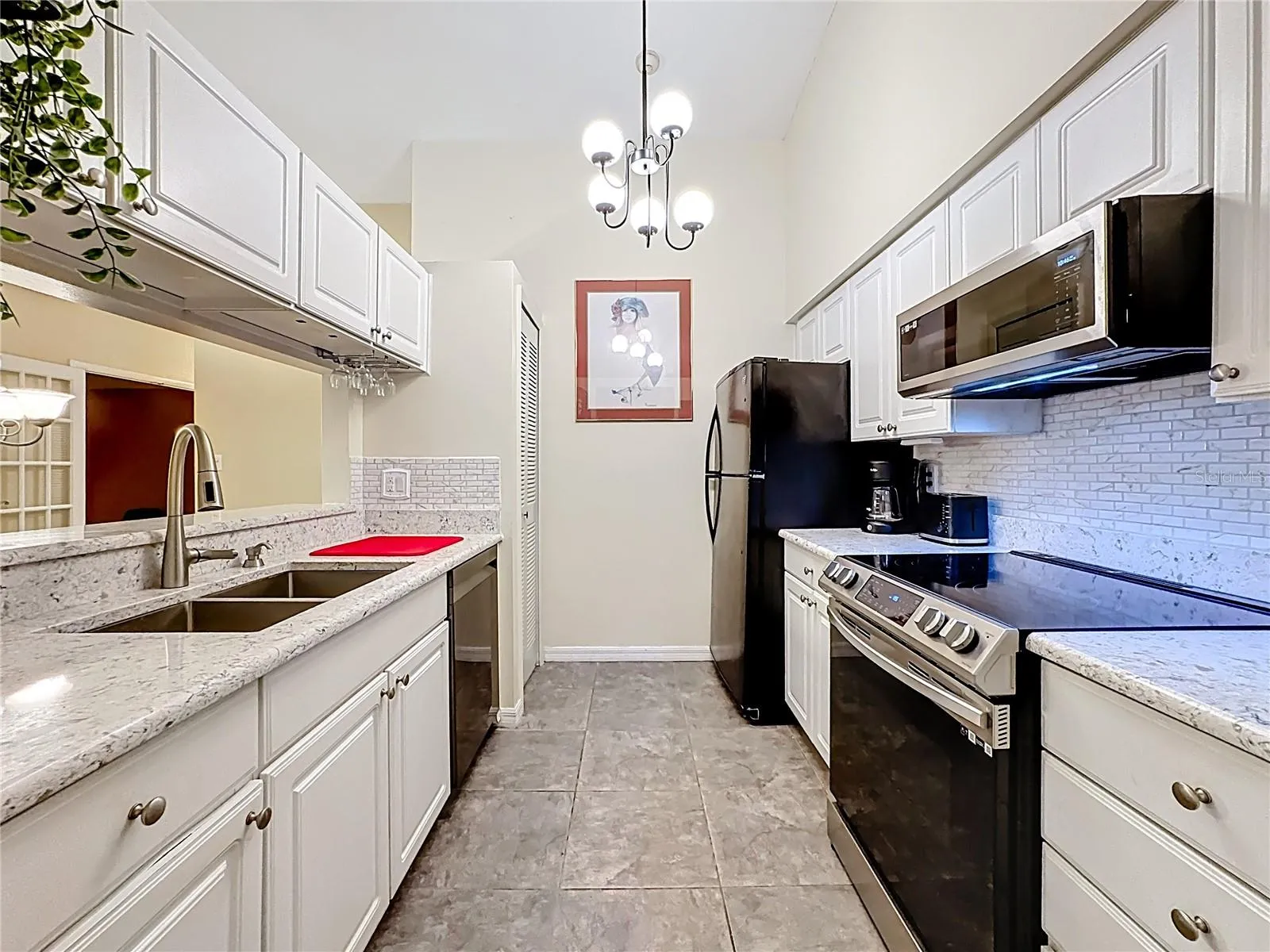 Step inside to discover a beautifully updated kitchen featuring luxury granite countertops, a stylish tile backsplash, and modern appliances—including a new refrigerator, oven/hood, and dishwasher. The open-concept dining area flows effortlessly into a screened-in lanai, ideal for relaxing evenings or entertaining guests. The private garden space adds a tranquil touch of nature.