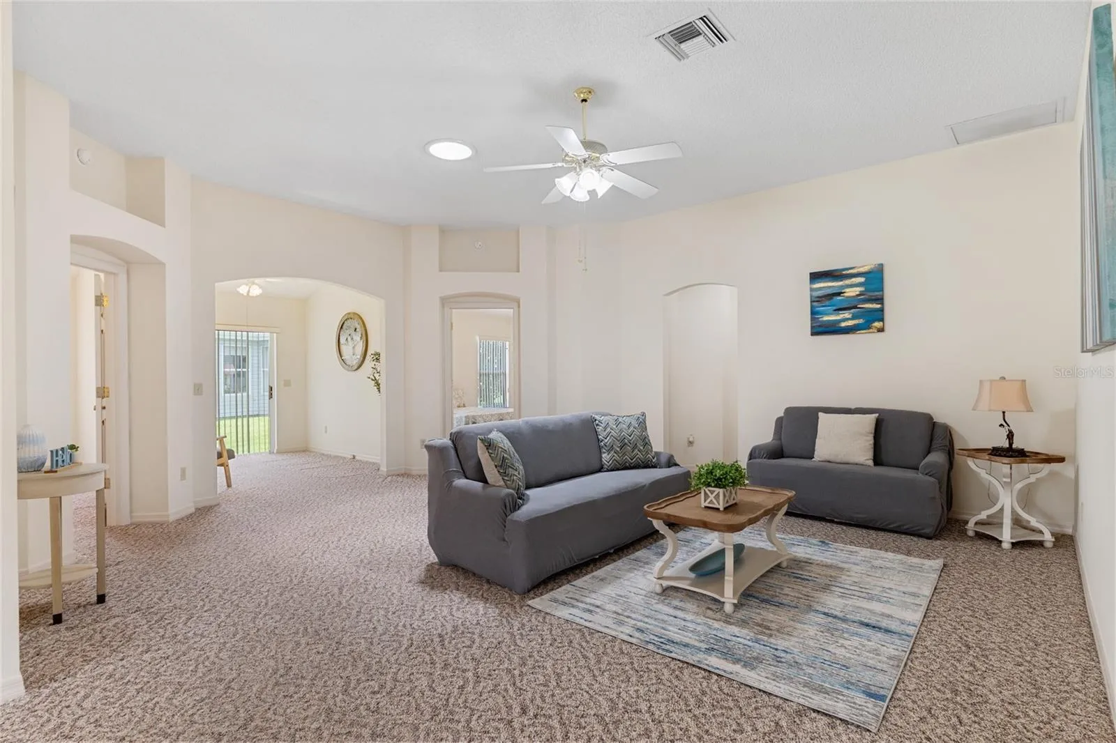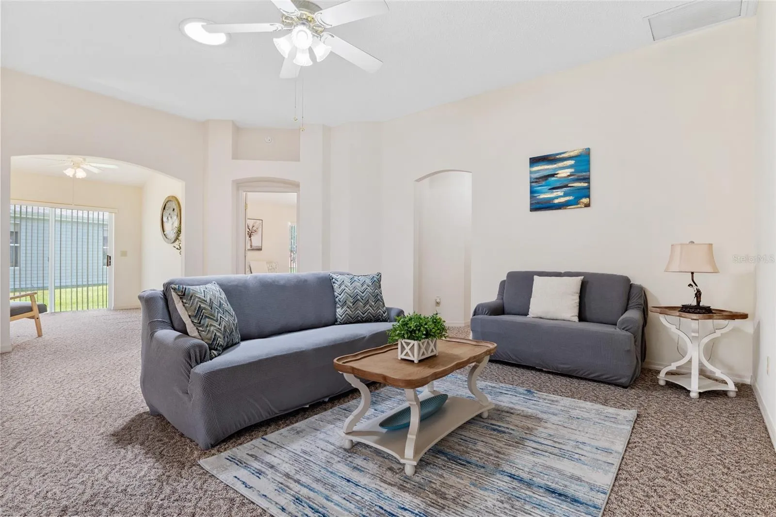 Additional features include: ROOF(2017), HVAC (2025), HWH (2025), freshly painted interior, corner lot, and solar tubes! Located in the heart of the Village of De La Vista, this home is just minutes from Lake Sumter Landing and Spanish Springs Town Square. It’s within walking distance to Tierra Del Sol Country Club, theater, recreational center, restaurant, and De La Vista and Mira Mesa Executive Golf Courses. Plus, you’re conveniently close to Highway 441/27 and County Road 466, where a variety of shopping, dining, banking, and medical facilities await. Don’t miss your chance to own this unique home in a PRIME location.