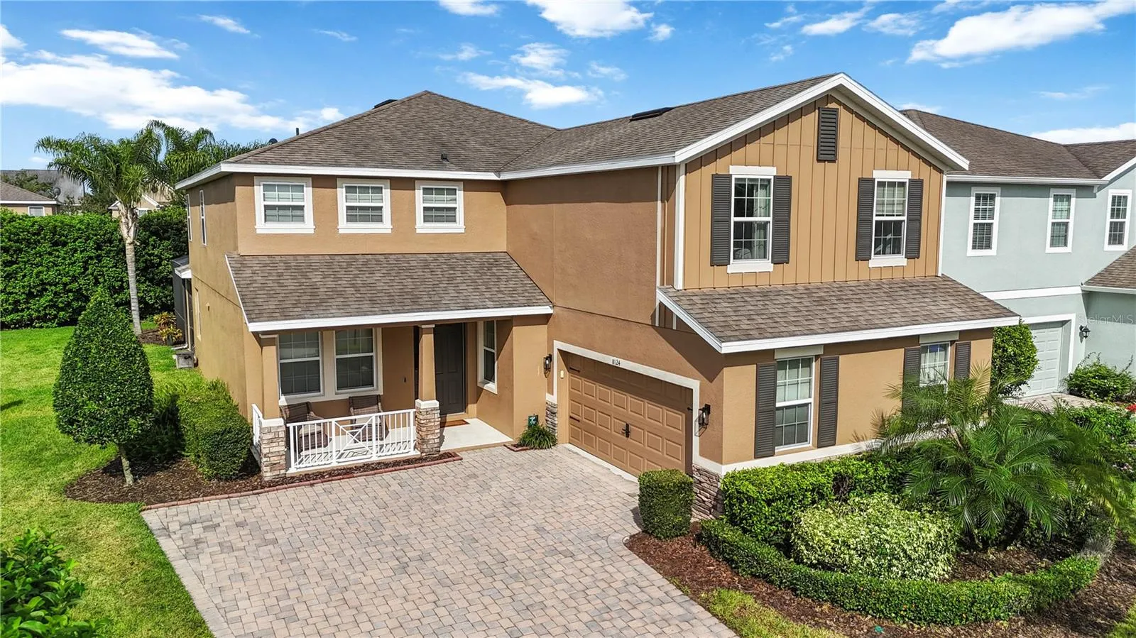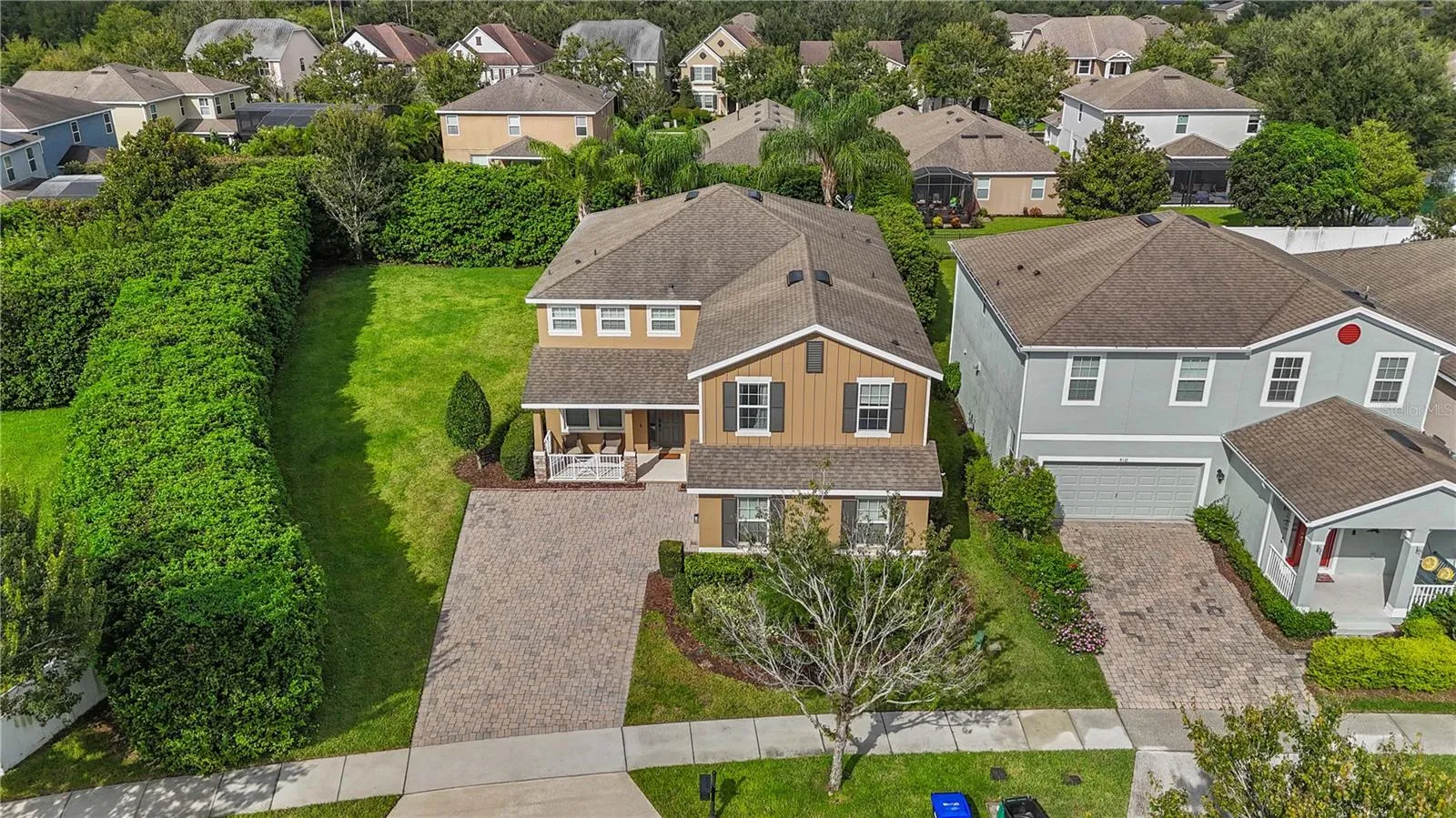 One or more photo(s) has been virtually staged. ”Bundled service pricing available for buyers. Connect with the listing agent for details”. Now available, this premium 6-bedroom, 4-bath executive home sits on one of the largest lots in the community at .29 acres and features a heated saltwater pool with screened enclosure, cascading waterfall feature, travertine deck, and outdoor speakers for the ultimate Florida lifestyle. From the curb, you’ll be impressed by the oversized paver driveway, side-loading garage, and charming front rocker porch. Inside, the home welcomes you with formal living and dining areas, leading into the spacious family room, dinette, and a chef-inspired kitchen with natural gas cooking, stainless steel appliances, abundant counter space, and plentiful storage. The downstairs also includes a guest bedroom, private laundry room, and a flexible nook ideal for a reading area or office. Upstairs, you’ll find the remaining bedrooms, a versatile loft space, and an expansive primary suite featuring a spa-like bath with a soaking tub, walk-in shower, dual vanities, and a makeup prep station. Recent updates include a freshly painted exterior, updated water heater, and a 2025 HVAC system. The garage is also equipped with a 240v plug for an electric car or recreational toys.
